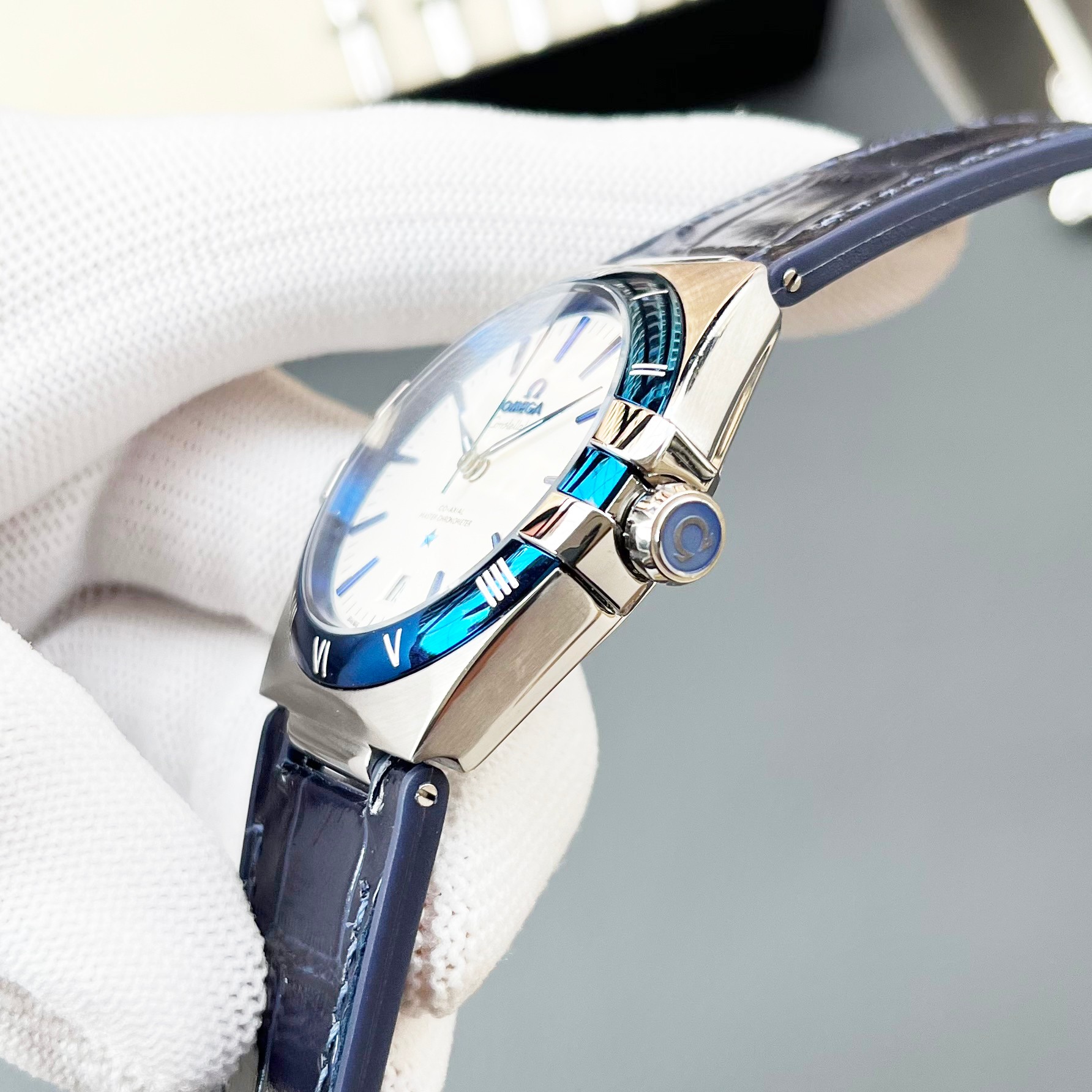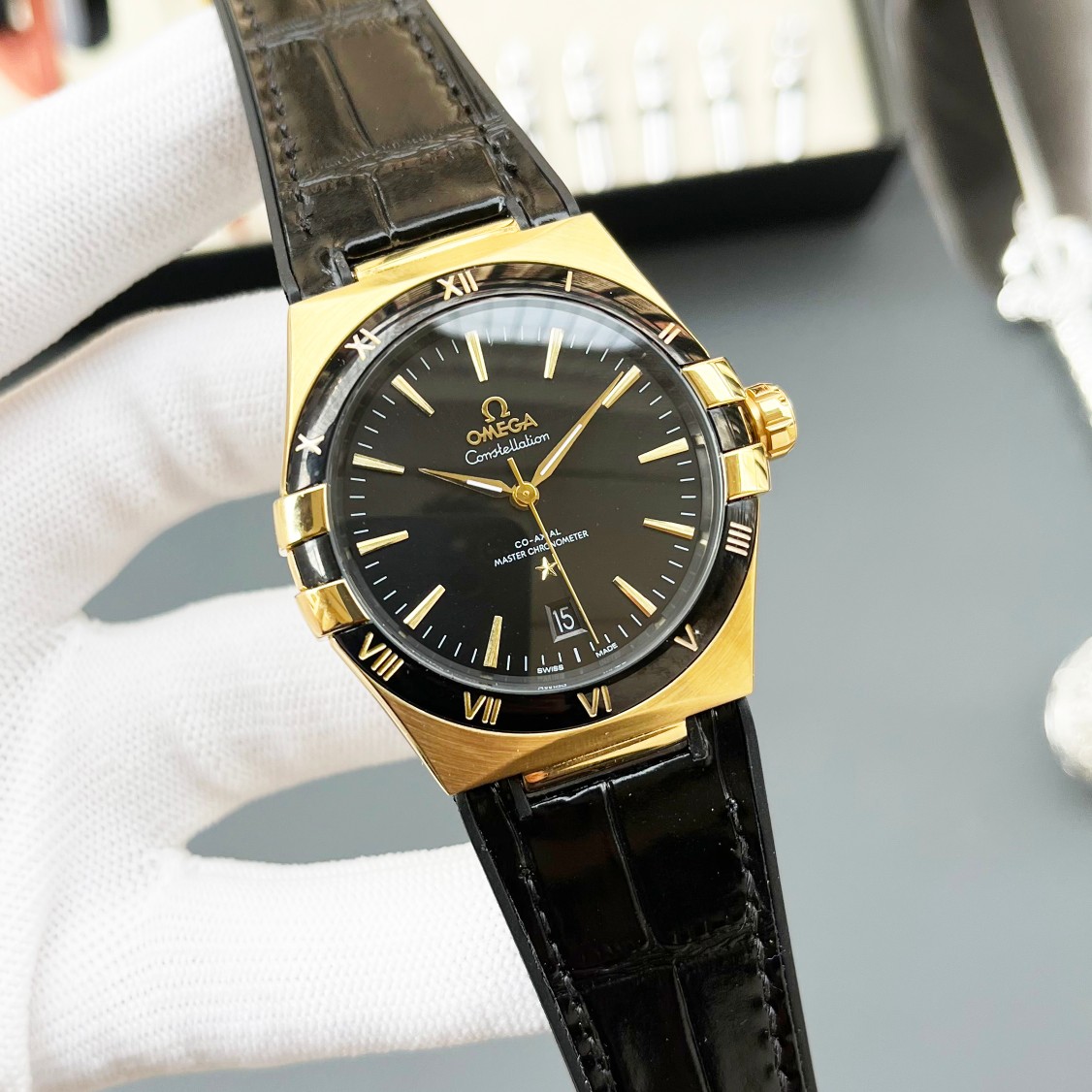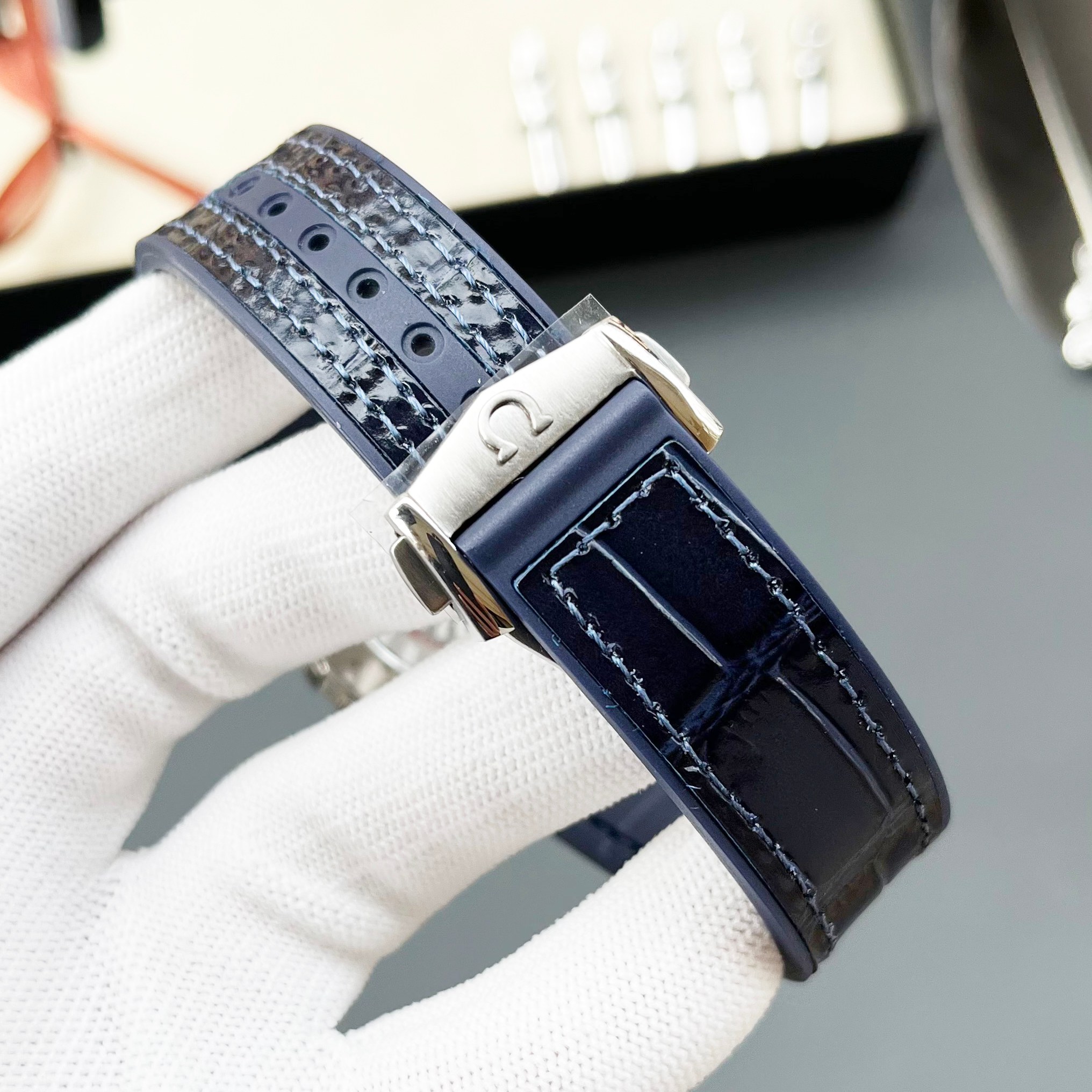 这款手表是AAAAA 1:1 质量 (非常棒). 使用了和原版一模一样的材料. 商标部分也保持了和欧米茄/Omega一样. 图片拍摄是实物手表拍摄, 您所收到的实物保证和我们图片一模一样.