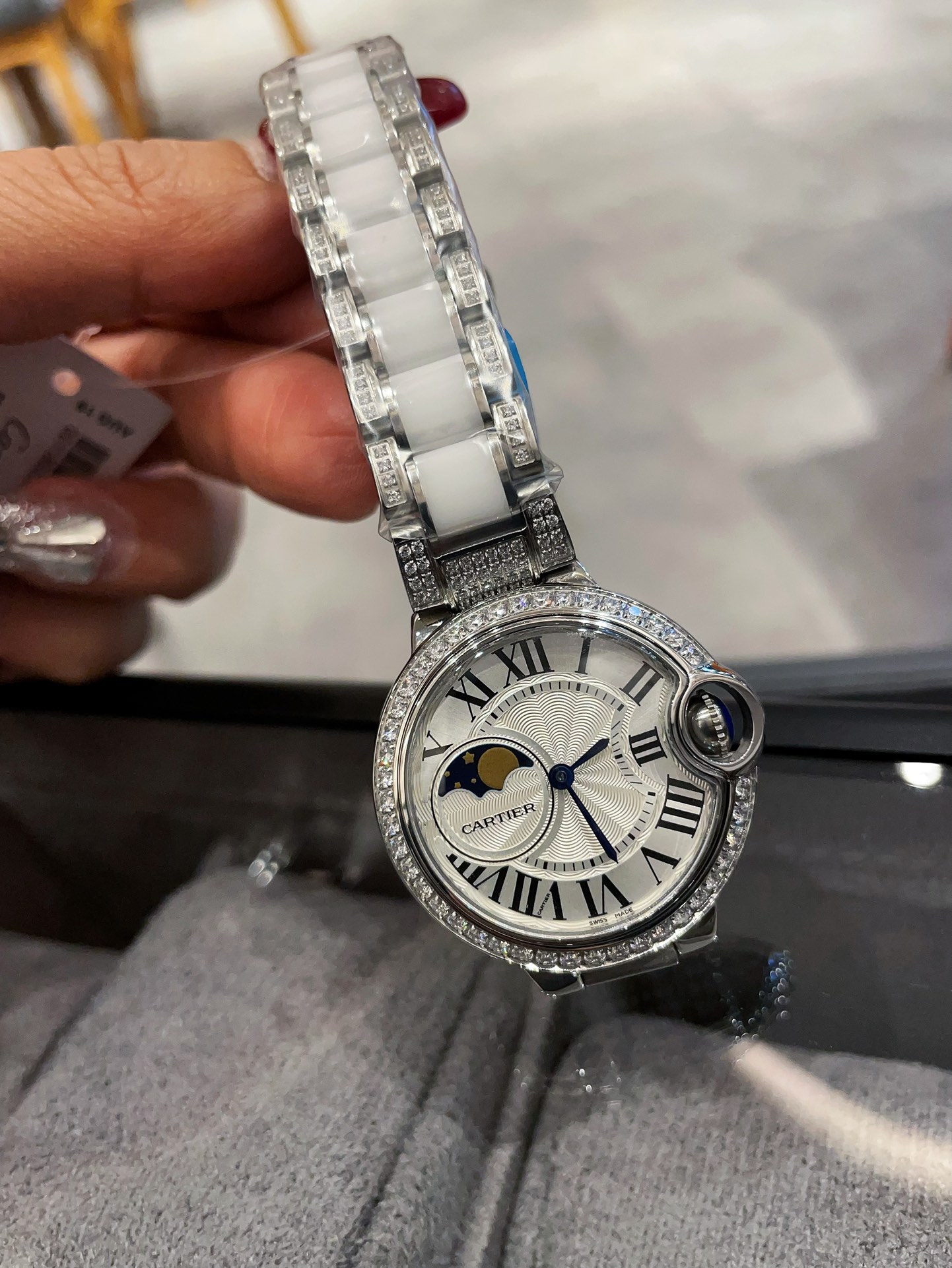 这款手表是AAAAA 1:1 质量 (非常棒). 使用了和原版一模一样的材料. 商标部分也保持了和卡地亚/Cartier一样. 图片拍摄是实物手表拍摄, 您所收到的实物保证和我们图片一模一样.