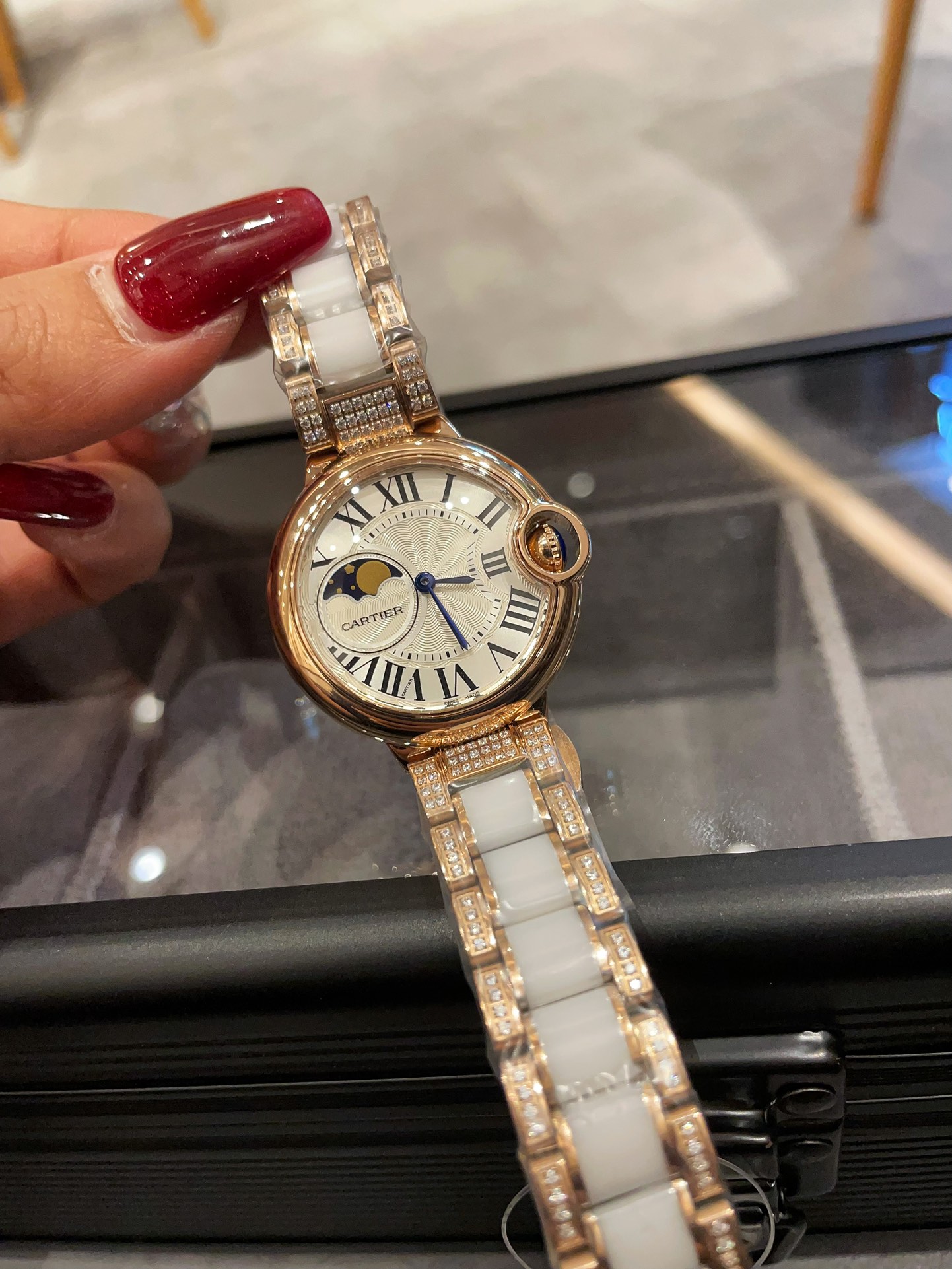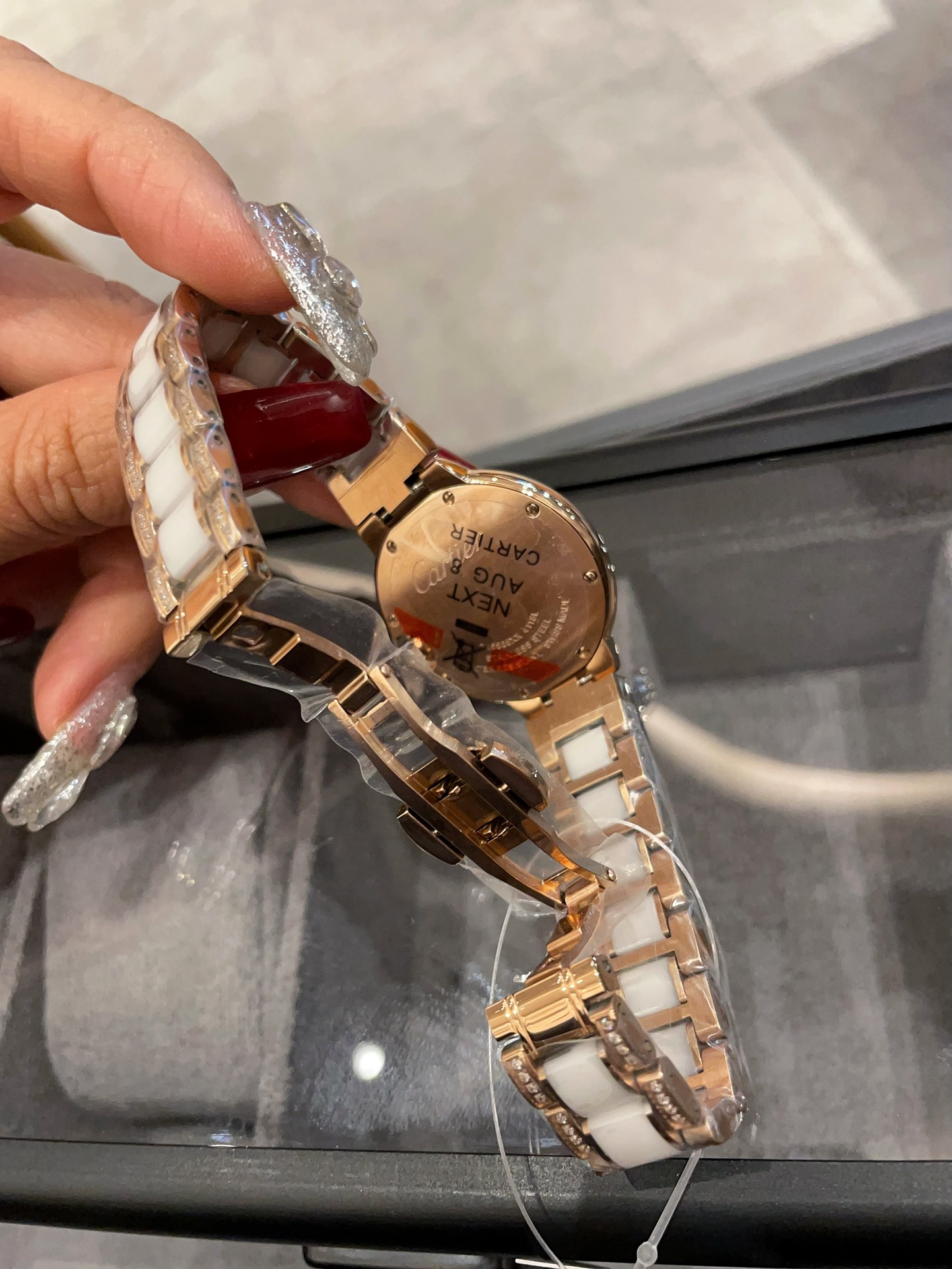 这款手表是AAAAA 1:1 质量 (非常棒). 使用了和原版一模一样的材料. 商标部分也保持了和卡地亚/Cartier一样. 图片拍摄是实物手表拍摄, 您所收到的实物保证和我们图片一模一样.