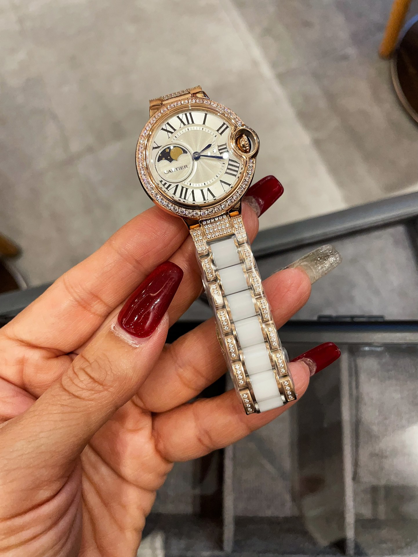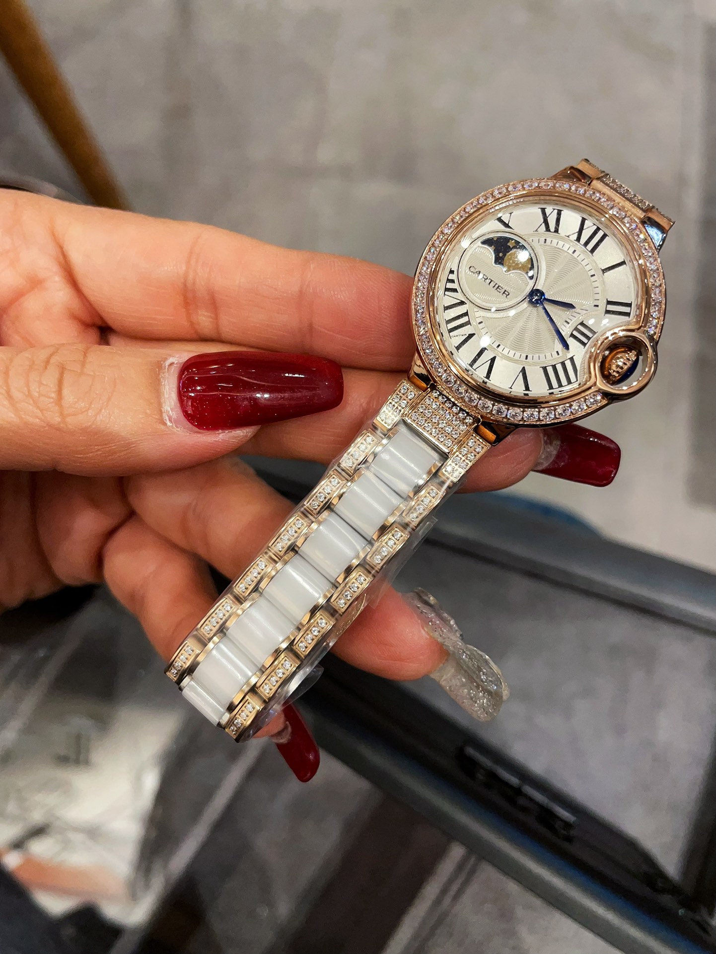 这款手表是AAAAA 1:1 质量 (非常棒). 使用了和原版一模一样的材料. 商标部分也保持了和卡地亚/Cartier一样. 图片拍摄是实物手表拍摄, 您所收到的实物保证和我们图片一模一样.