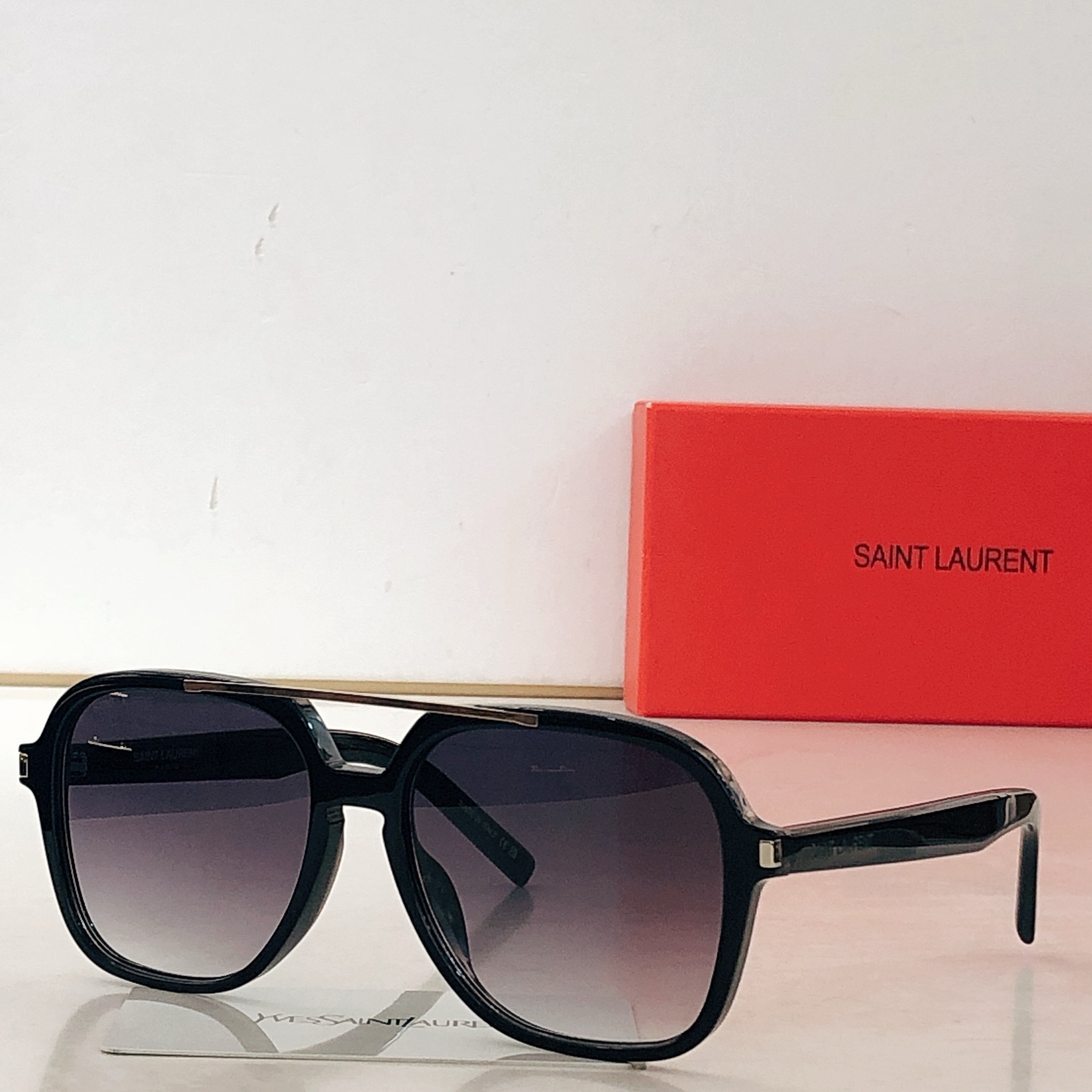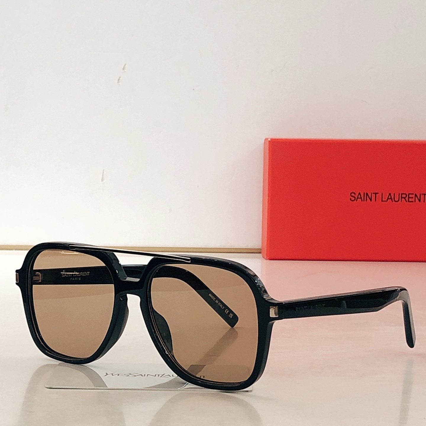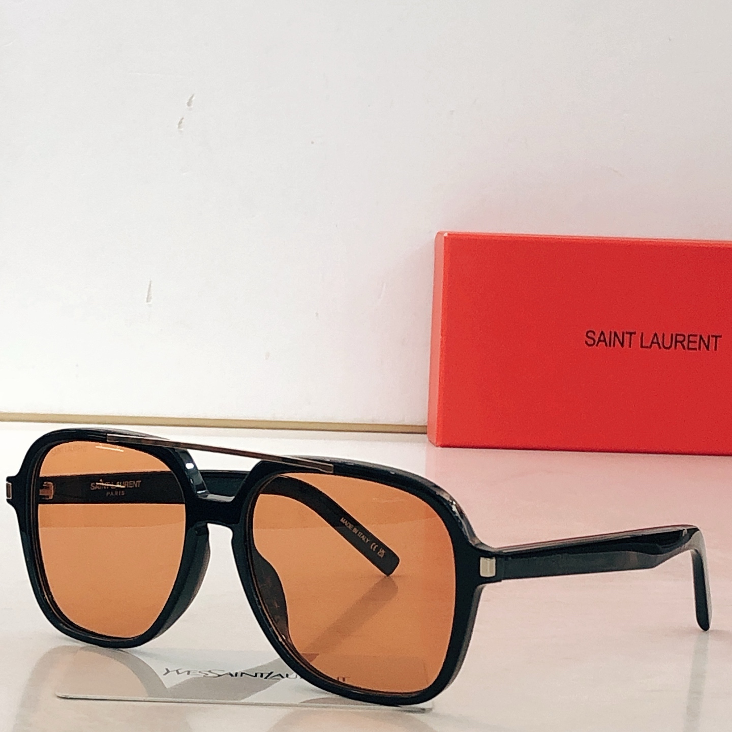 这款太阳眼镜是AAAAA 1:1 质量 (非常棒). 使用了和原版一模一样的材料. 商标部分也保持了和圣罗兰/Saint Laurent一样. 图片拍摄是实物太阳眼镜拍摄, 您所收到的实物保证和我们图片一模一样.