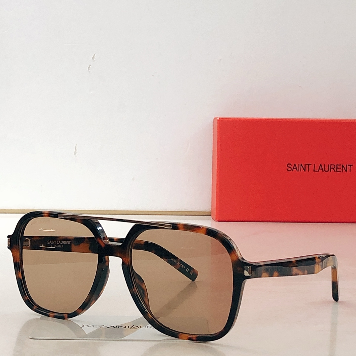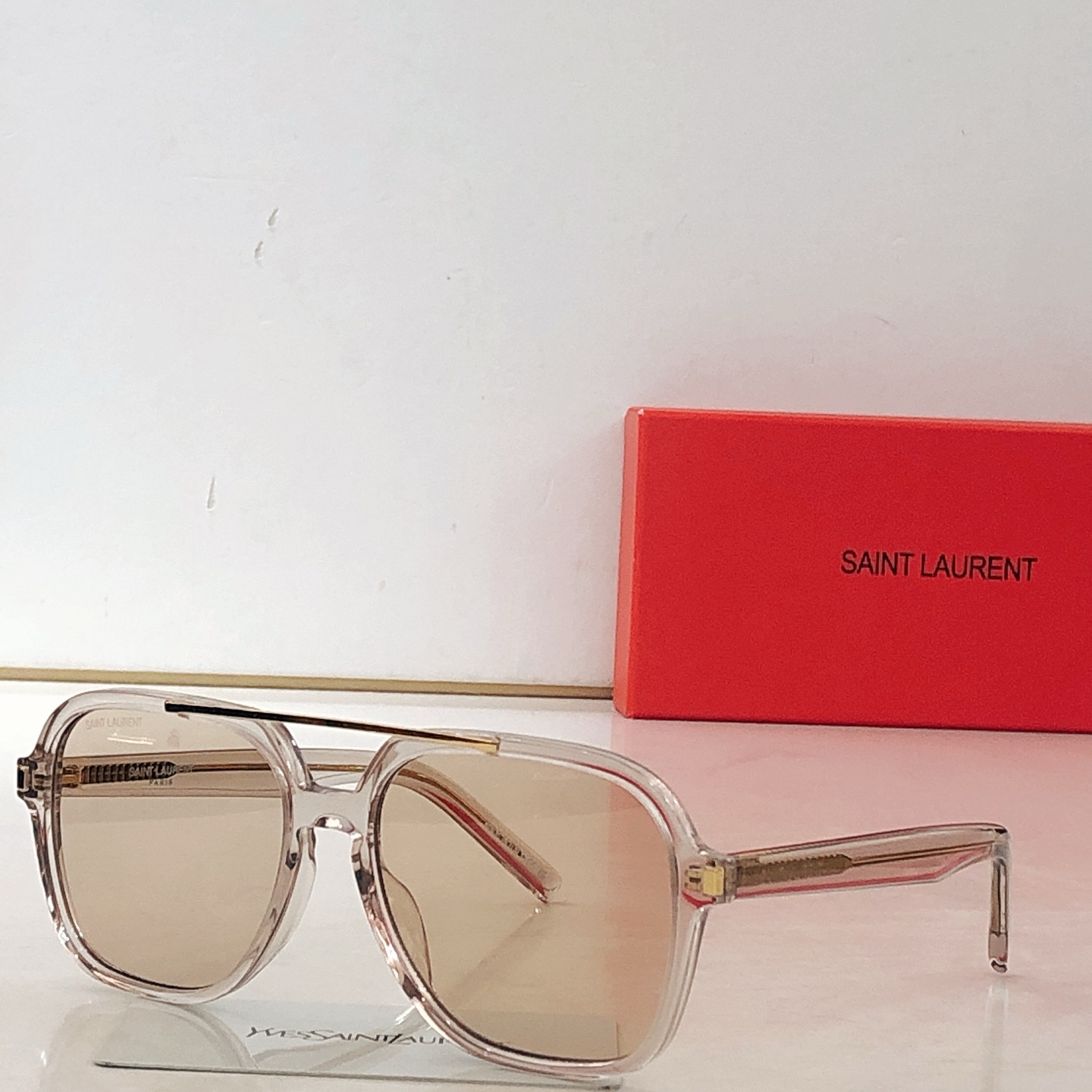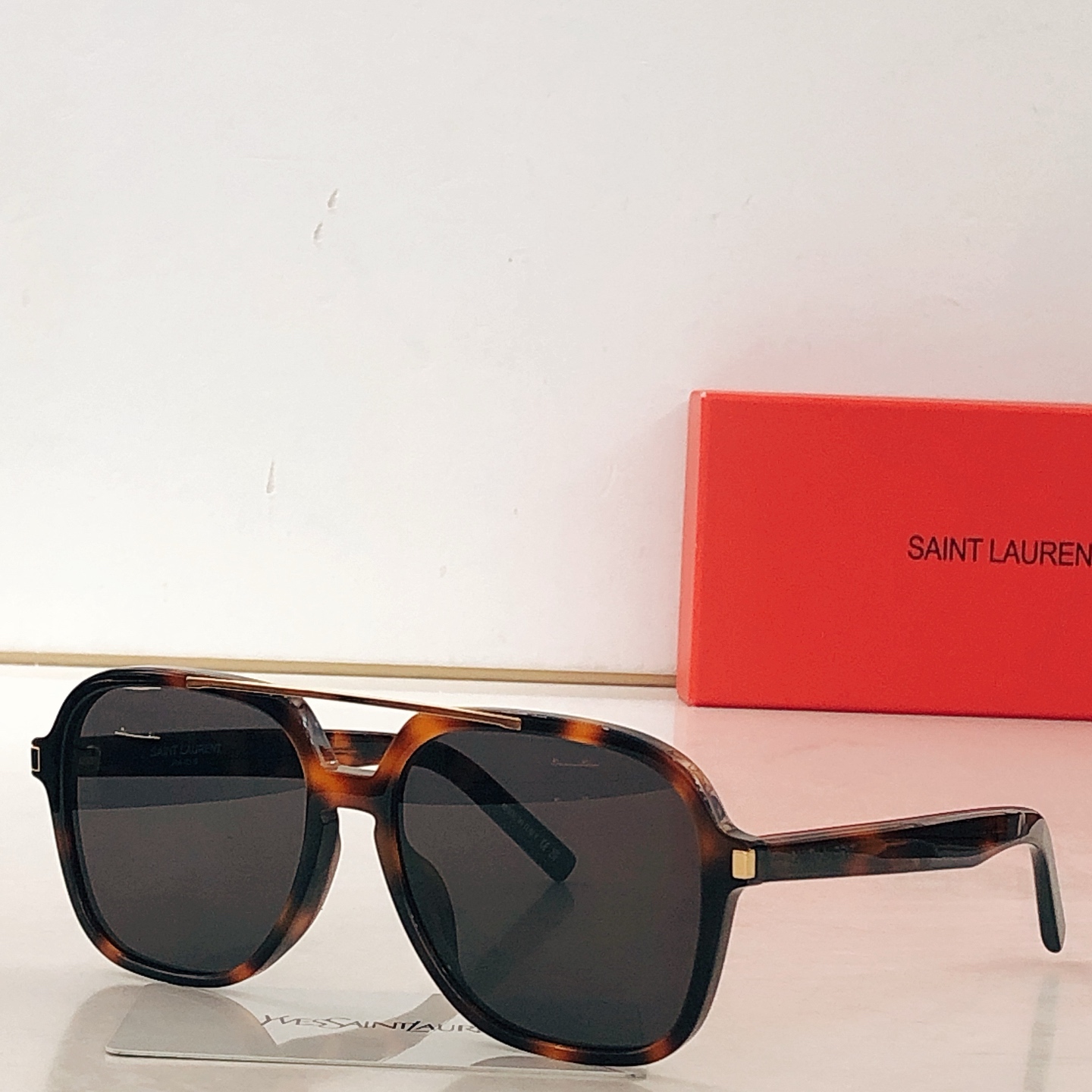 这款太阳眼镜是AAAAA 1:1 质量 (非常棒). 使用了和原版一模一样的材料. 商标部分也保持了和圣罗兰/Saint Laurent一样. 图片拍摄是实物太阳眼镜拍摄, 您所收到的实物保证和我们图片一模一样.