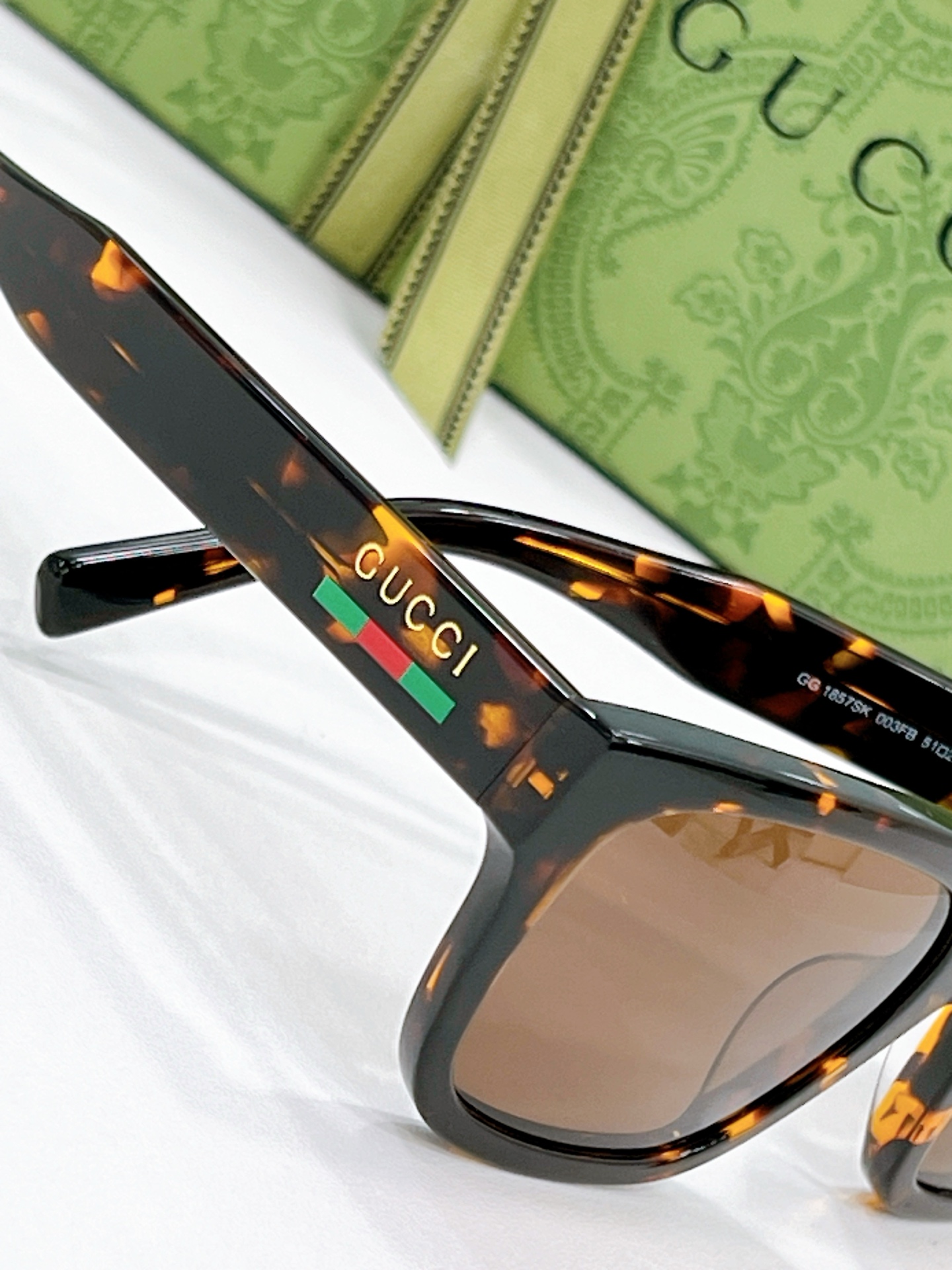 这款太阳眼镜是AAAAA 1:1 质量 (非常棒). 使用了和原版一模一样的材料. 商标部分也保持了和古奇/Gucci一样. 图片拍摄是实物太阳眼镜拍摄, 您所收到的实物保证和我们图片一模一样.