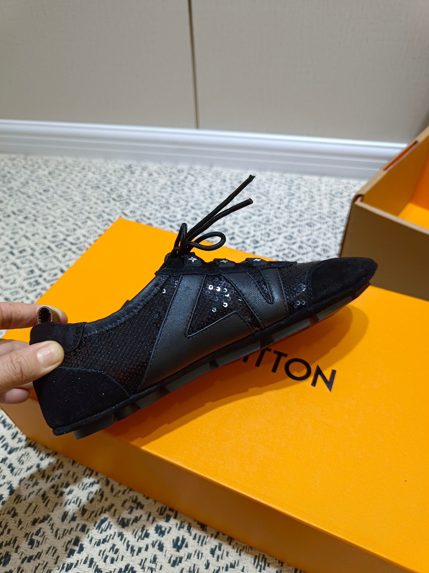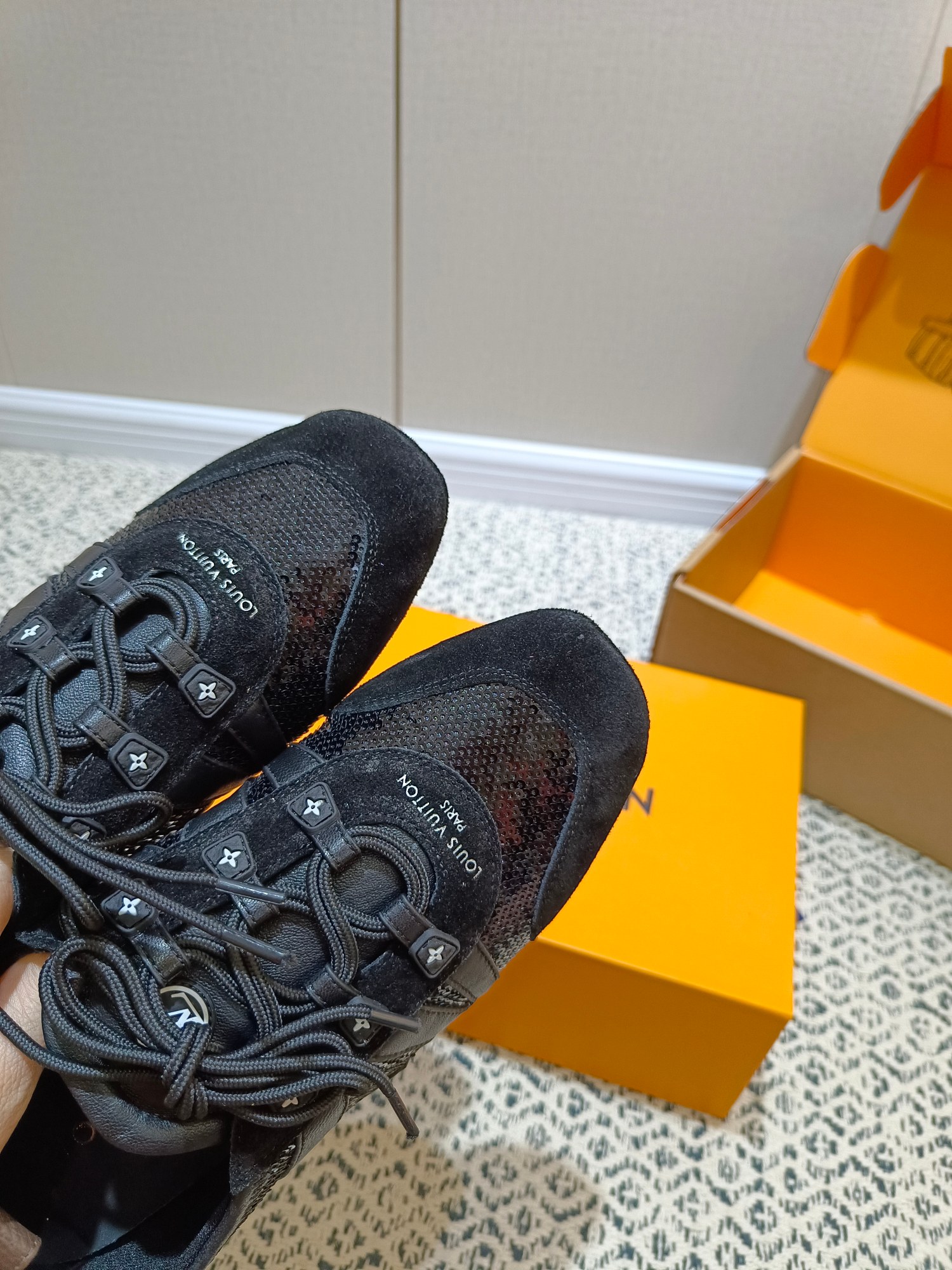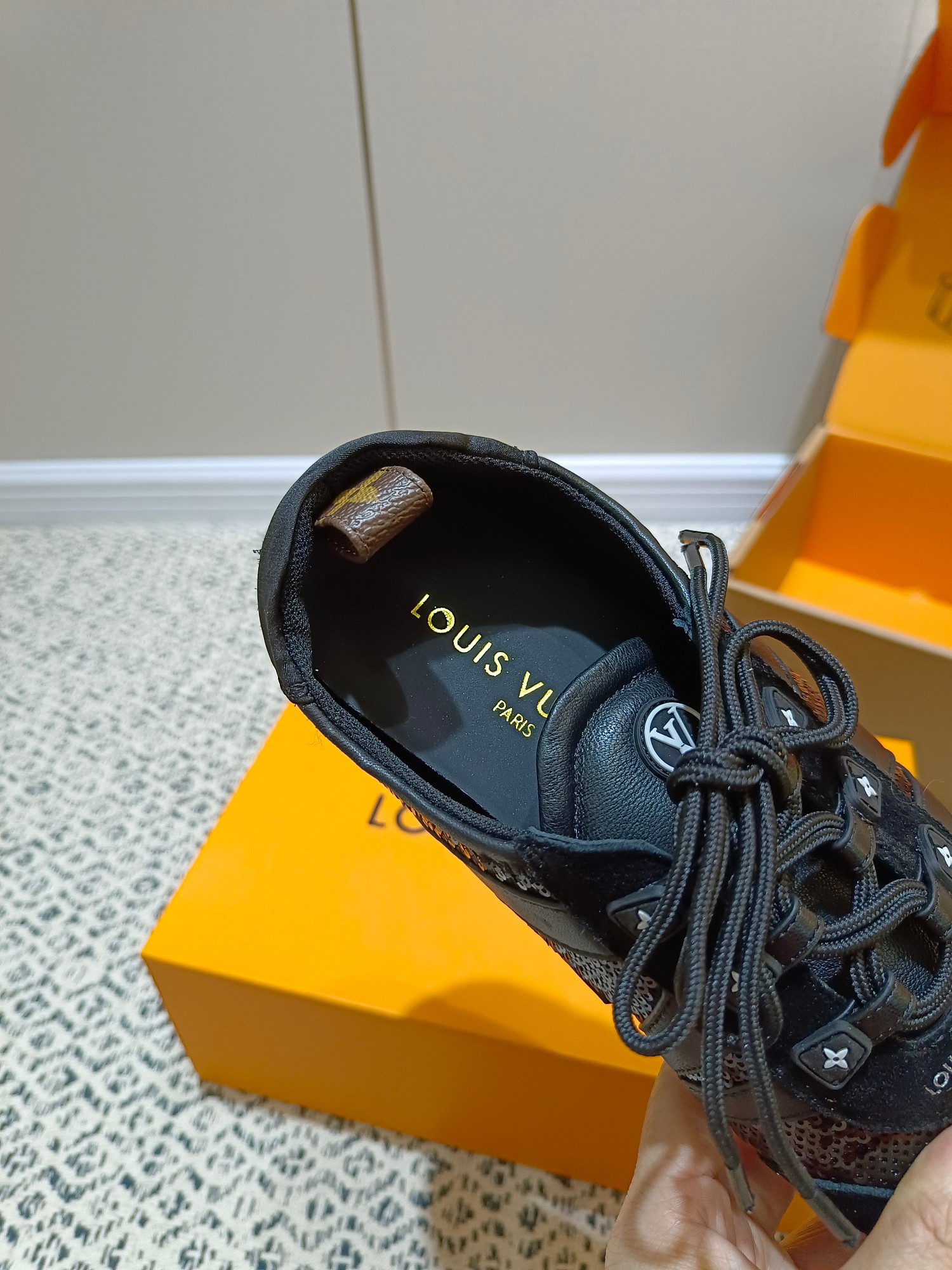 这款鞋子是AAAAA 1:1 质量 (非常棒). 使用了和原版一模一样的材料. 商标部分也保持了和路易威登/Louis Vuitton一样. 图片拍摄是实物鞋子拍摄, 您所收到的实物保证和我们图片一模一样.