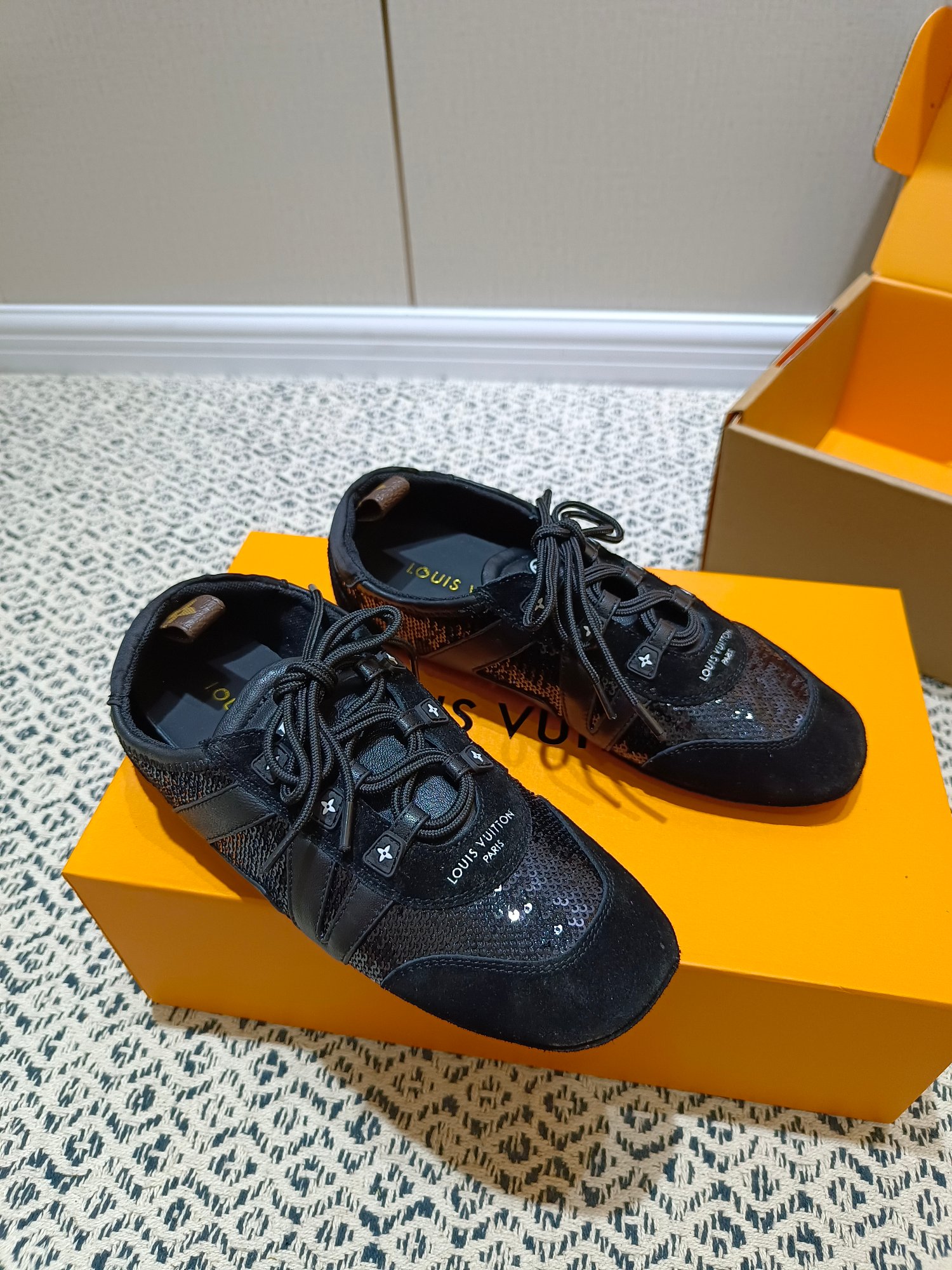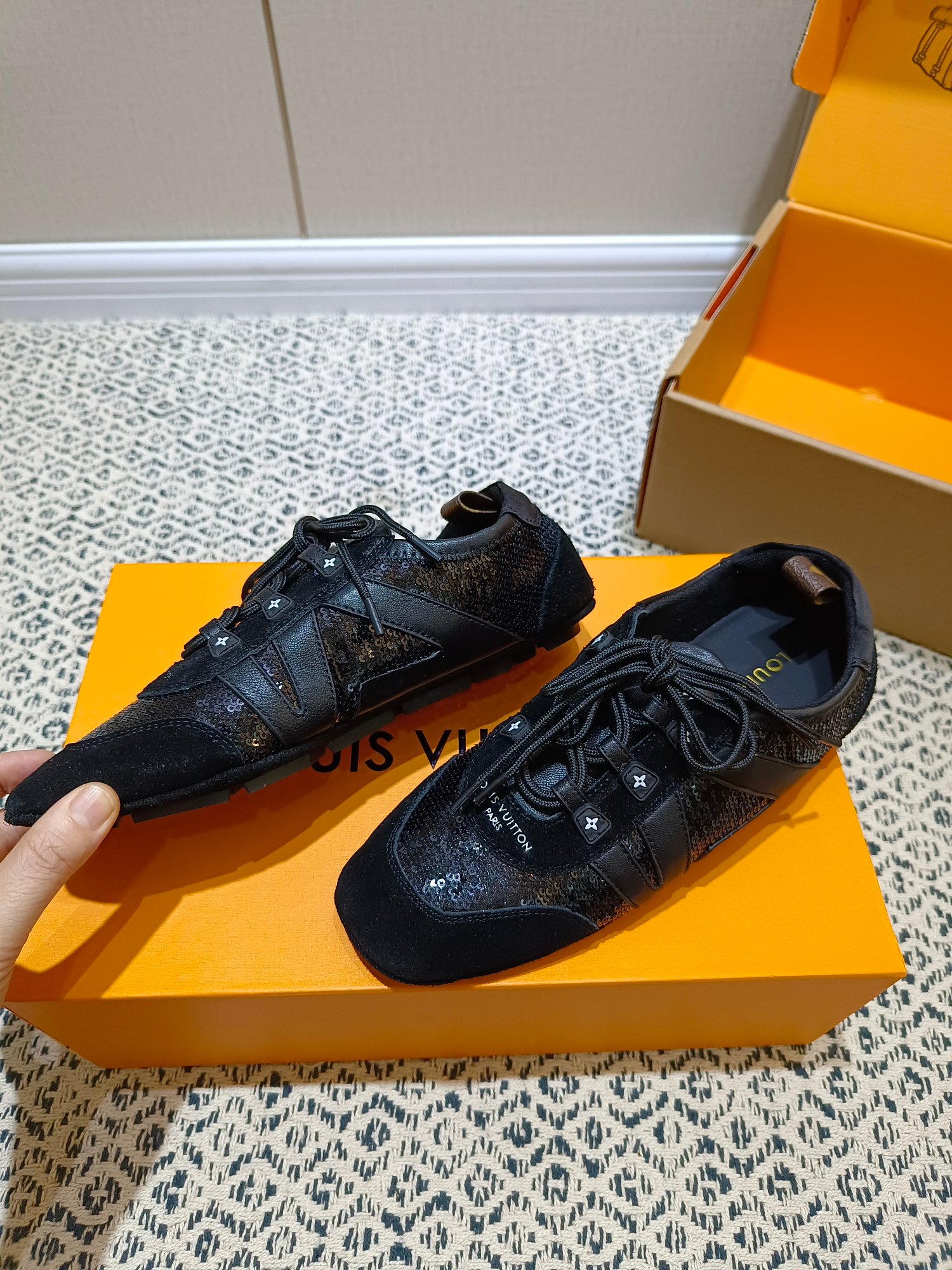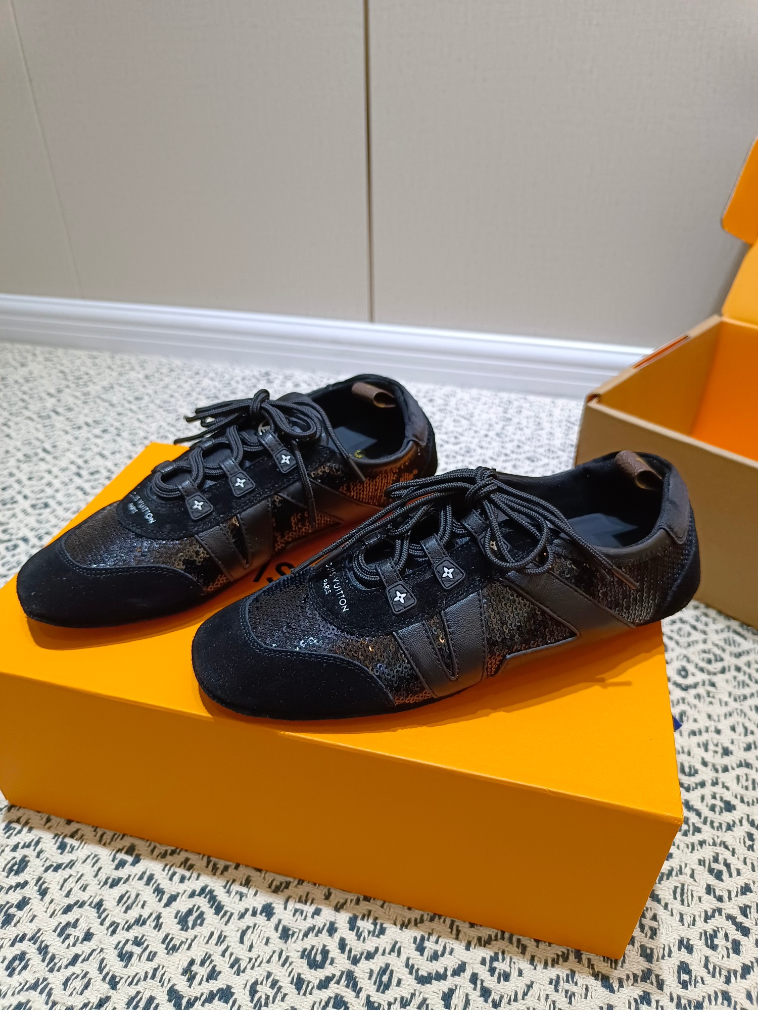 这款鞋子是AAAAA 1:1 质量 (非常棒). 使用了和原版一模一样的材料. 商标部分也保持了和路易威登/Louis Vuitton一样. 图片拍摄是实物鞋子拍摄, 您所收到的实物保证和我们图片一模一样.