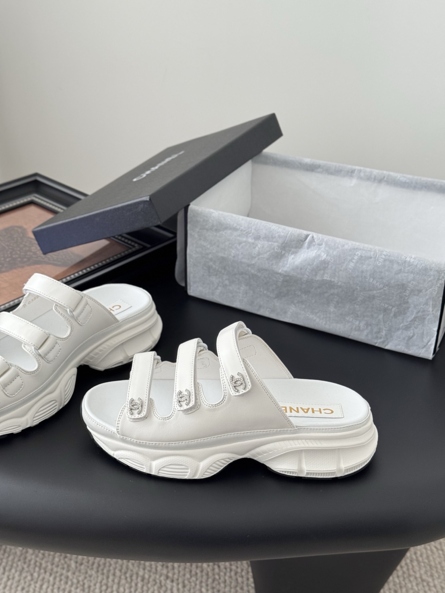 这款鞋子是AAAAA 1:1 质量 (非常棒). 使用了和原版一模一样的材料. 商标部分也保持了和香奈儿/Chanel一样. 图片拍摄是实物鞋子拍摄, 您所收到的实物保证和我们图片一模一样.