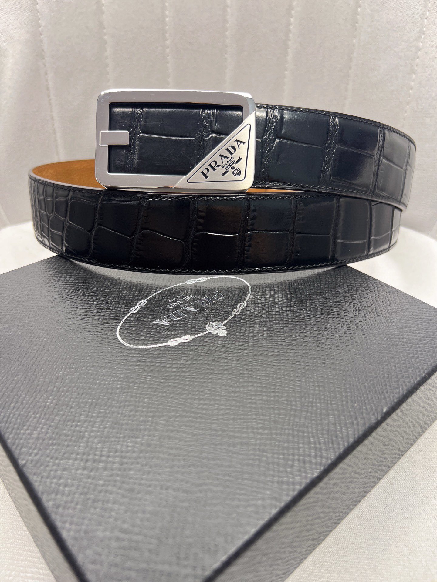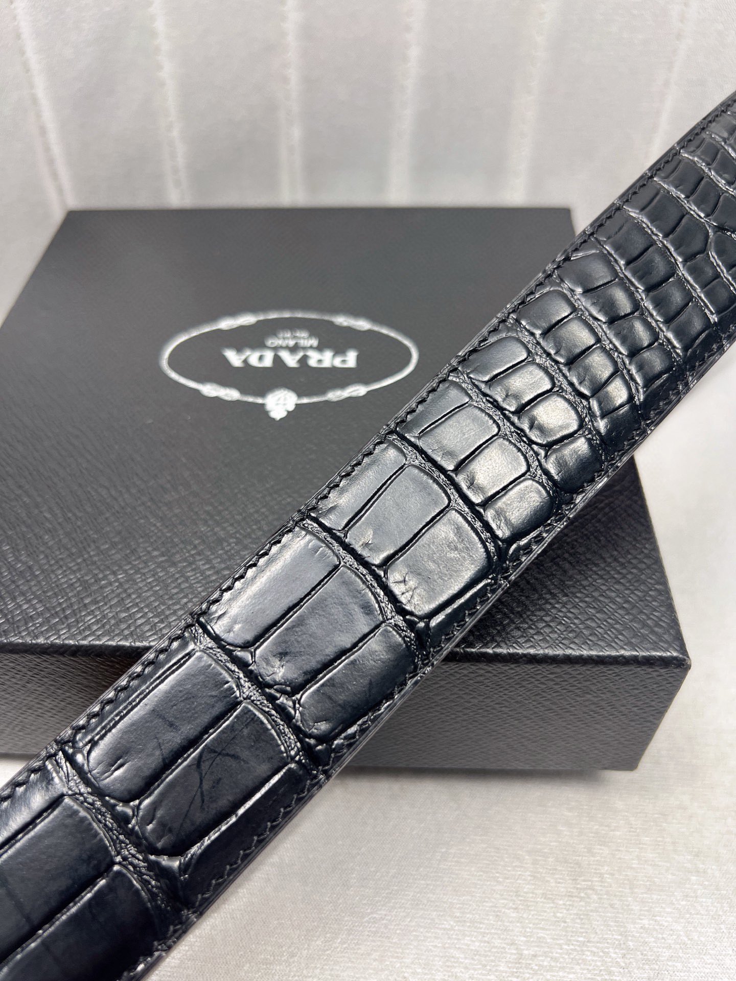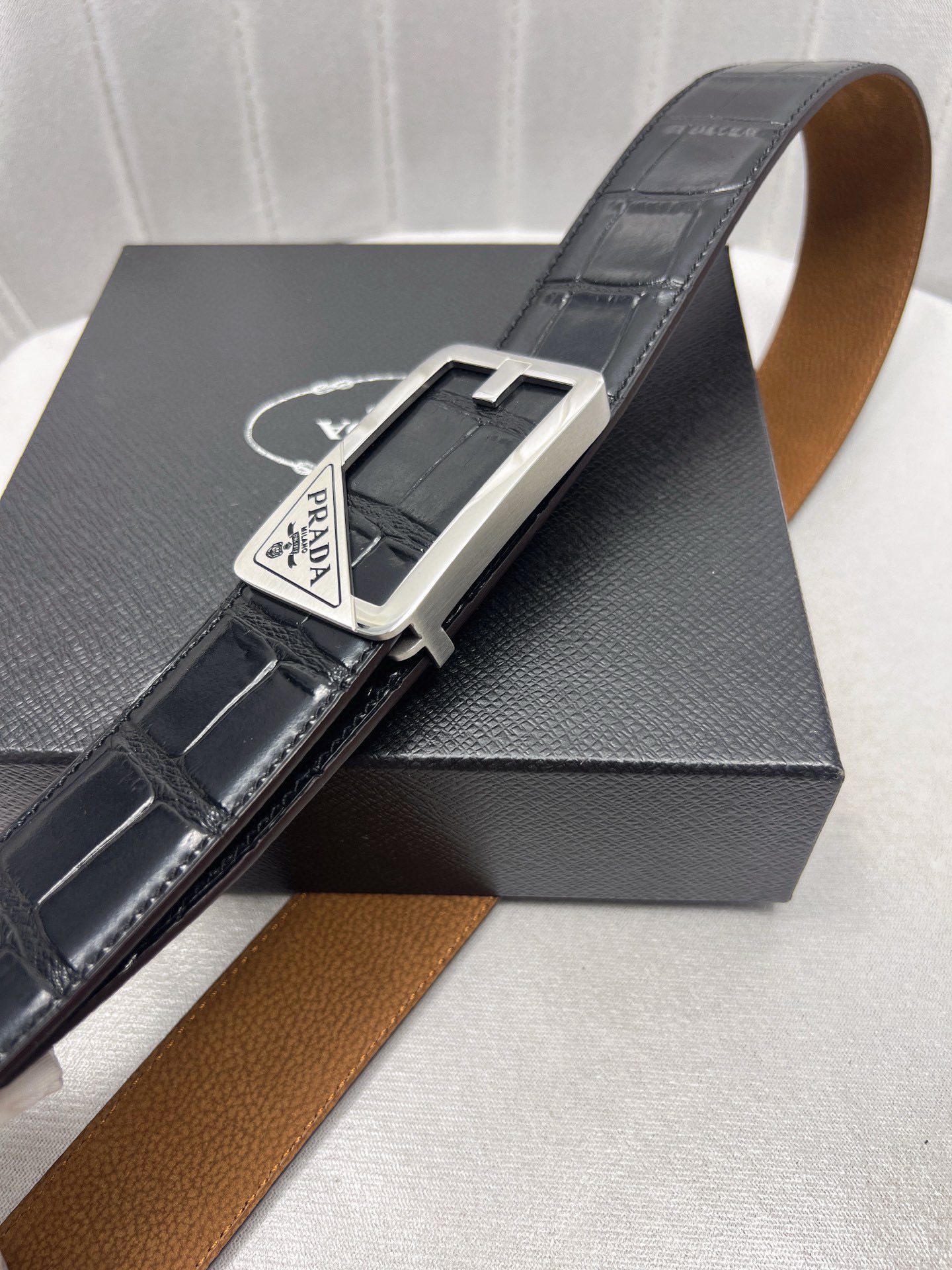 这款皮带是AAAAA 1:1 质量 (非常棒). 使用了和原版一模一样的材料. 商标部分也保持了和普拉达/Prada一样. 图片拍摄是实物皮带拍摄, 您所收到的实物保证和我们图片一模一样.