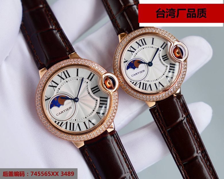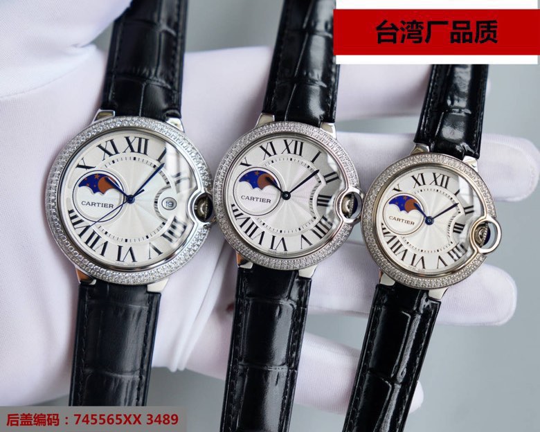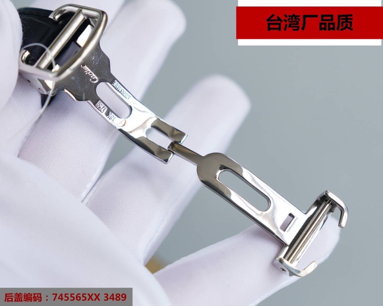 这款手表是AAAAA 1:1 质量 (非常棒). 使用了和原版一模一样的材料. 商标部分也保持了和卡地亚/Cartier一样. 图片拍摄是实物手表拍摄, 您所收到的实物保证和我们图片一模一样.