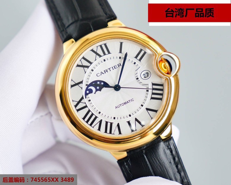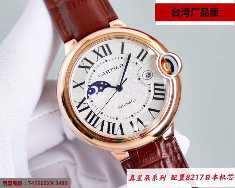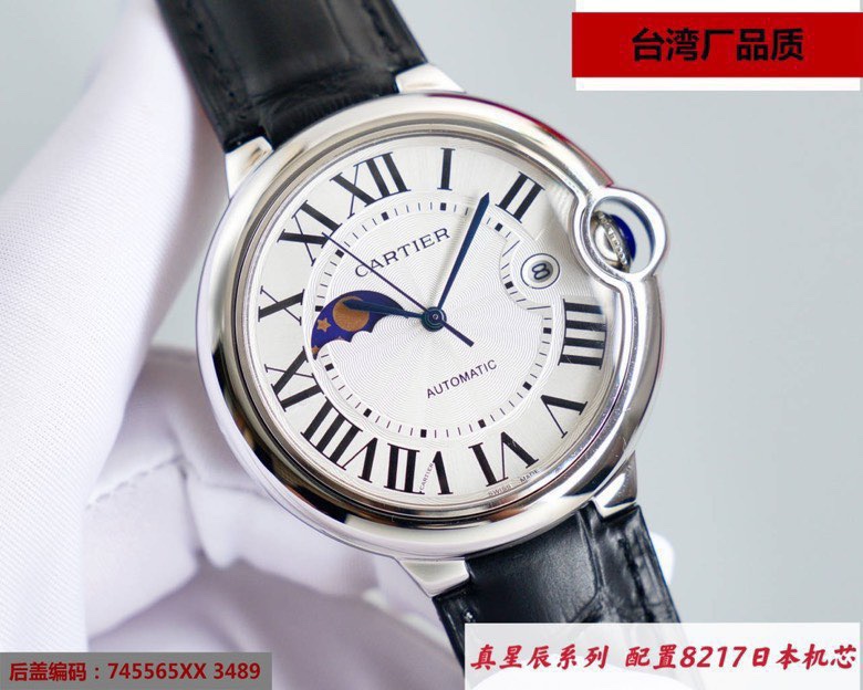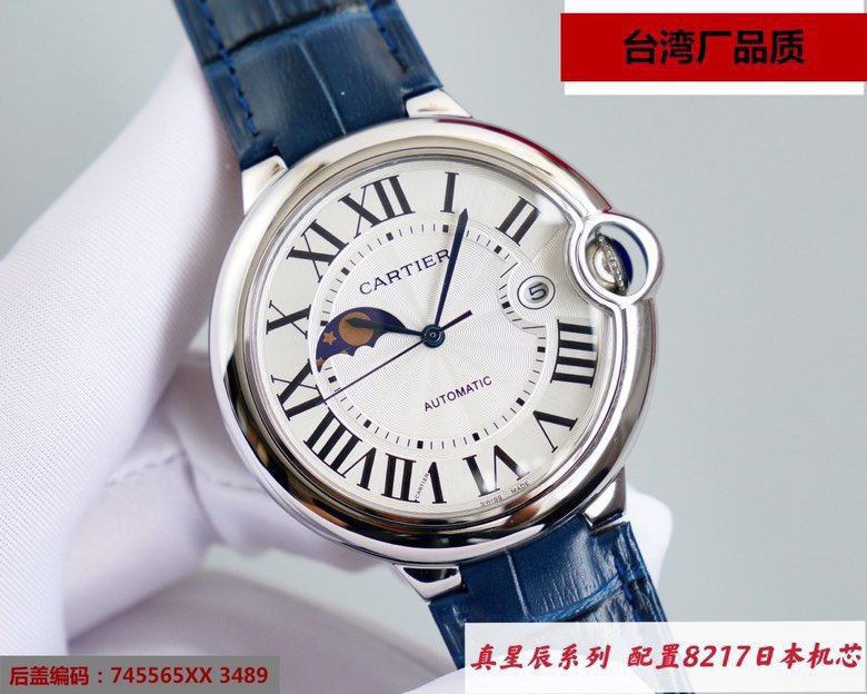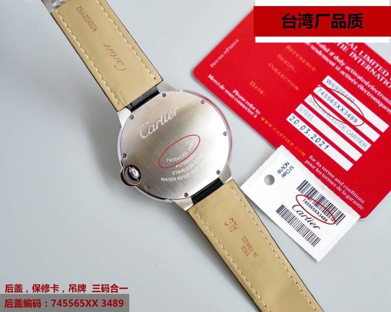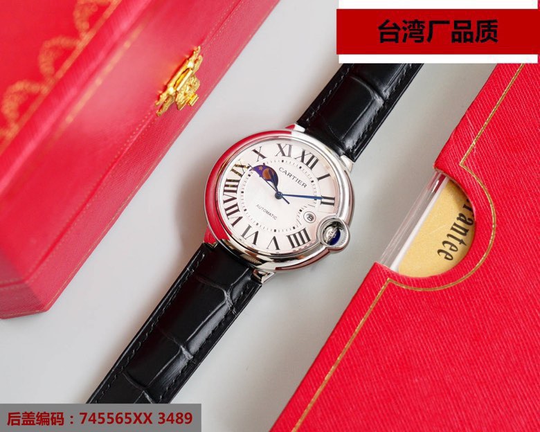 这款手表是AAAAA 1:1 质量 (非常棒). 使用了和原版一模一样的材料. 商标部分也保持了和卡地亚/Cartier一样. 图片拍摄是实物手表拍摄, 您所收到的实物保证和我们图片一模一样.