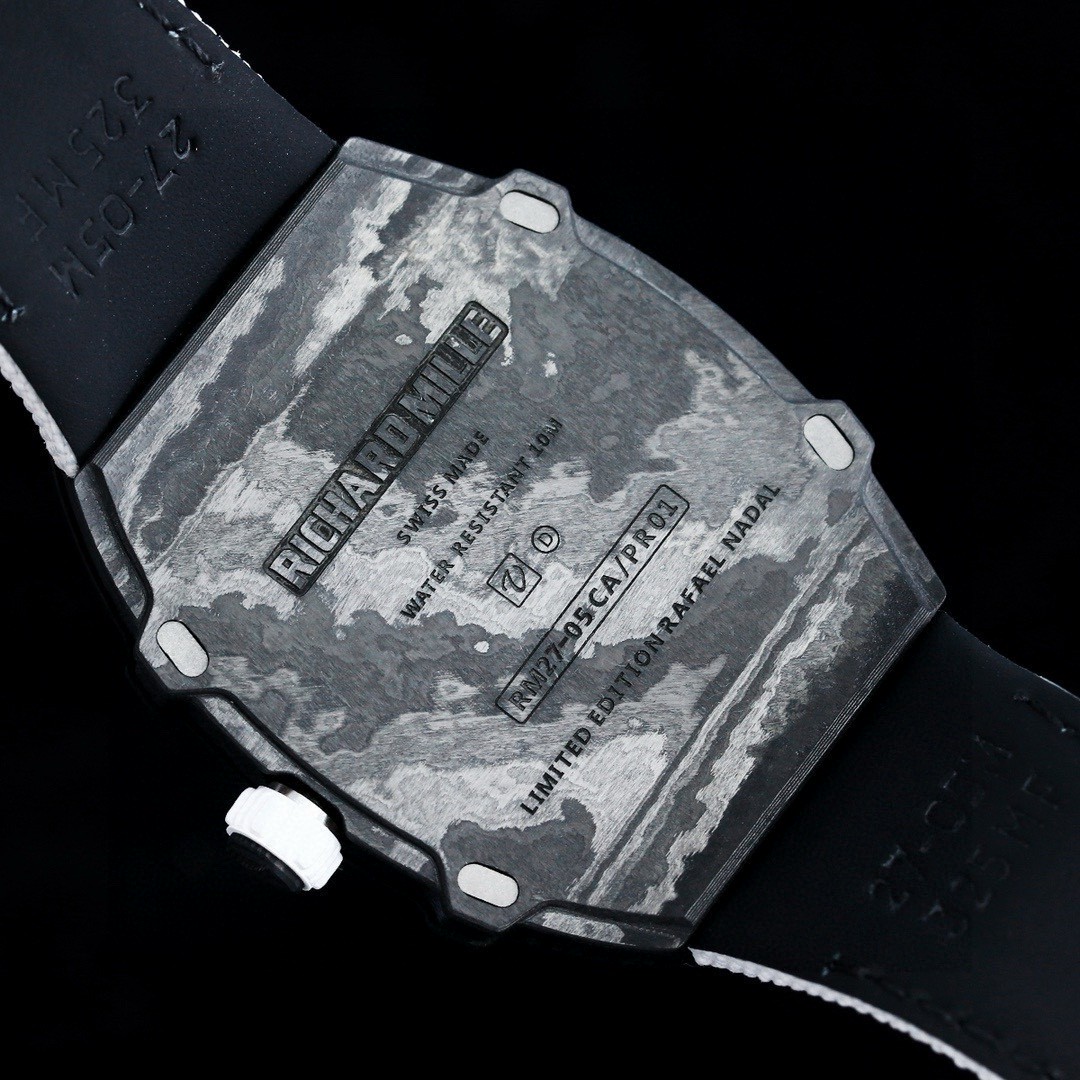 这款手表是AAAAA 1:1 质量 (非常棒). 使用了和原版一模一样的材料. 商标部分也保持了和理查德·米尔/Richard Mille一样. 图片拍摄是实物手表拍摄, 您所收到的实物保证和我们图片一模一样.