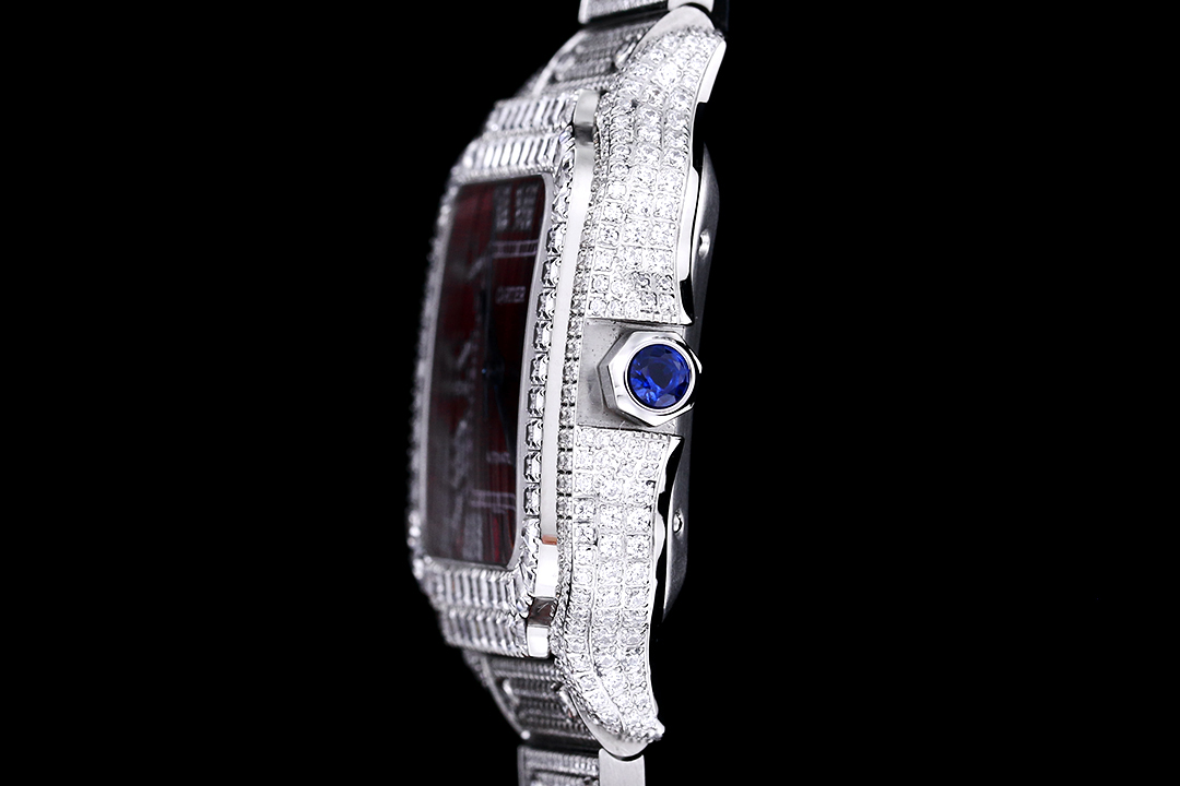 这款手表是AAAAA 1:1 质量 (非常棒). 使用了和原版一模一样的材料. 商标部分也保持了和卡地亚/Cartier一样. 图片拍摄是实物手表拍摄, 您所收到的实物保证和我们图片一模一样.