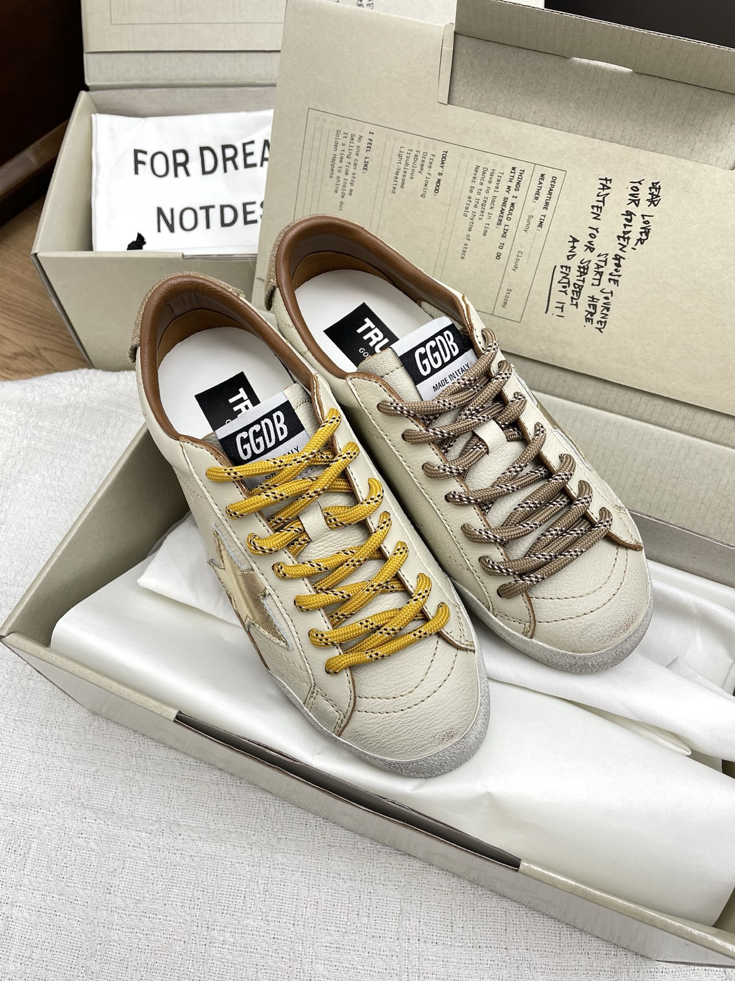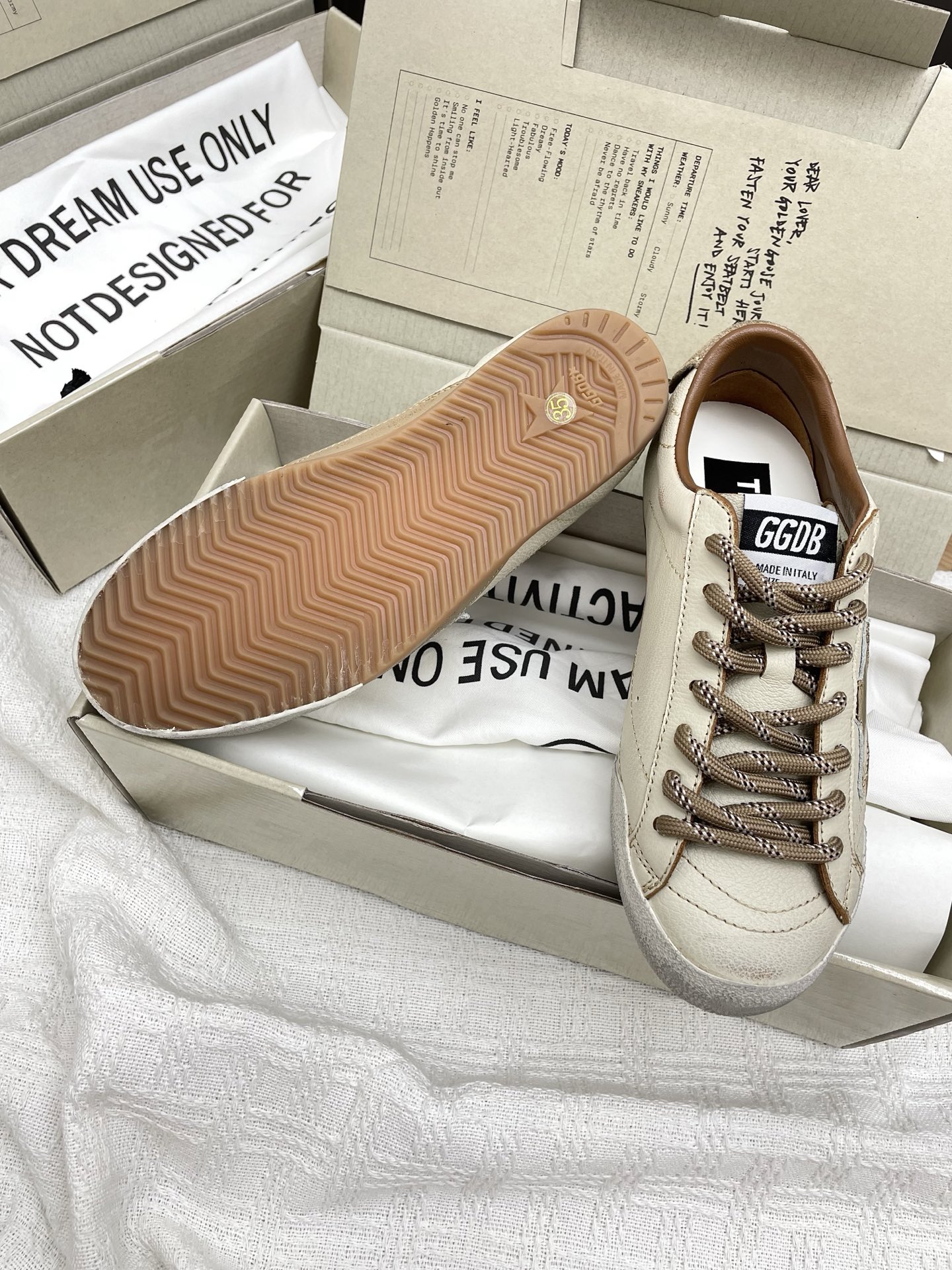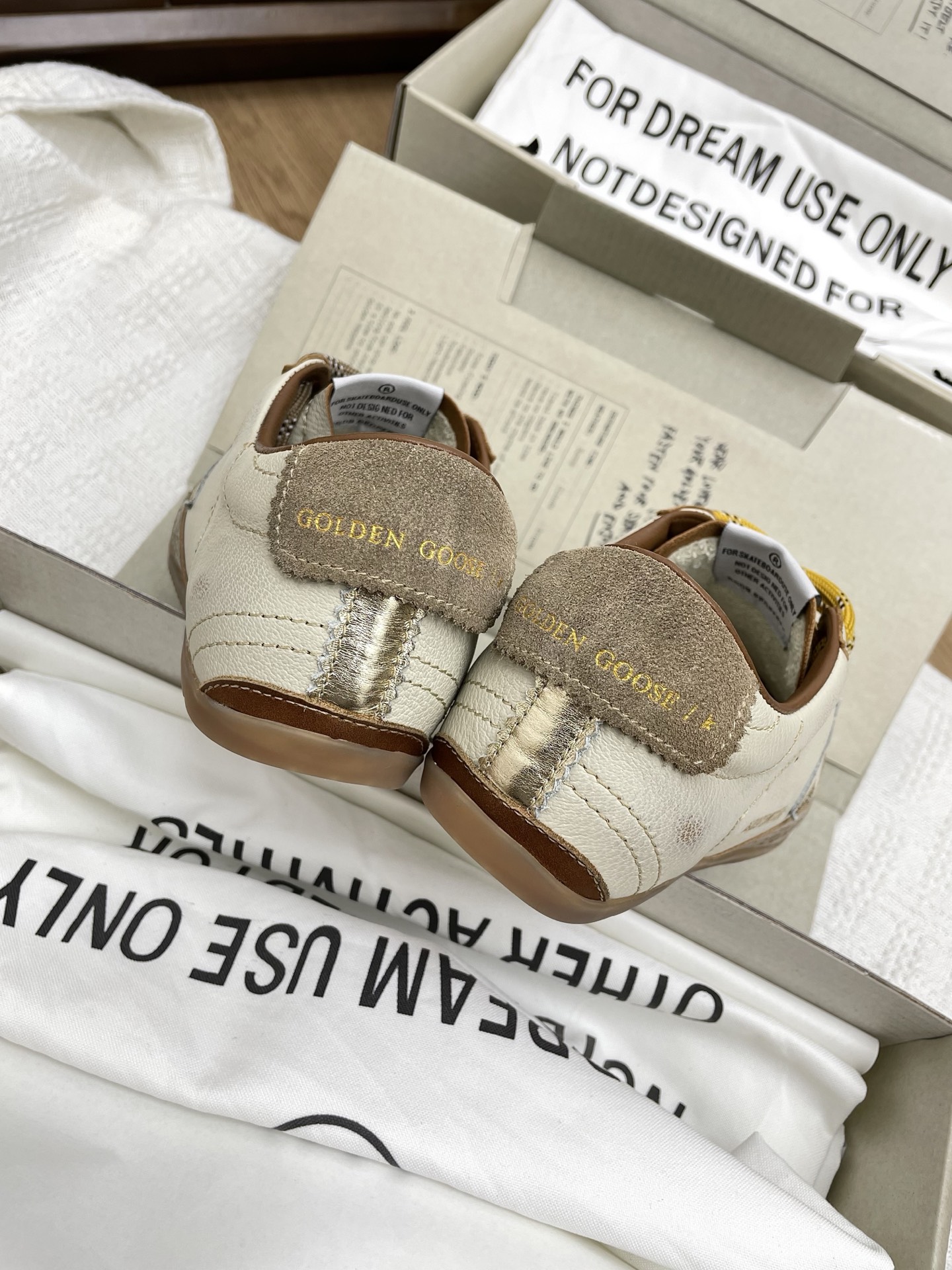 这款鞋子是AAAAA 1:1 质量 (非常棒). 使用了和原版一模一样的材料. 商标部分也保持了和Golden Goose一样. 图片拍摄是实物鞋子拍摄, 您所收到的实物保证和我们图片一模一样.
