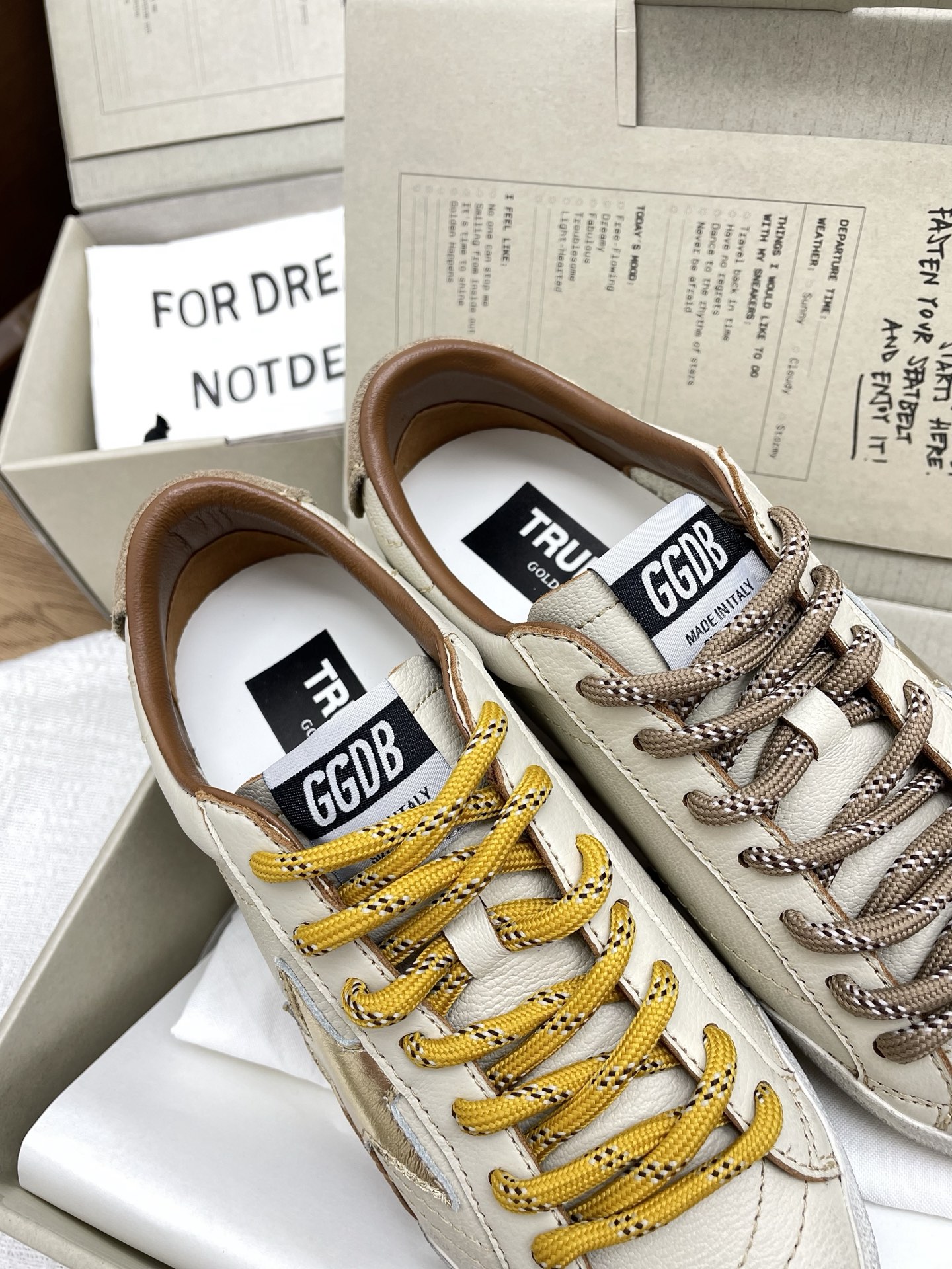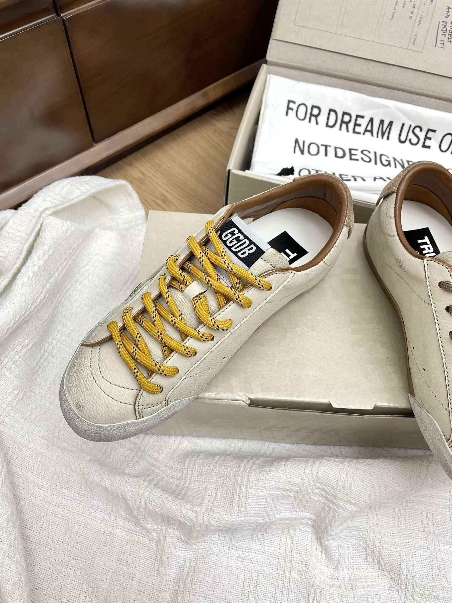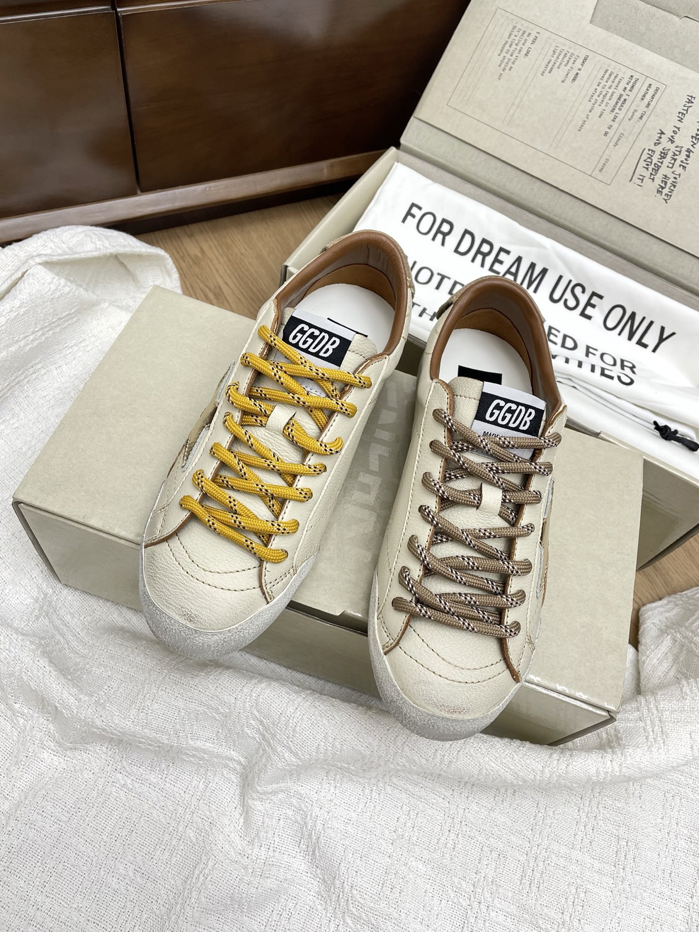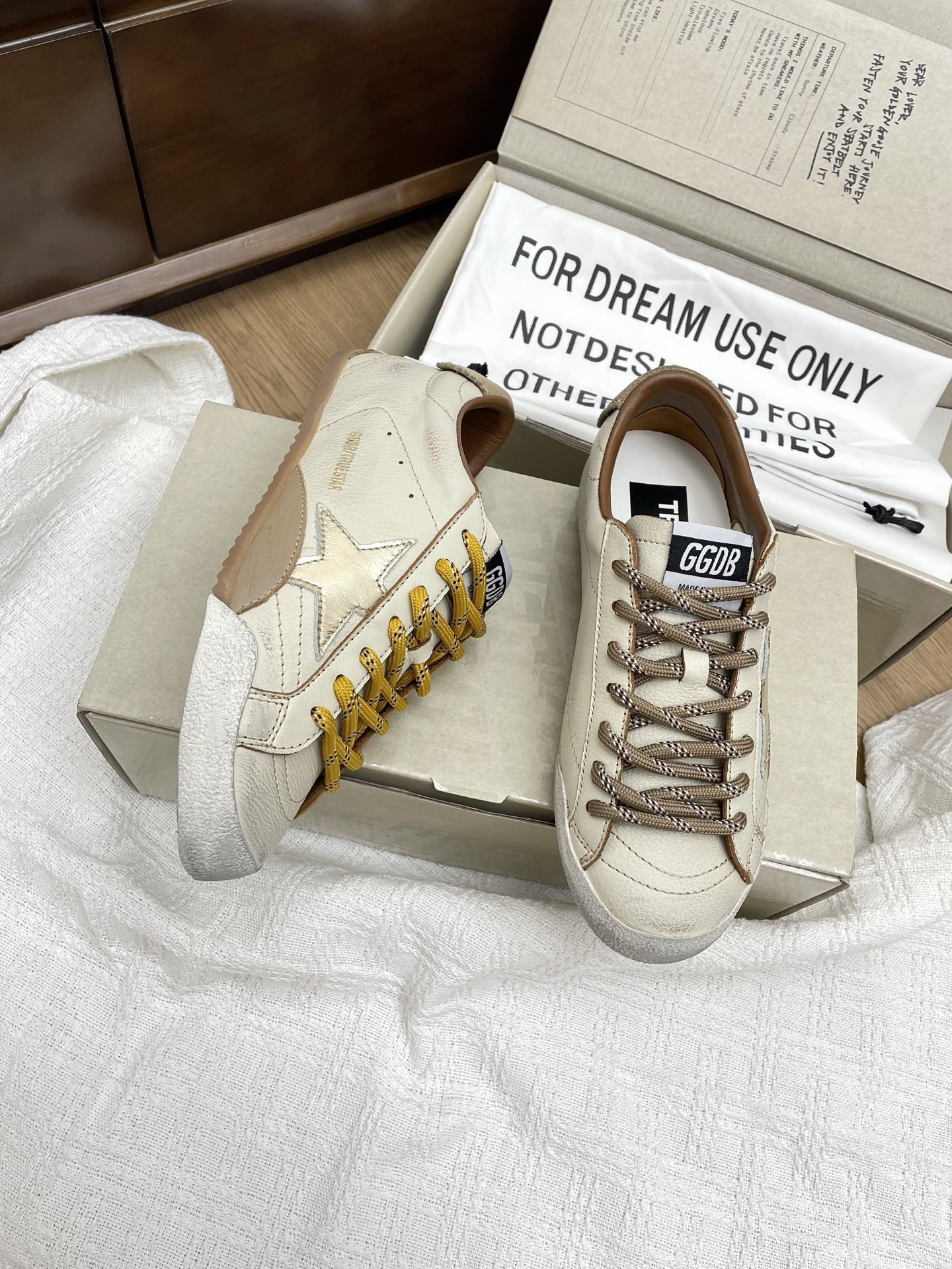这款鞋子是AAAAA 1:1 质量 (非常棒). 使用了和原版一模一样的材料. 商标部分也保持了和Golden Goose一样. 图片拍摄是实物鞋子拍摄, 您所收到的实物保证和我们图片一模一样.