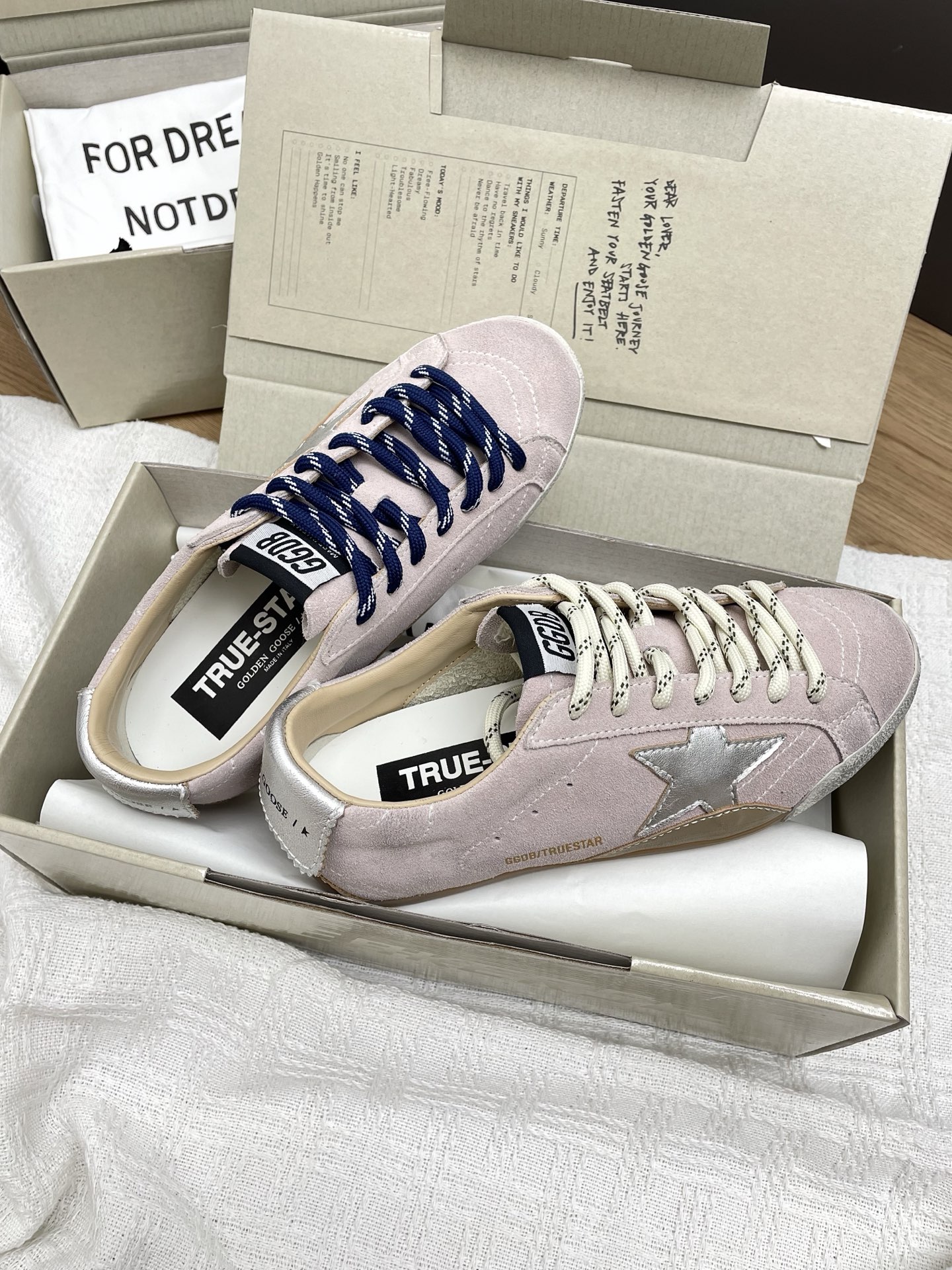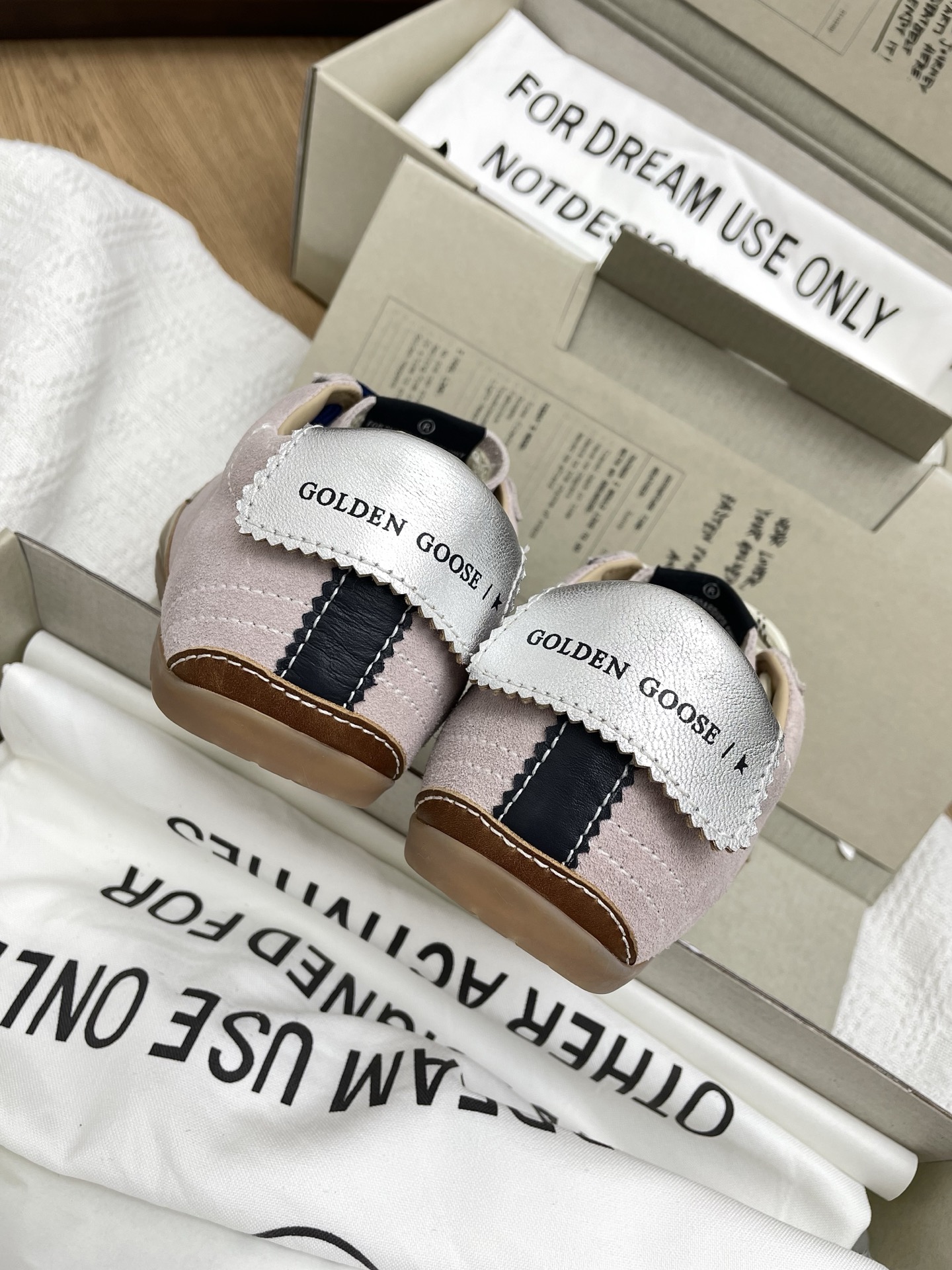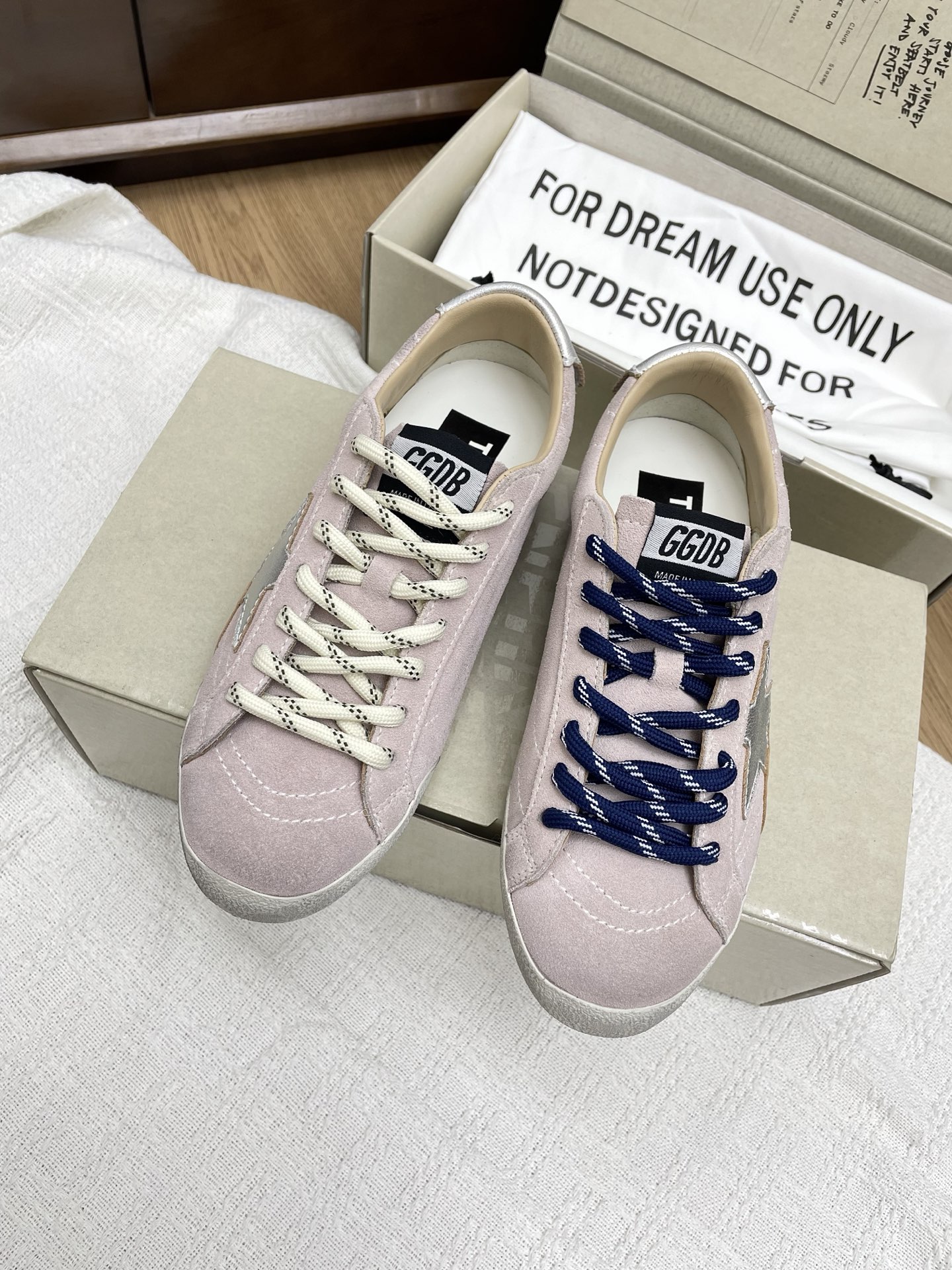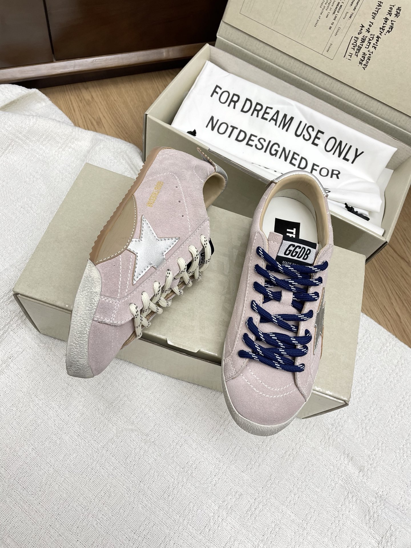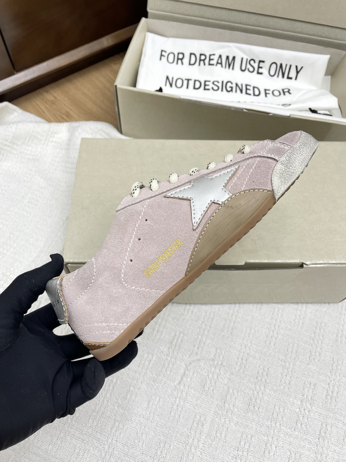 这款鞋子是AAAAA 1:1 质量 (非常棒). 使用了和原版一模一样的材料. 商标部分也保持了和Golden Goose一样. 图片拍摄是实物鞋子拍摄, 您所收到的实物保证和我们图片一模一样.