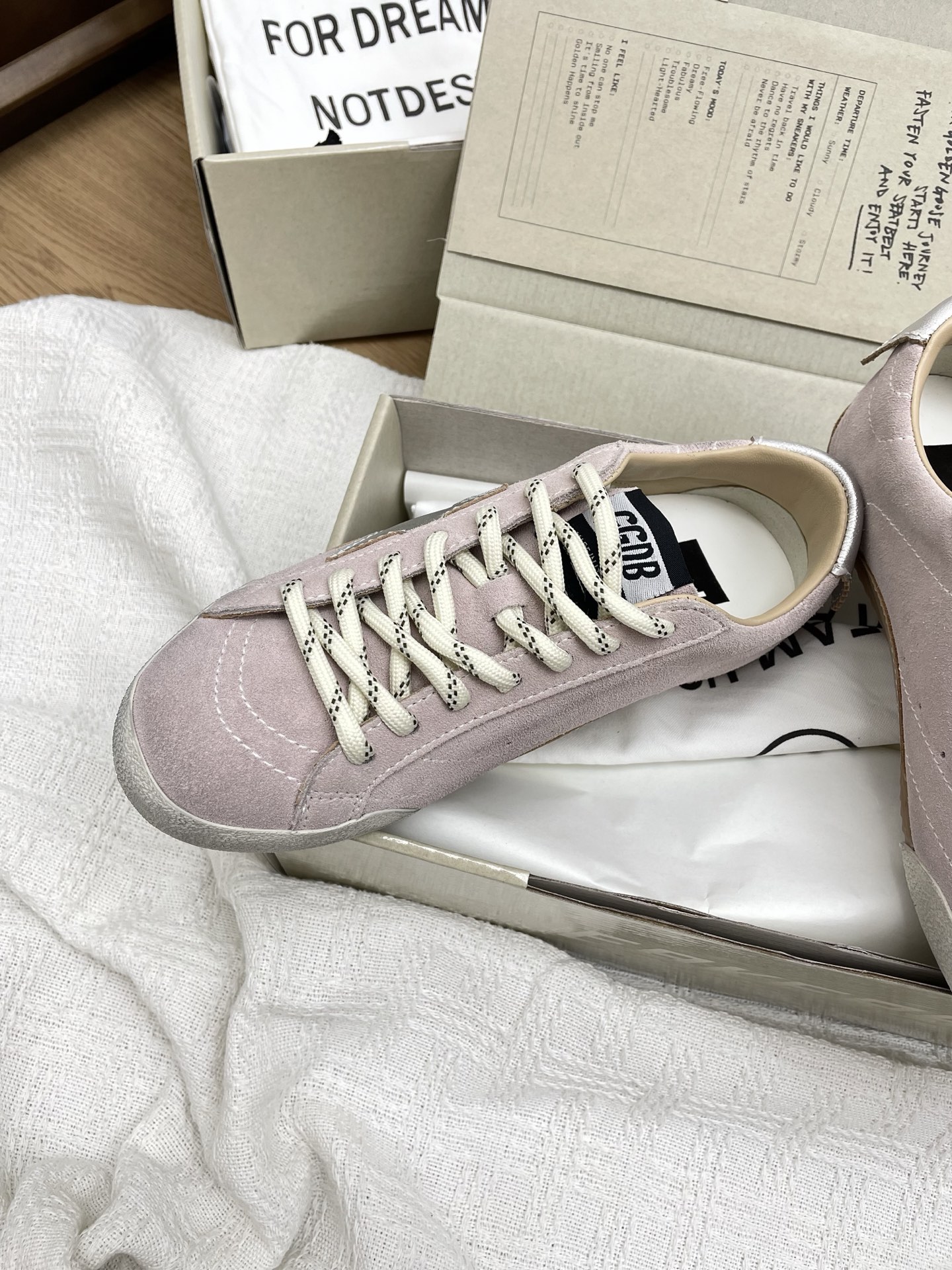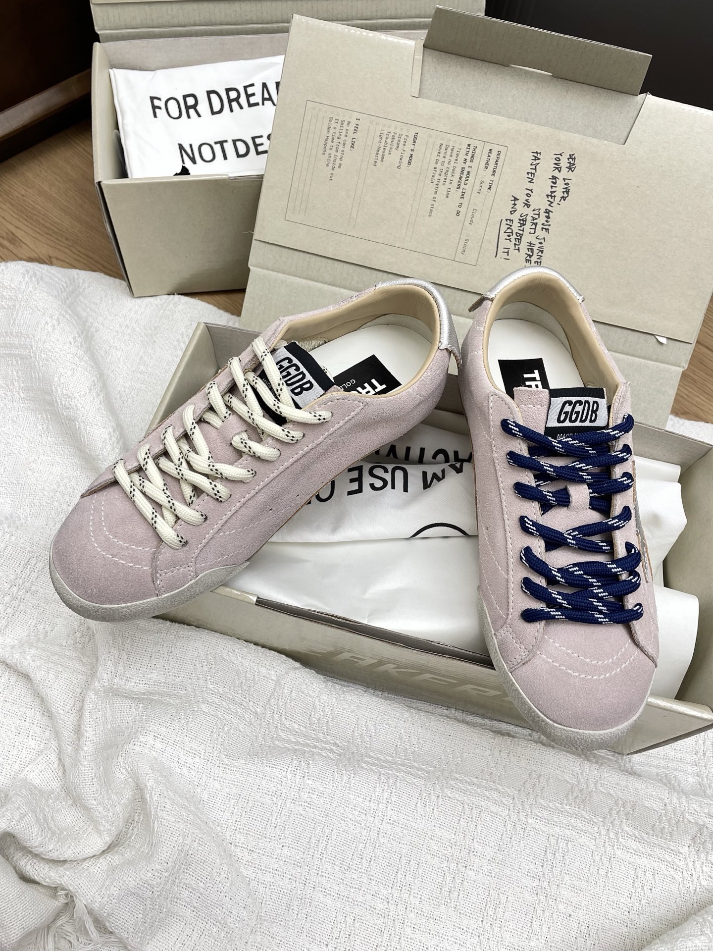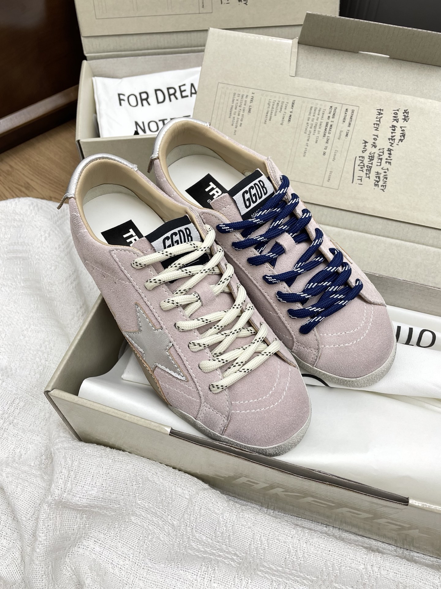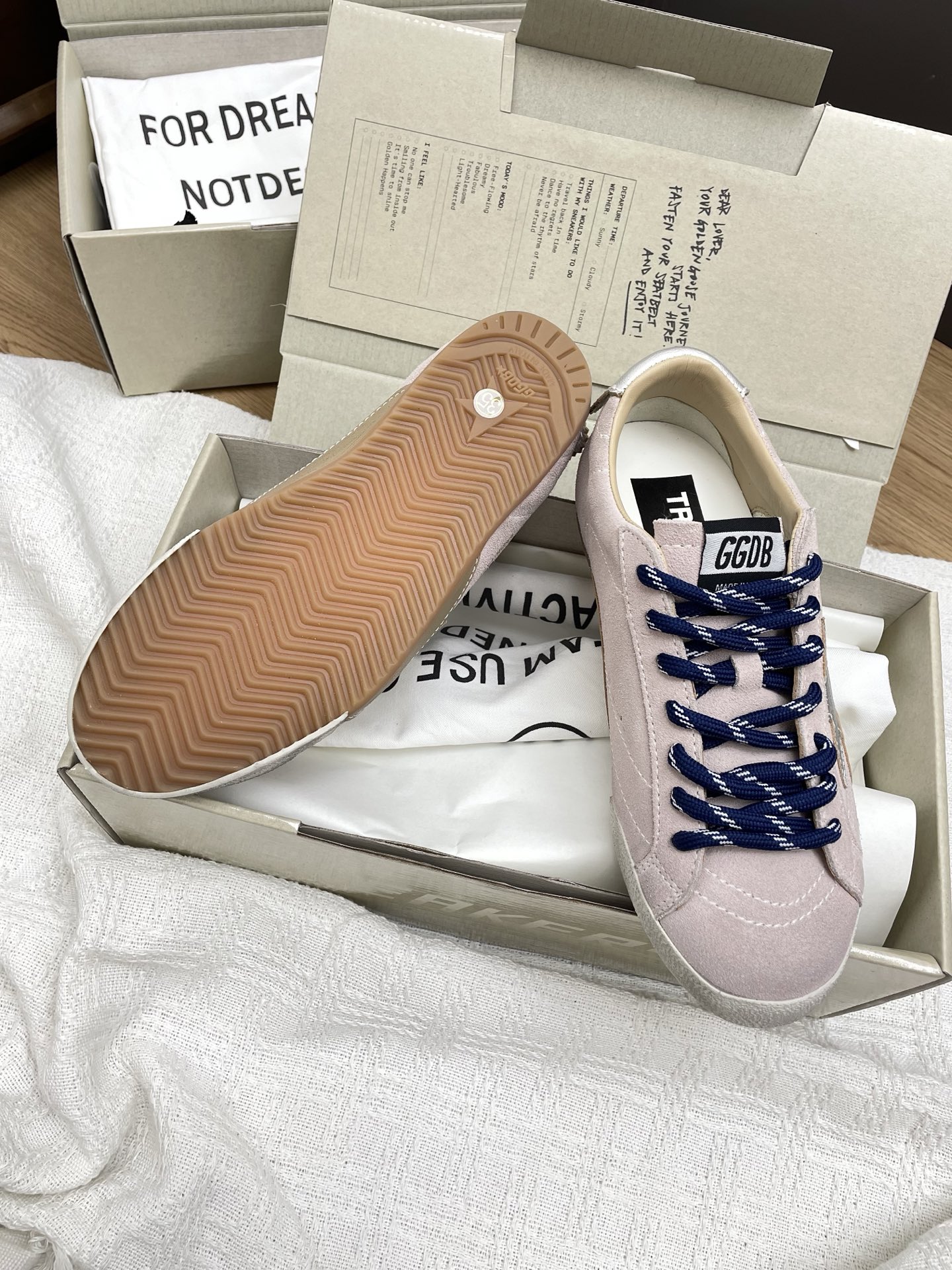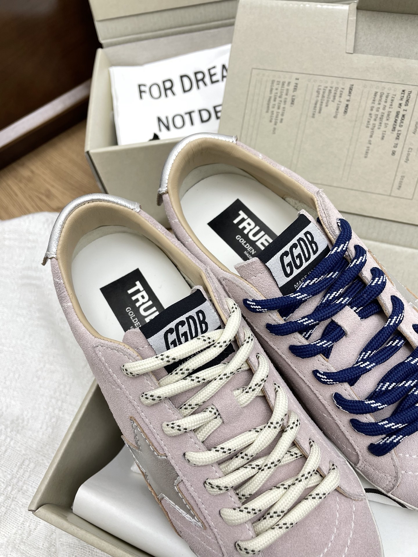 这款鞋子是AAAAA 1:1 质量 (非常棒). 使用了和原版一模一样的材料. 商标部分也保持了和Golden Goose一样. 图片拍摄是实物鞋子拍摄, 您所收到的实物保证和我们图片一模一样.