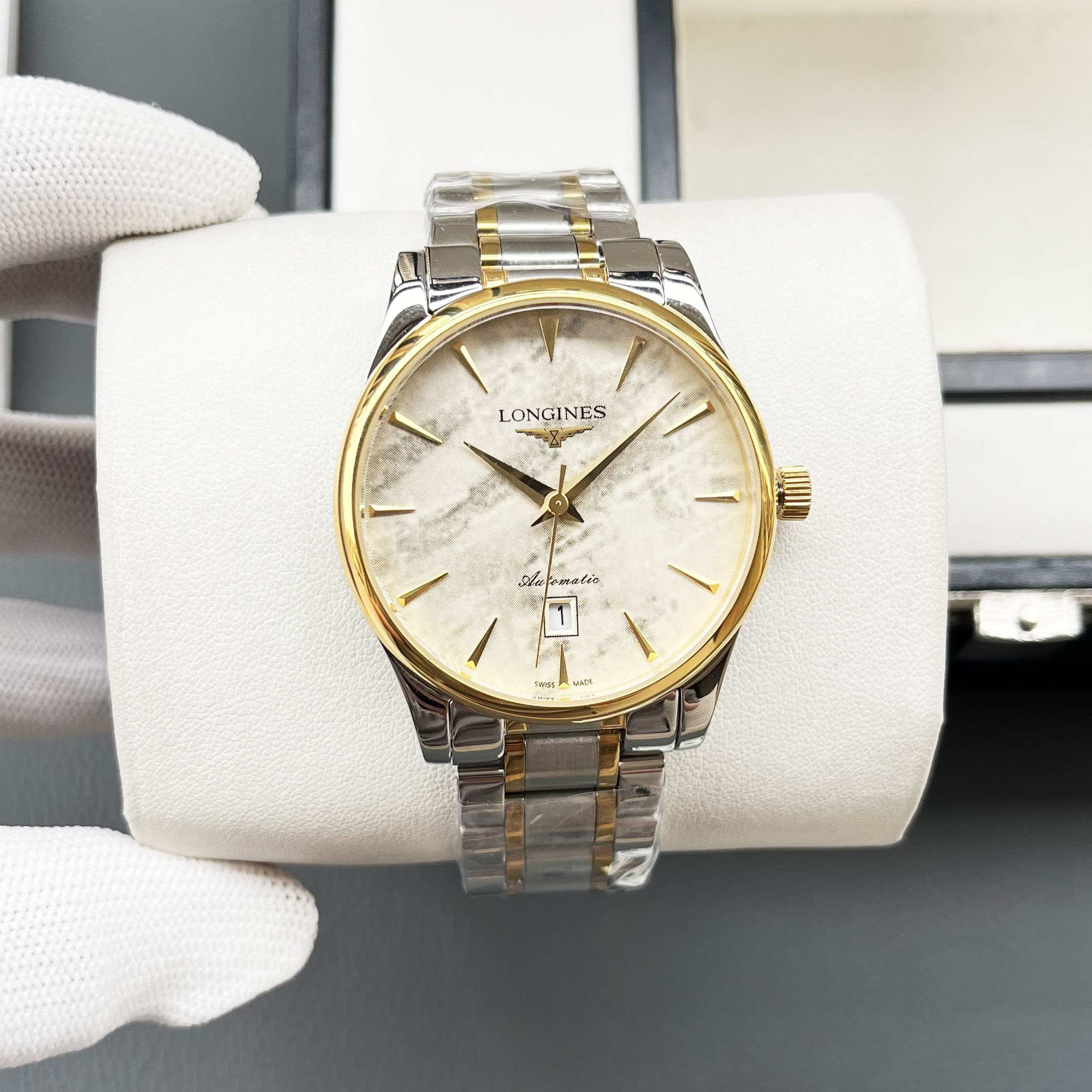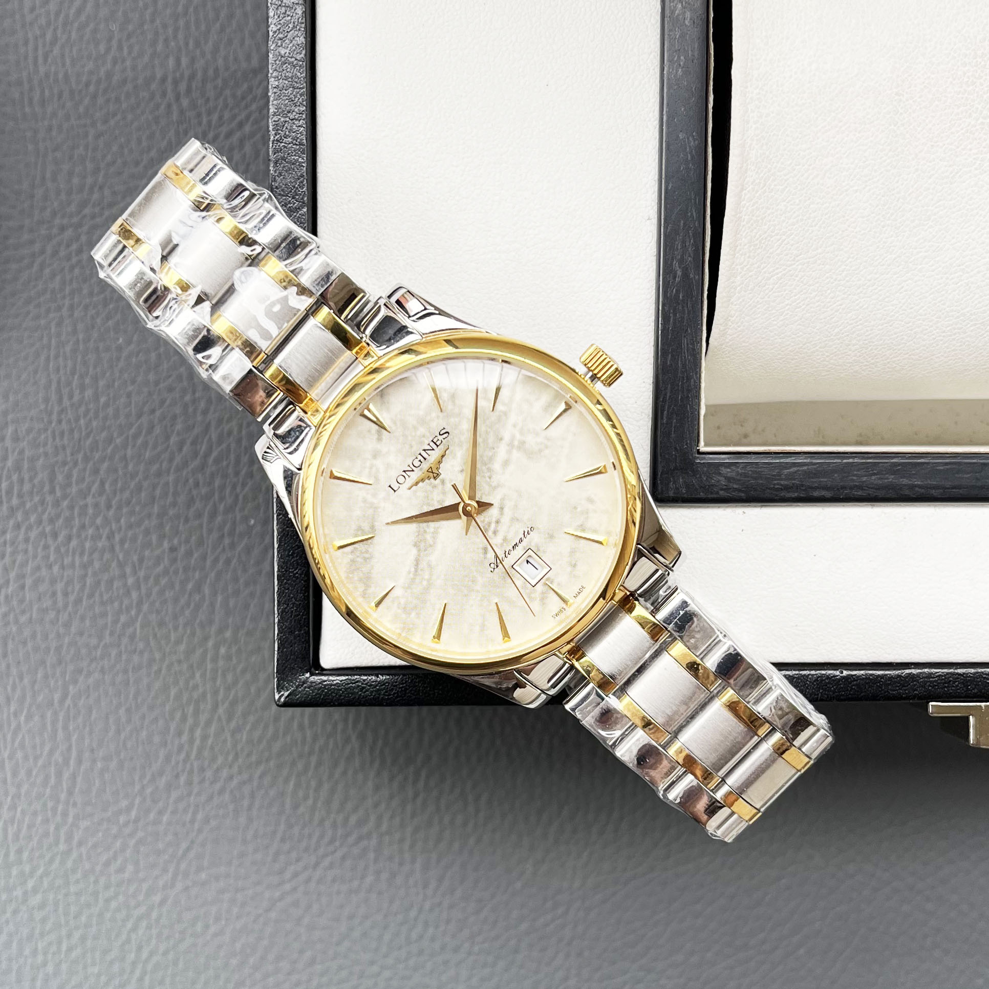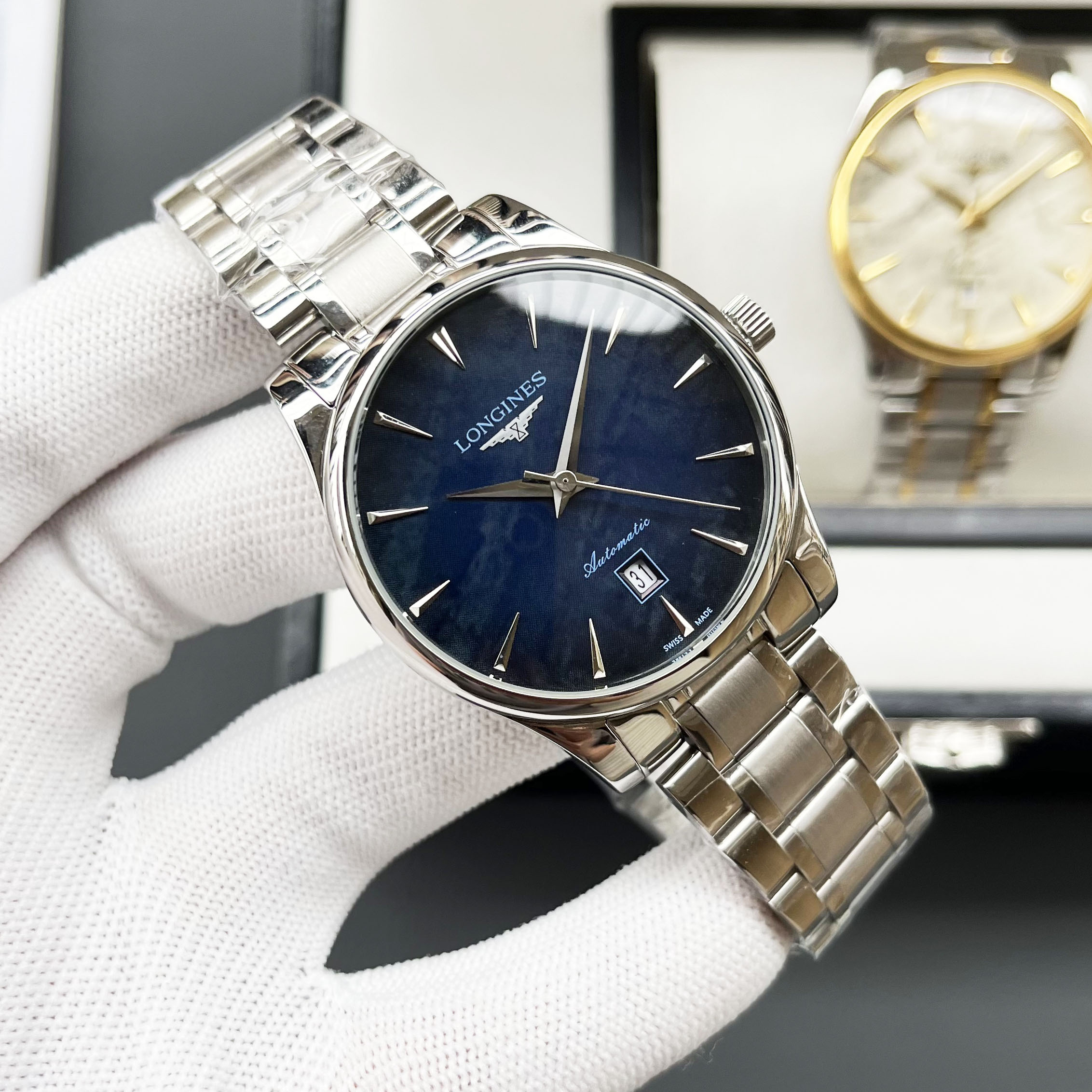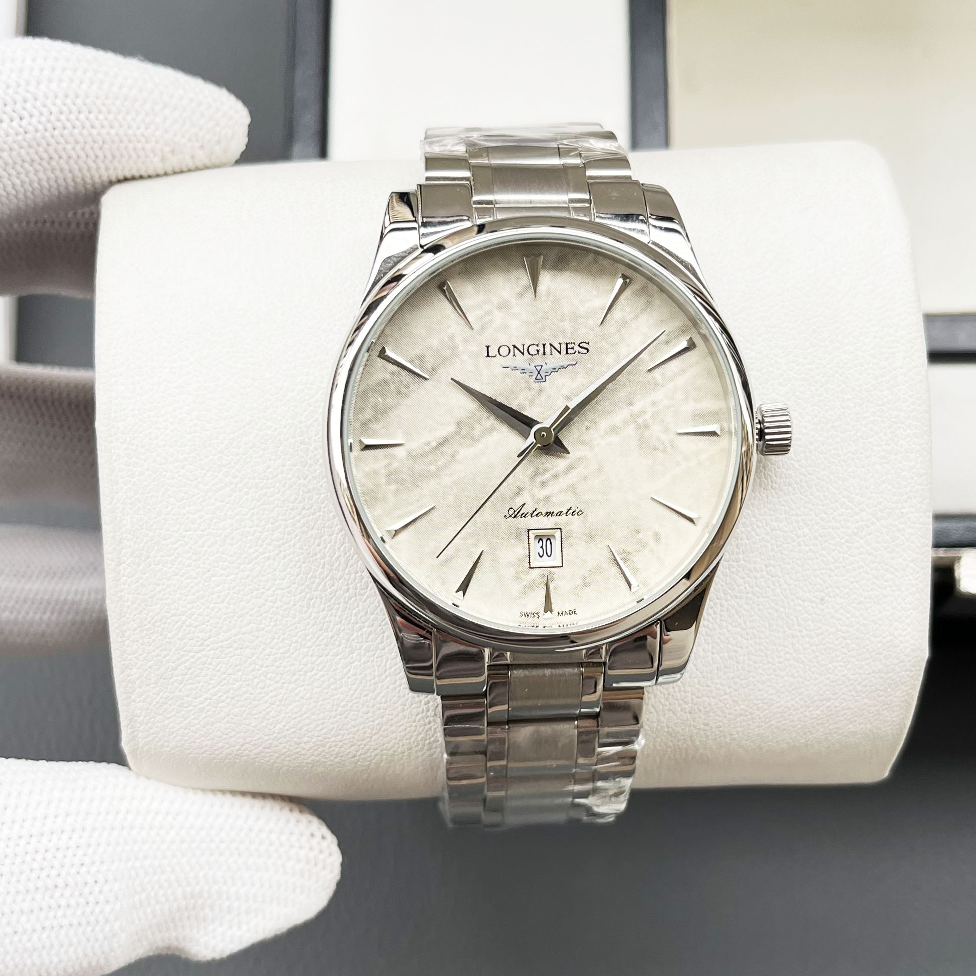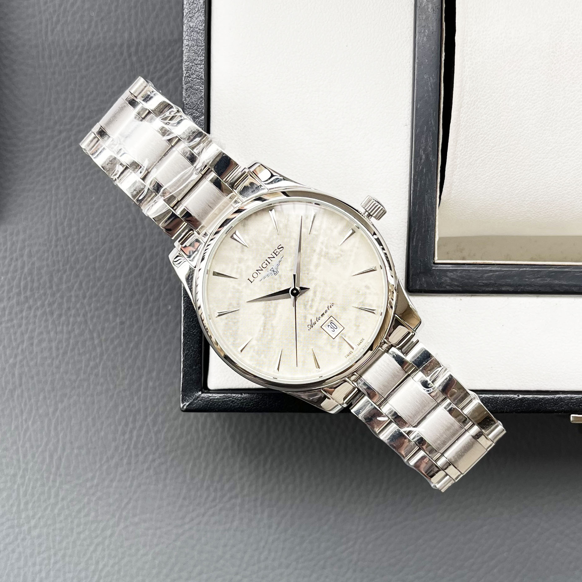 这款手表是AAAAA 1:1 质量 (非常棒). 使用了和原版一模一样的材料. 商标部分也保持了和浪琴/Longines一样. 图片拍摄是实物手表拍摄, 您所收到的实物保证和我们图片一模一样.