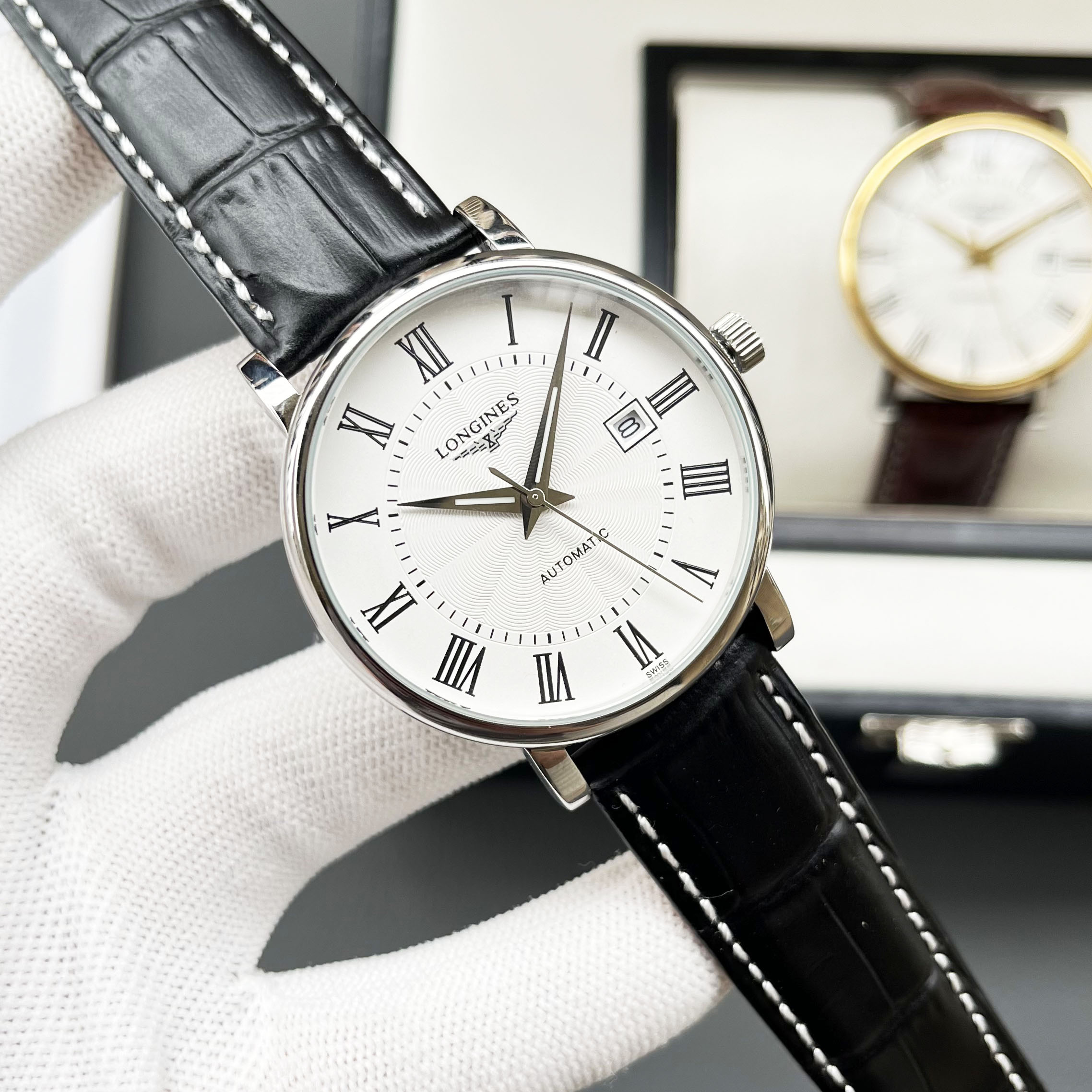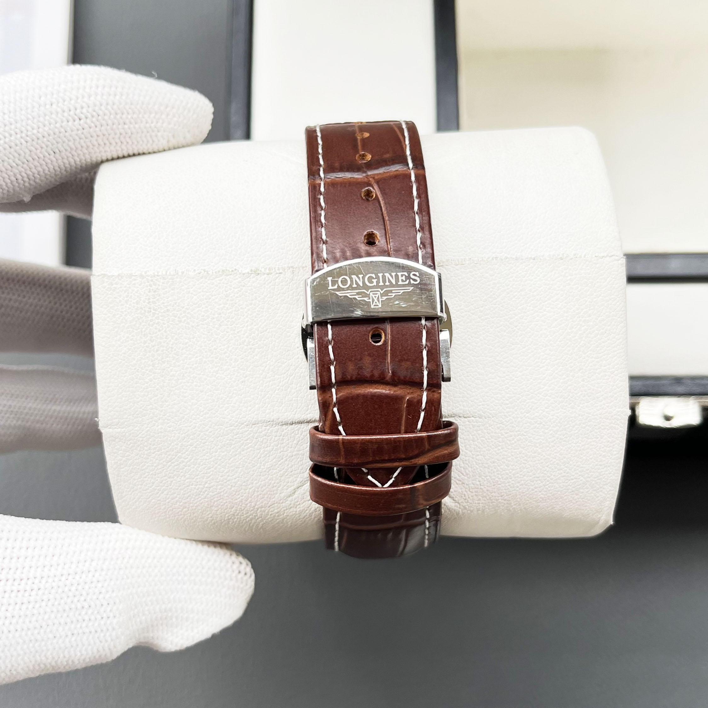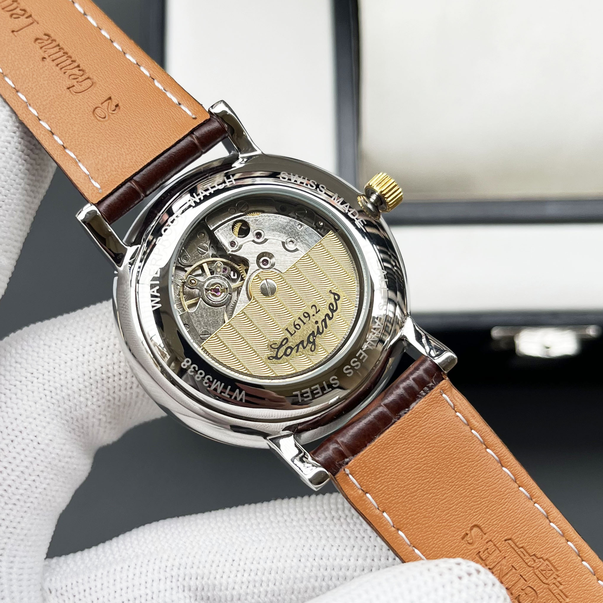 这款手表是AAAAA 1:1 质量 (非常棒). 使用了和原版一模一样的材料. 商标部分也保持了和浪琴/Longines一样. 图片拍摄是实物手表拍摄, 您所收到的实物保证和我们图片一模一样.