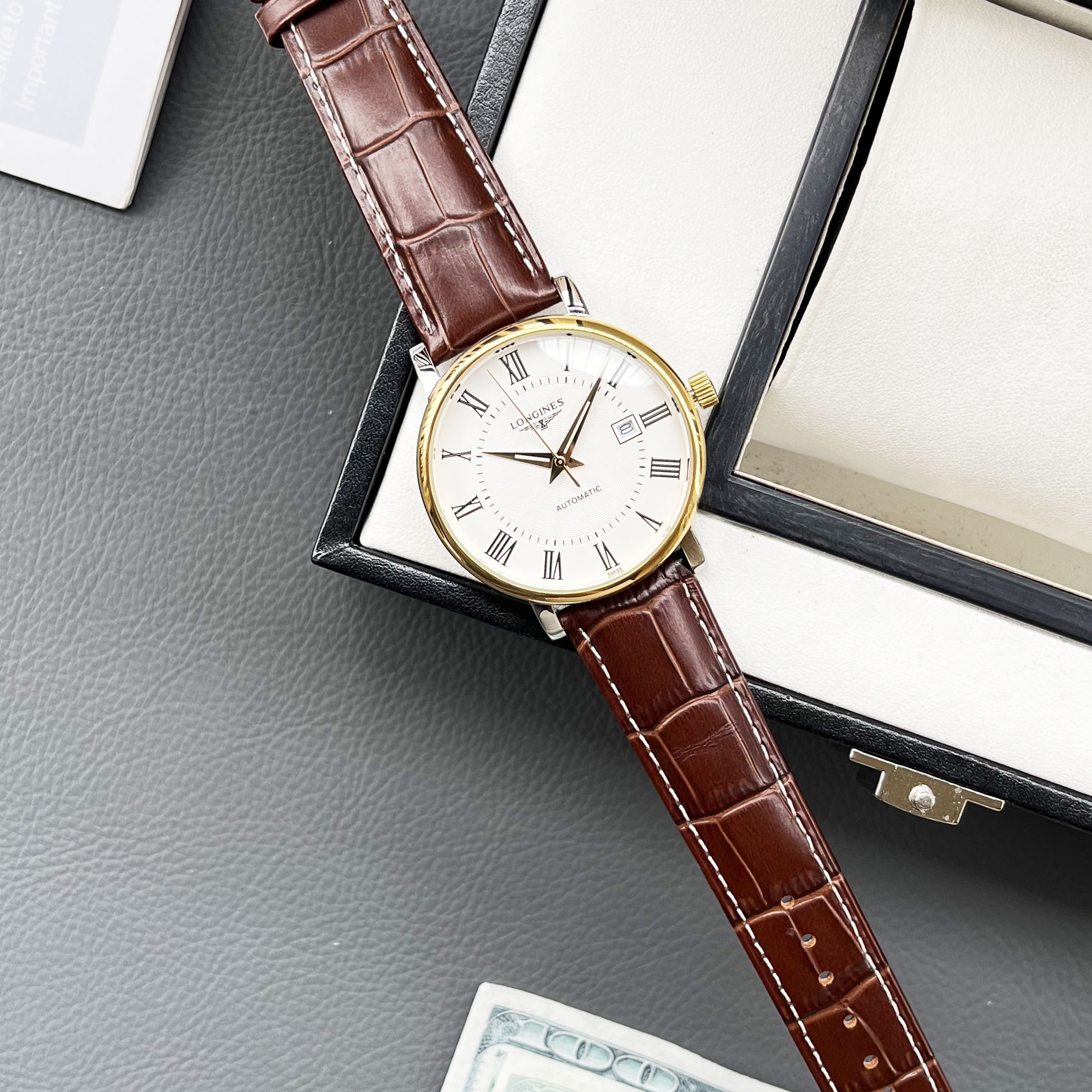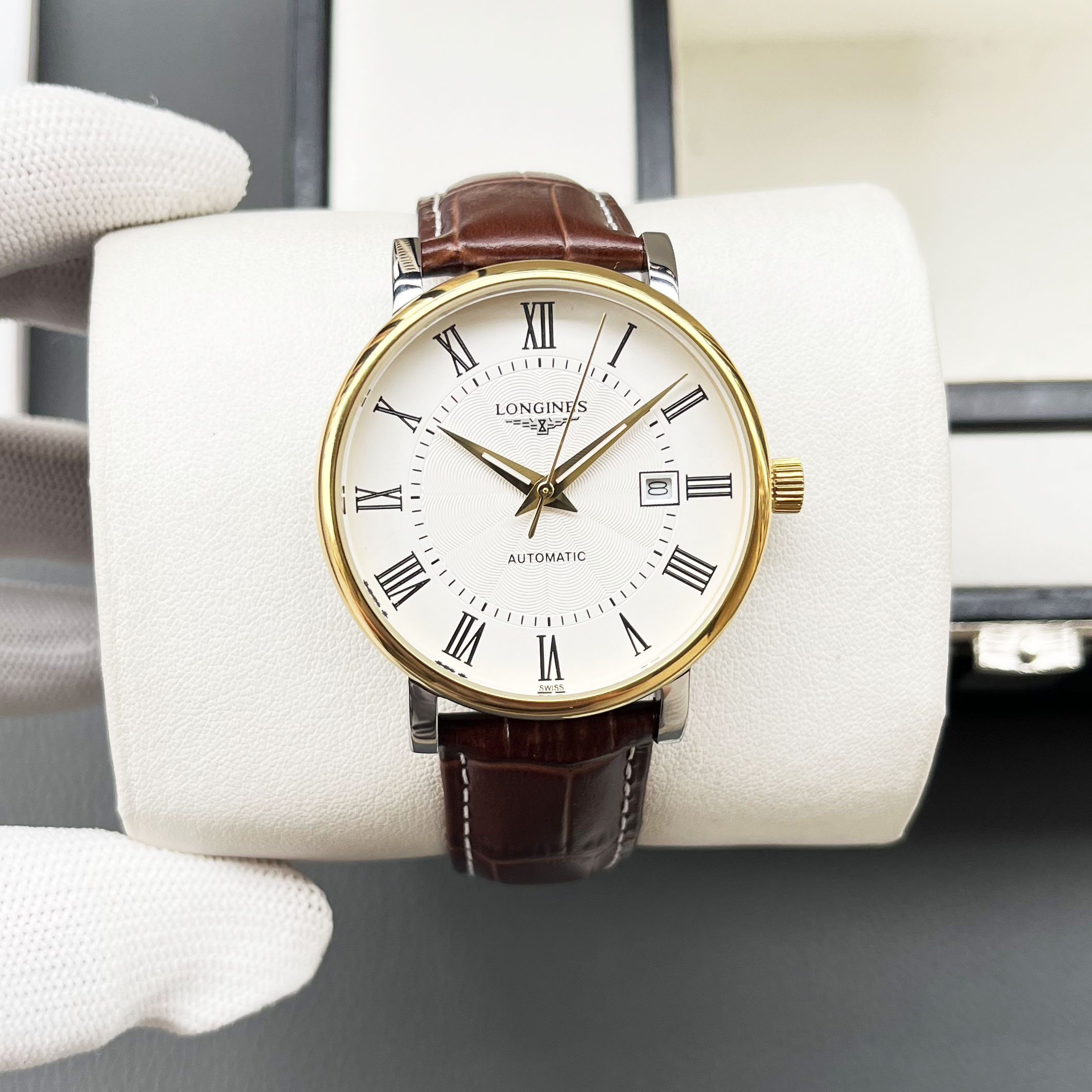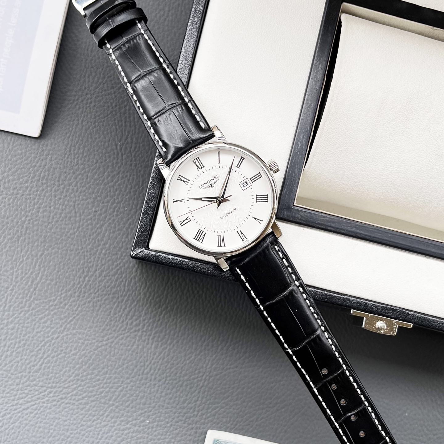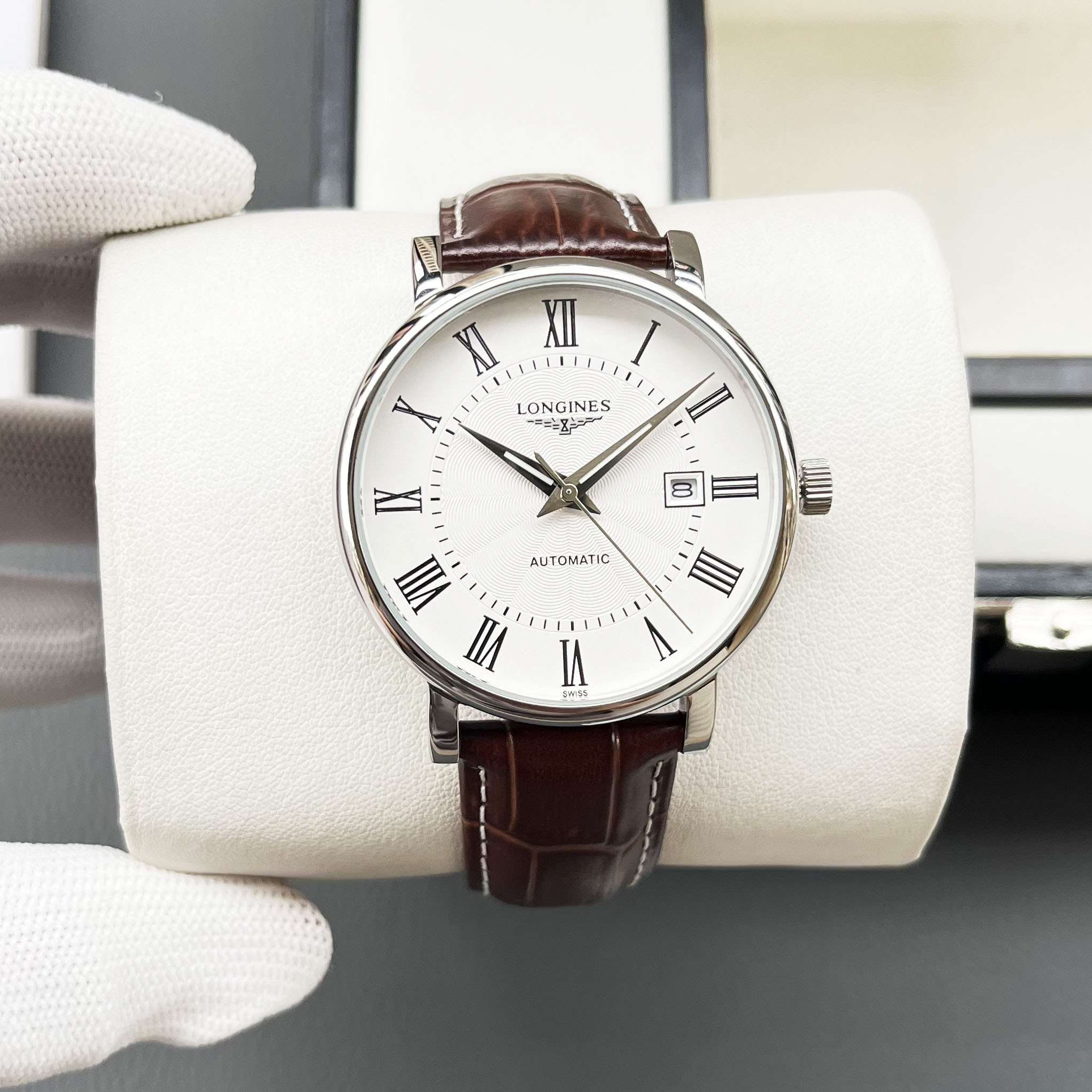 这款手表是AAAAA 1:1 质量 (非常棒). 使用了和原版一模一样的材料. 商标部分也保持了和浪琴/Longines一样. 图片拍摄是实物手表拍摄, 您所收到的实物保证和我们图片一模一样.