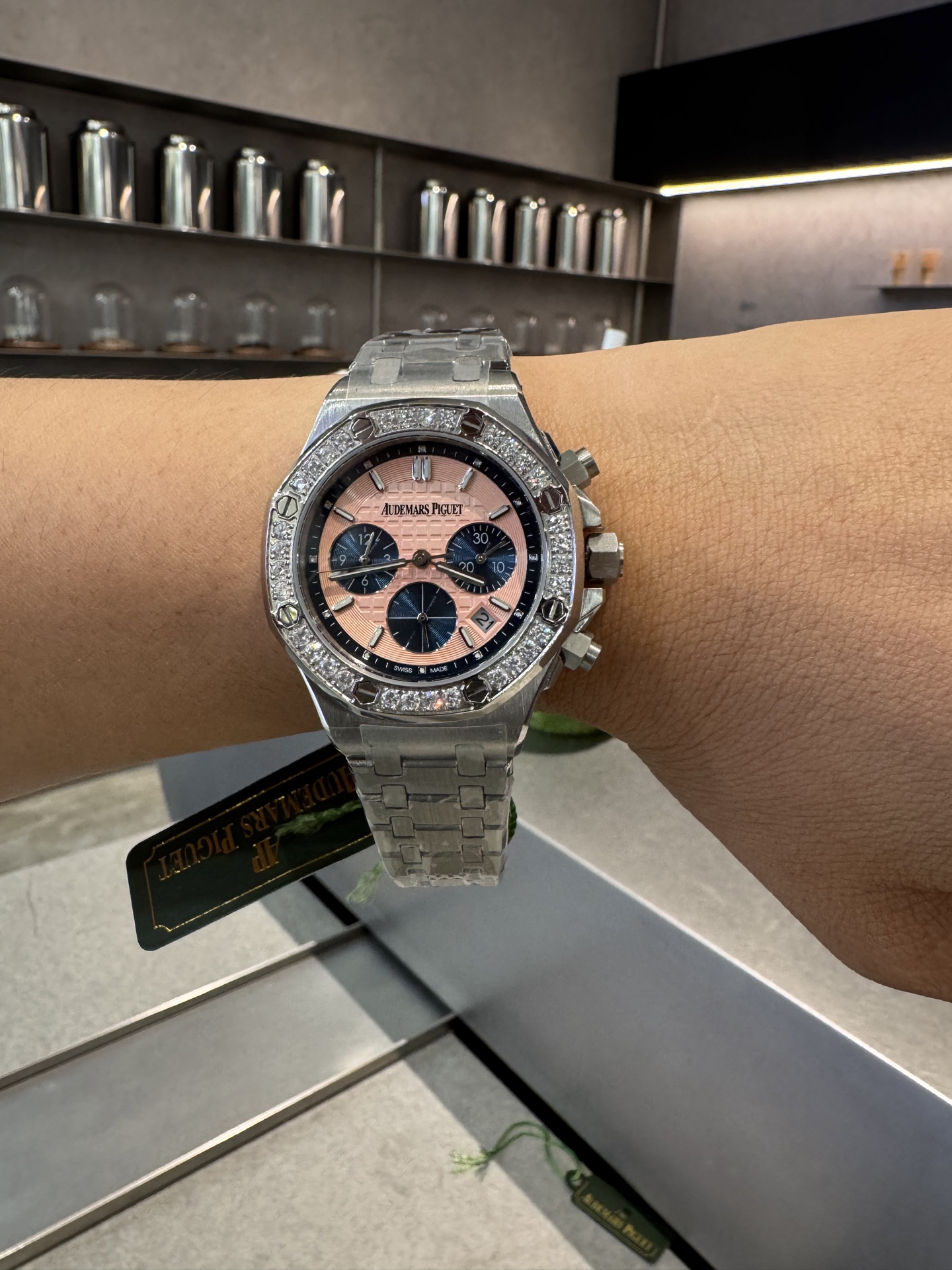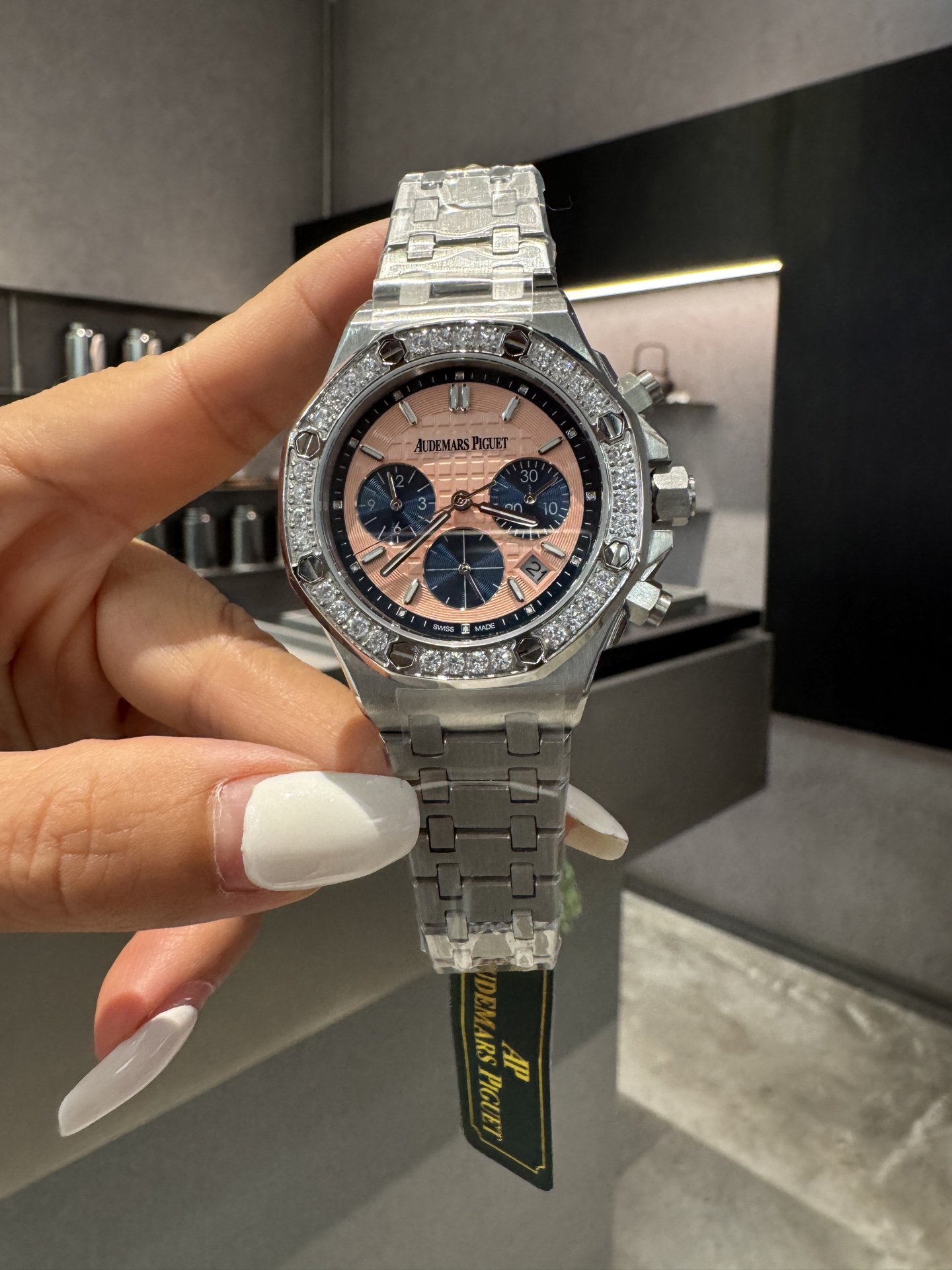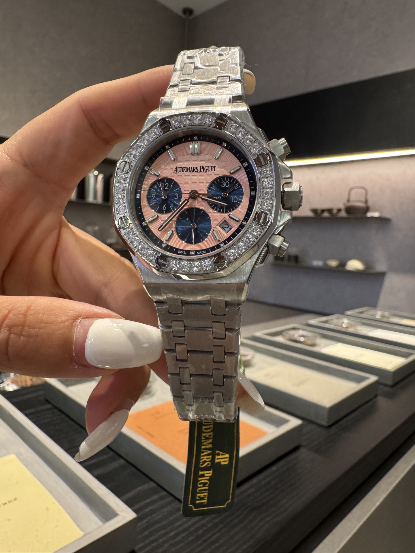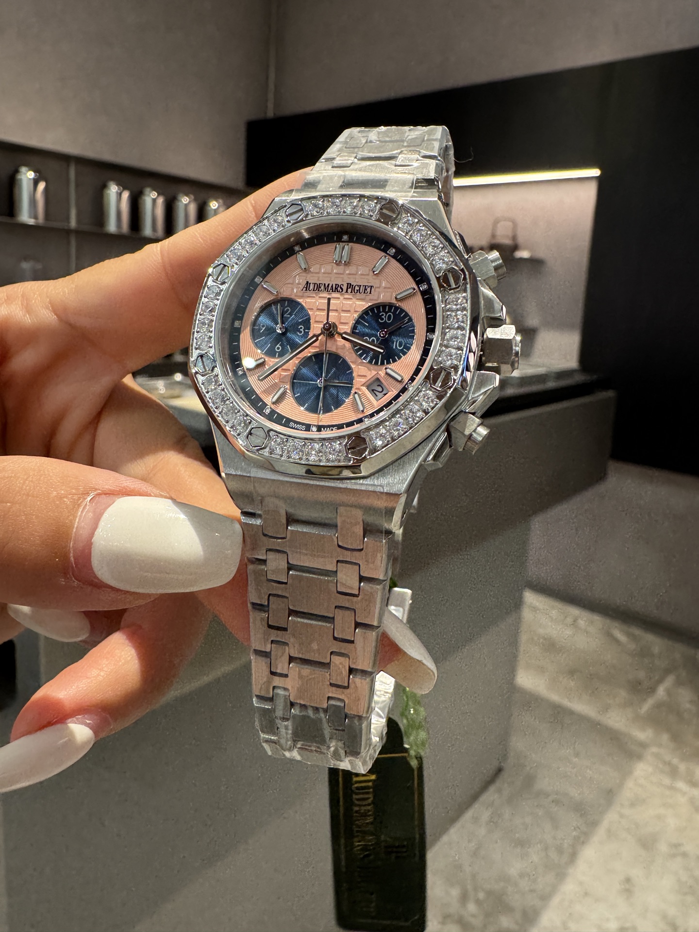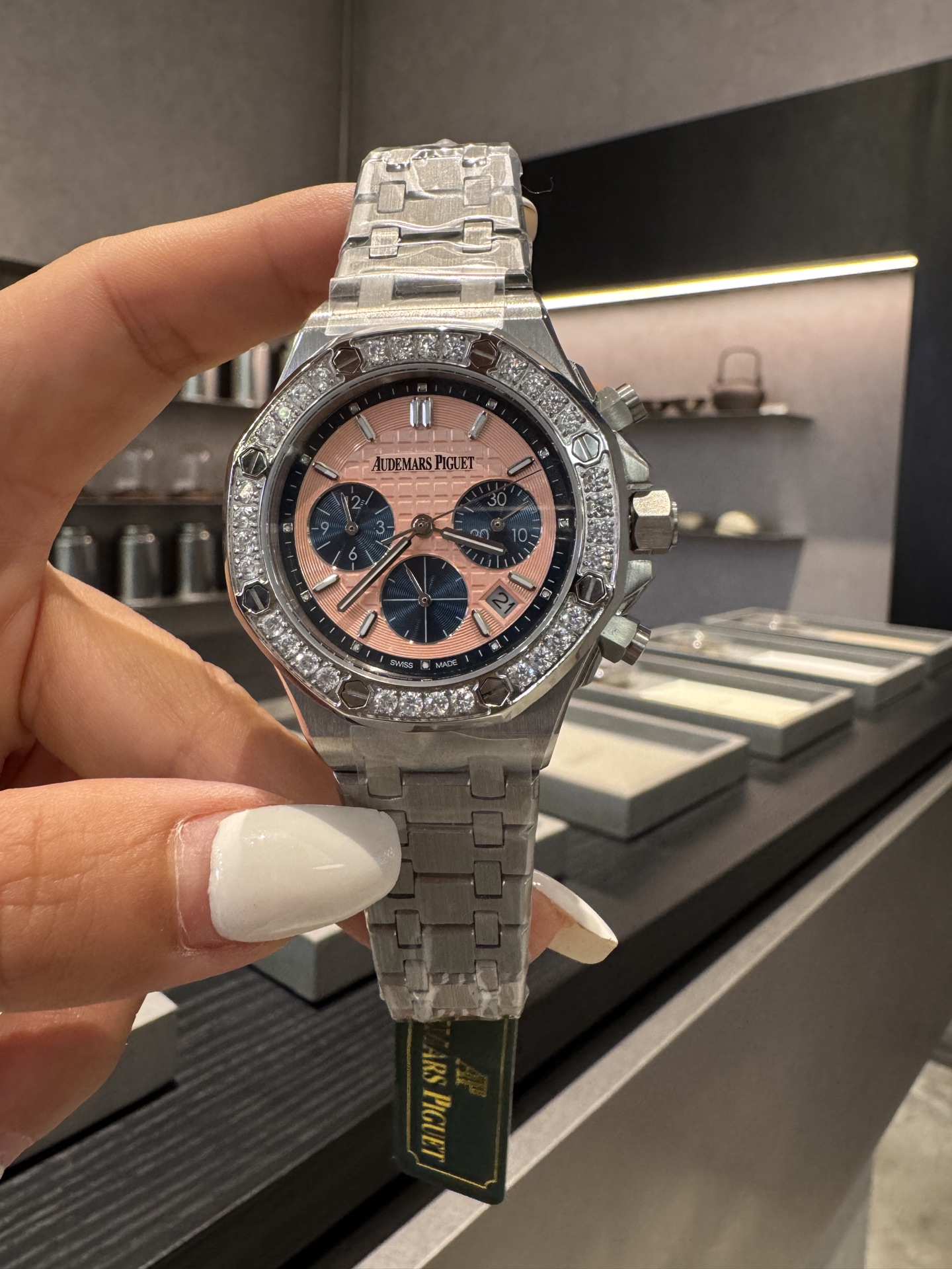 这款手表是AAAAA 1:1 质量 (非常棒). 使用了和原版一模一样的材料. 商标部分也保持了和爱彼/Audemars Piguet一样. 图片拍摄是实物手表拍摄, 您所收到的实物保证和我们图片一模一样.