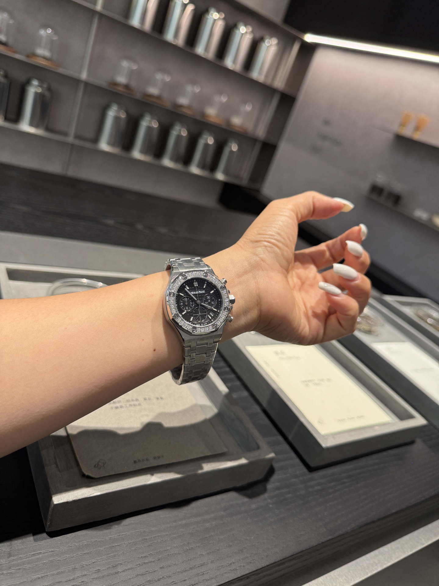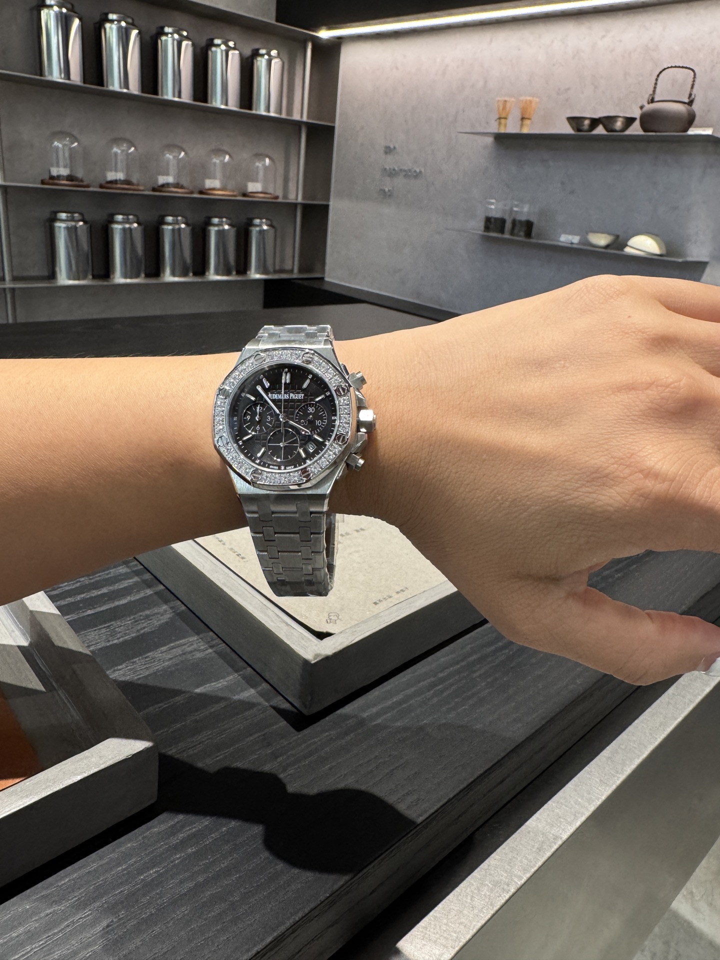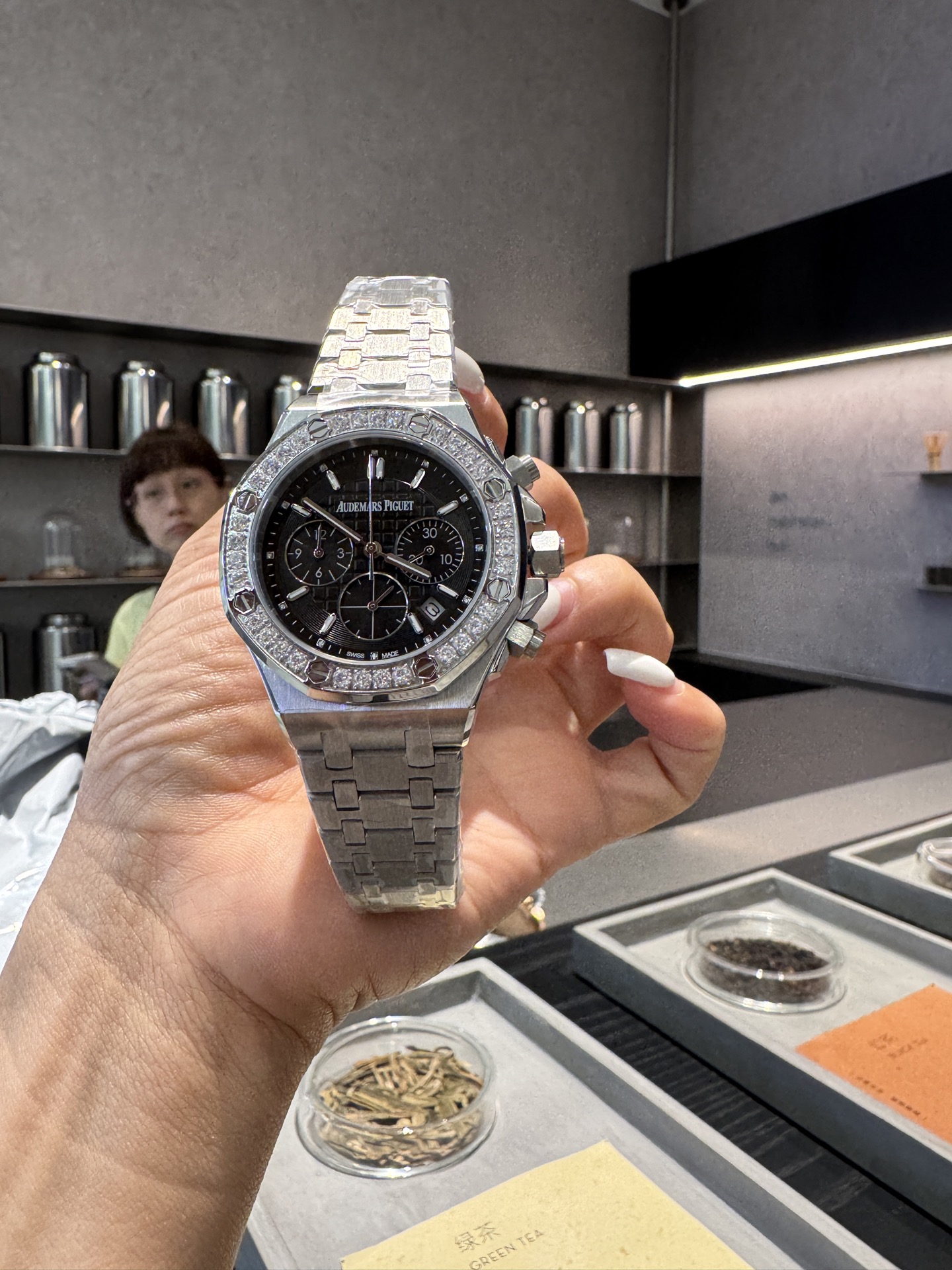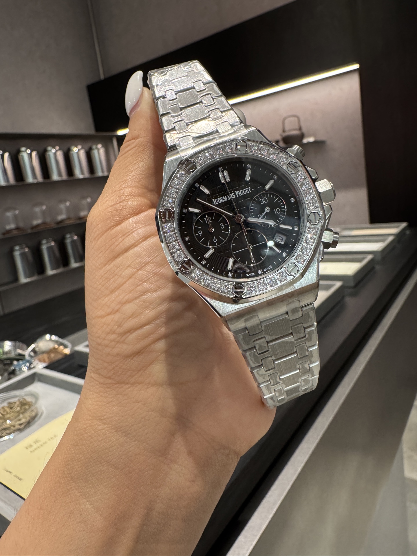 这款手表是AAAAA 1:1 质量 (非常棒). 使用了和原版一模一样的材料. 商标部分也保持了和爱彼/Audemars Piguet一样. 图片拍摄是实物手表拍摄, 您所收到的实物保证和我们图片一模一样.