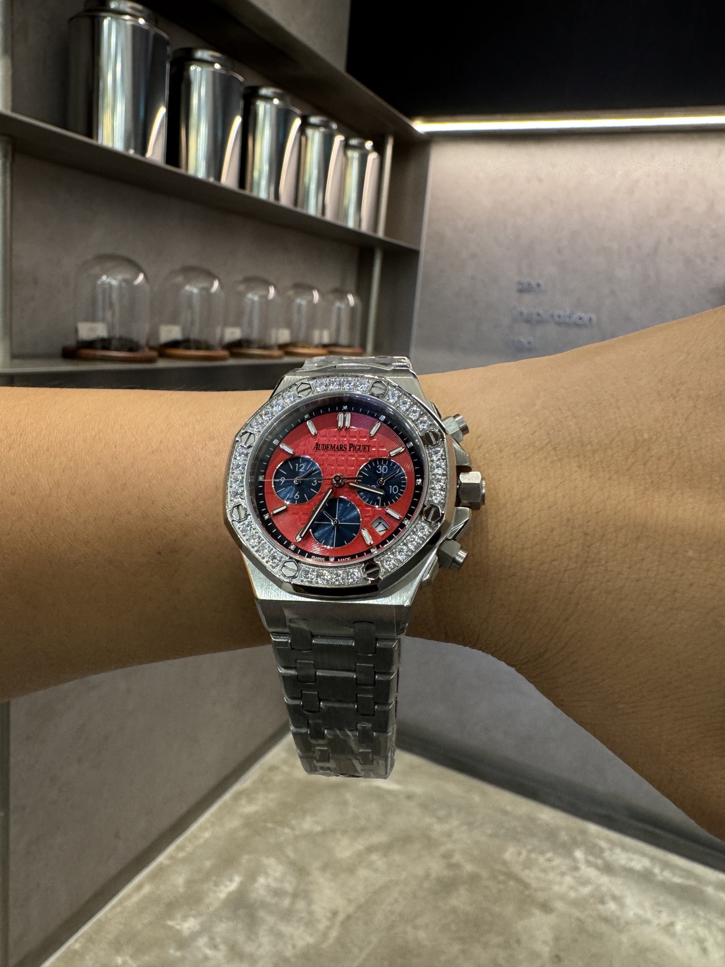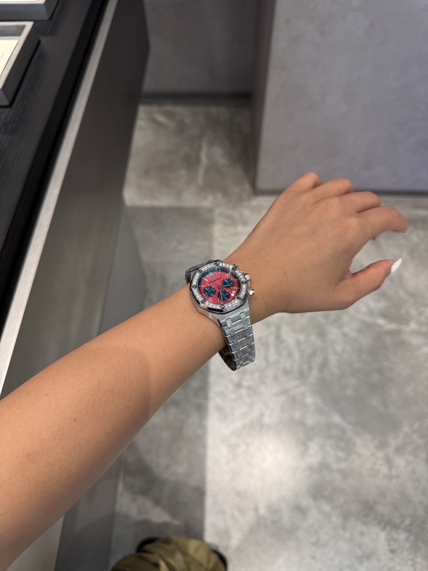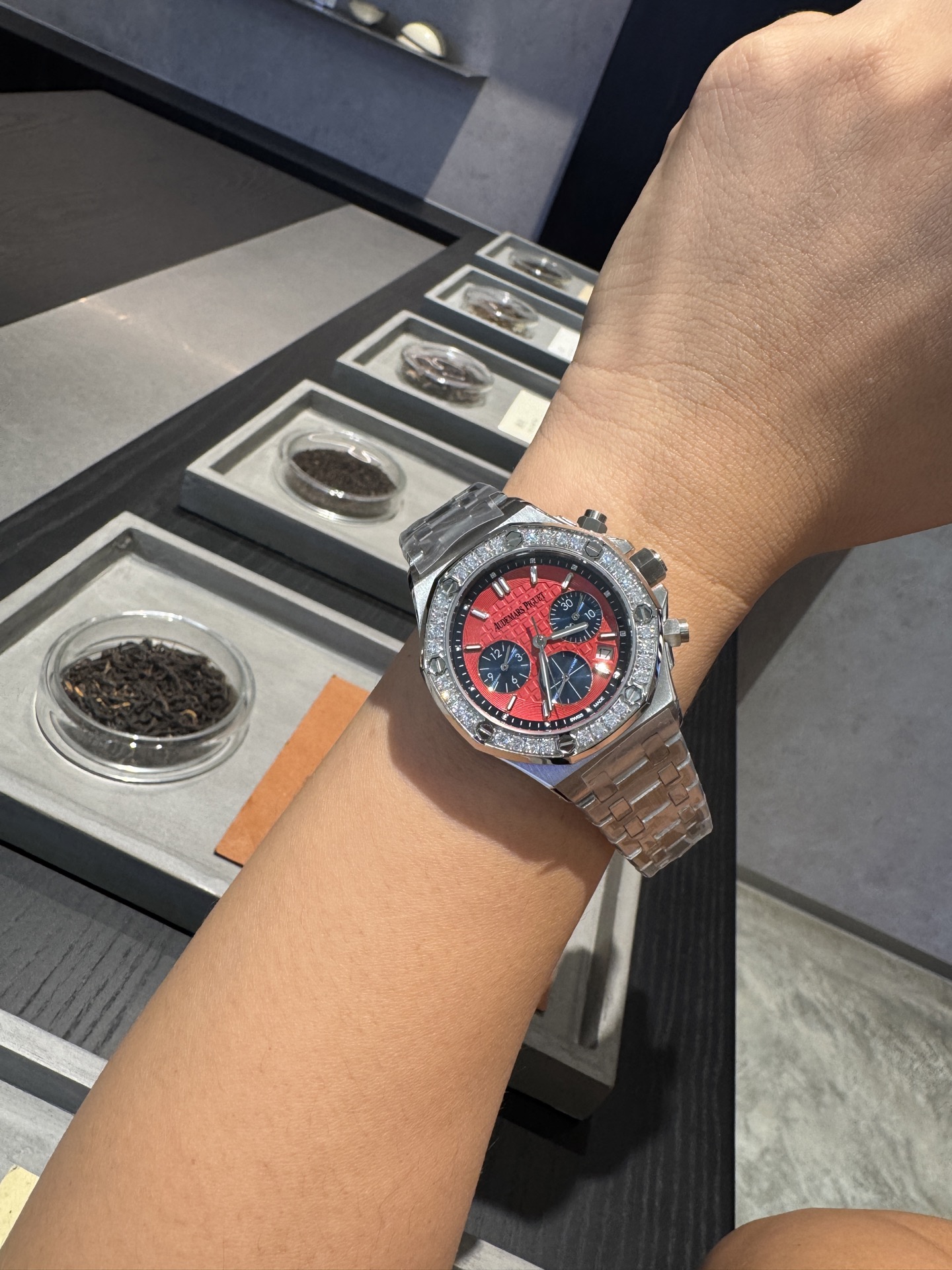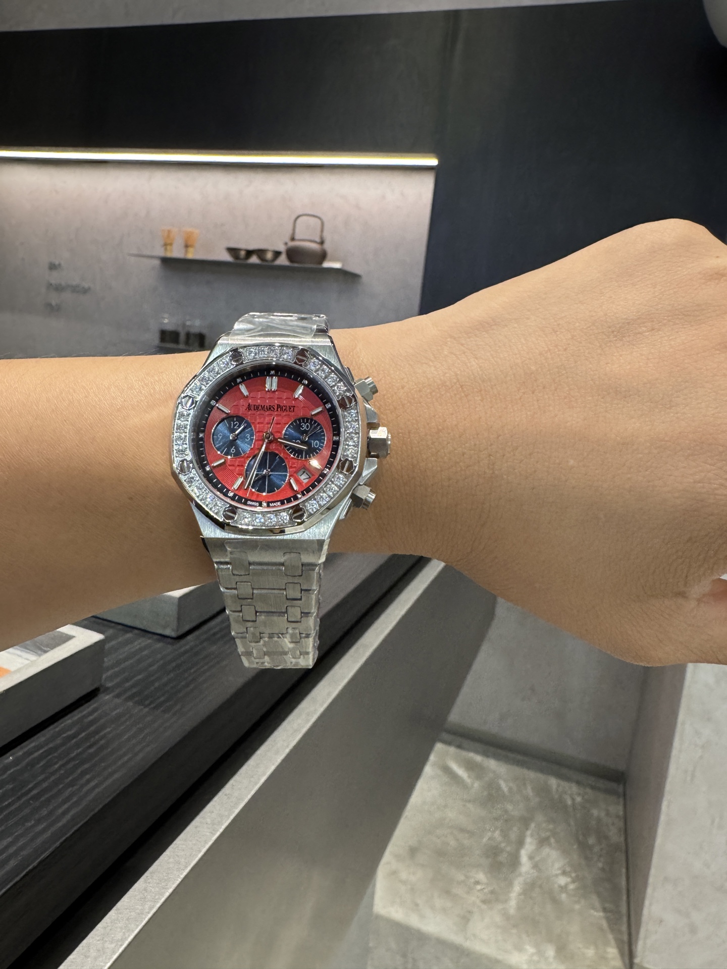 这款手表是AAAAA 1:1 质量 (非常棒). 使用了和原版一模一样的材料. 商标部分也保持了和爱彼/Audemars Piguet一样. 图片拍摄是实物手表拍摄, 您所收到的实物保证和我们图片一模一样.