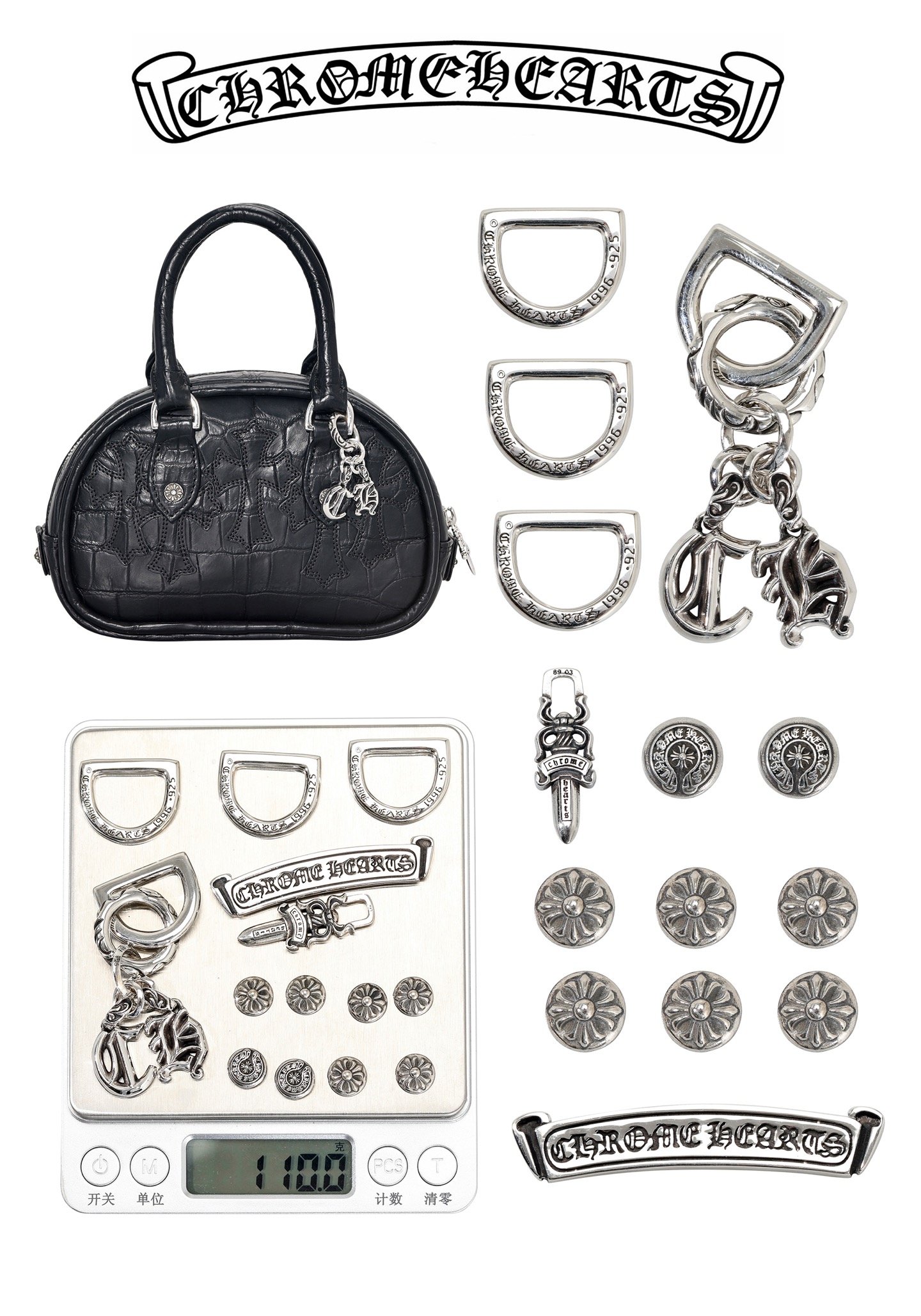 这款包包是AAAAA 1:1 质量 (非常棒). 使用了和原版一模一样的材料. 商标部分也保持了和克罗心/Chrome Hearts一样. 图片拍摄是实物包包拍摄, 您所收到的实物保证和我们图片一模一样.