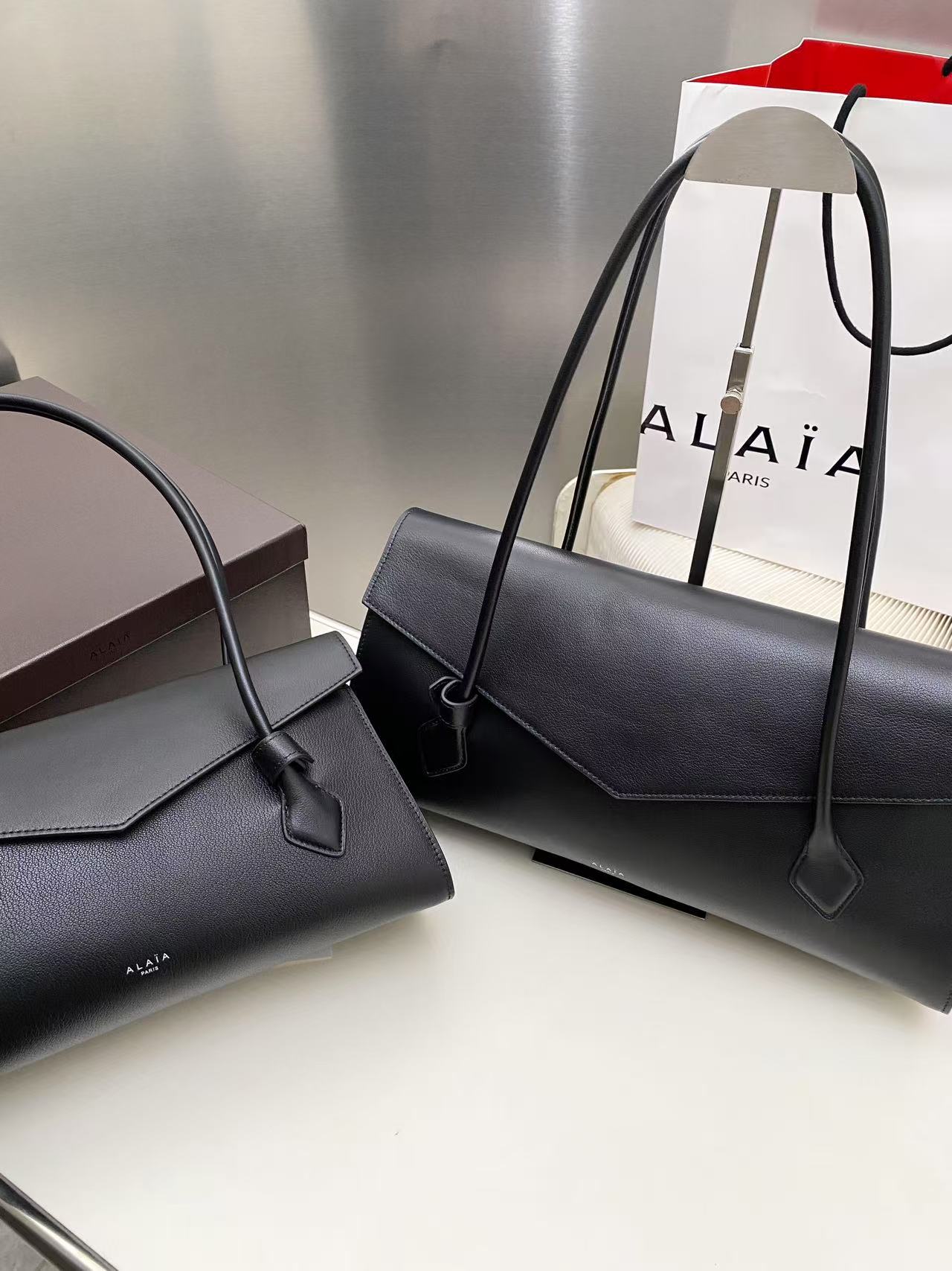 这款包包是AAAAA 1:1 质量 (非常棒). 使用了和原版一模一样的材料. 商标部分也保持了和Alaia一样. 图片拍摄是实物包包拍摄, 您所收到的实物保证和我们图片一模一样.