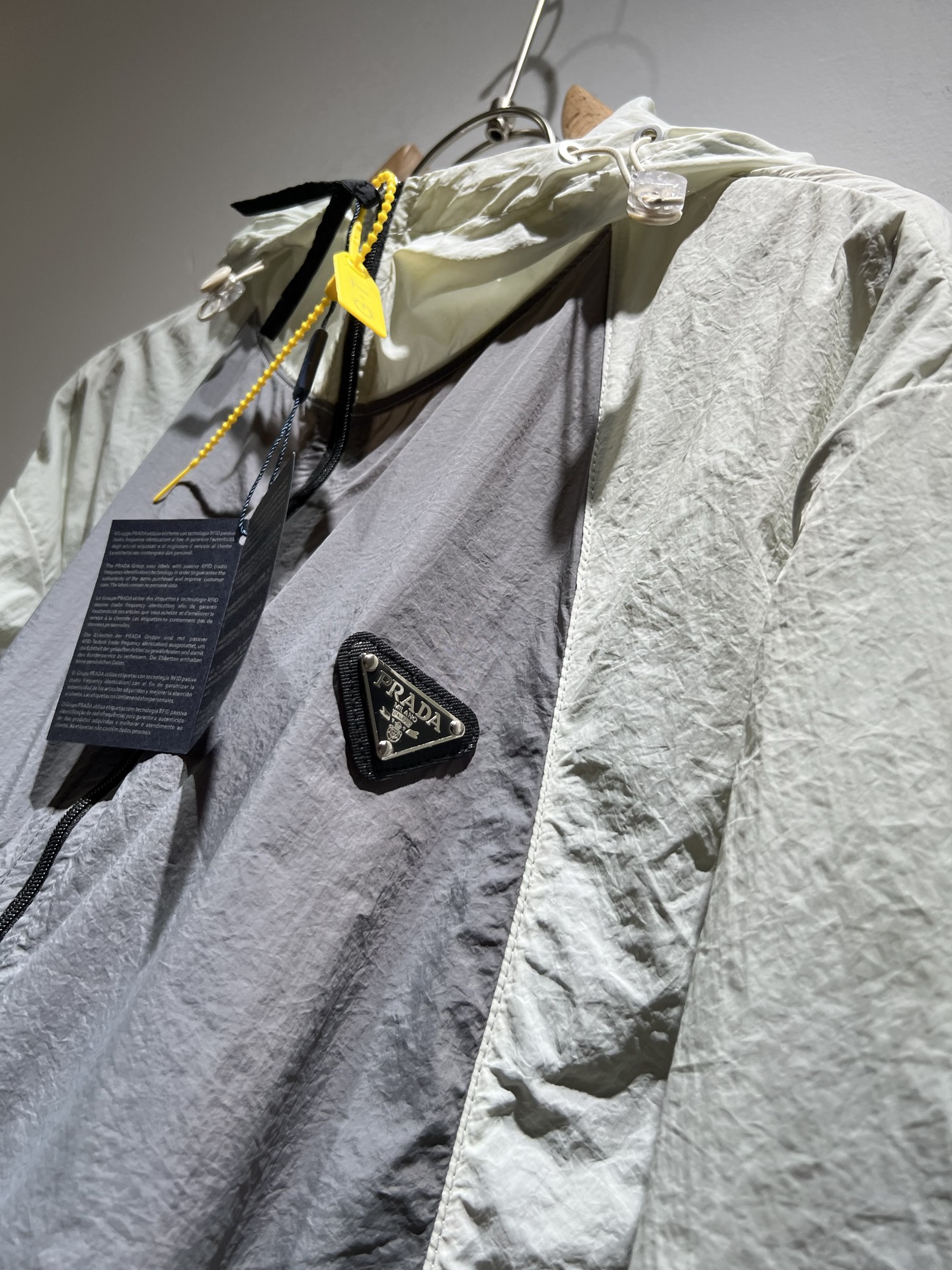 这款衣服是AAAAA 1:1 质量 (非常棒). 使用了和原版一模一样的材料. 商标部分也保持了和普拉达/Prada一样. 图片拍摄是实物衣服拍摄, 您所收到的实物保证和我们图片一模一样.