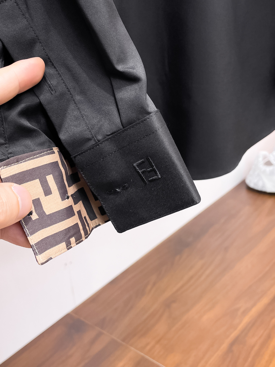 这款衣服是AAAAA 1:1 质量 (非常棒). 使用了和原版一模一样的材料. 商标部分也保持了和芬迪/Fendi一样. 图片拍摄是实物衣服拍摄, 您所收到的实物保证和我们图片一模一样.