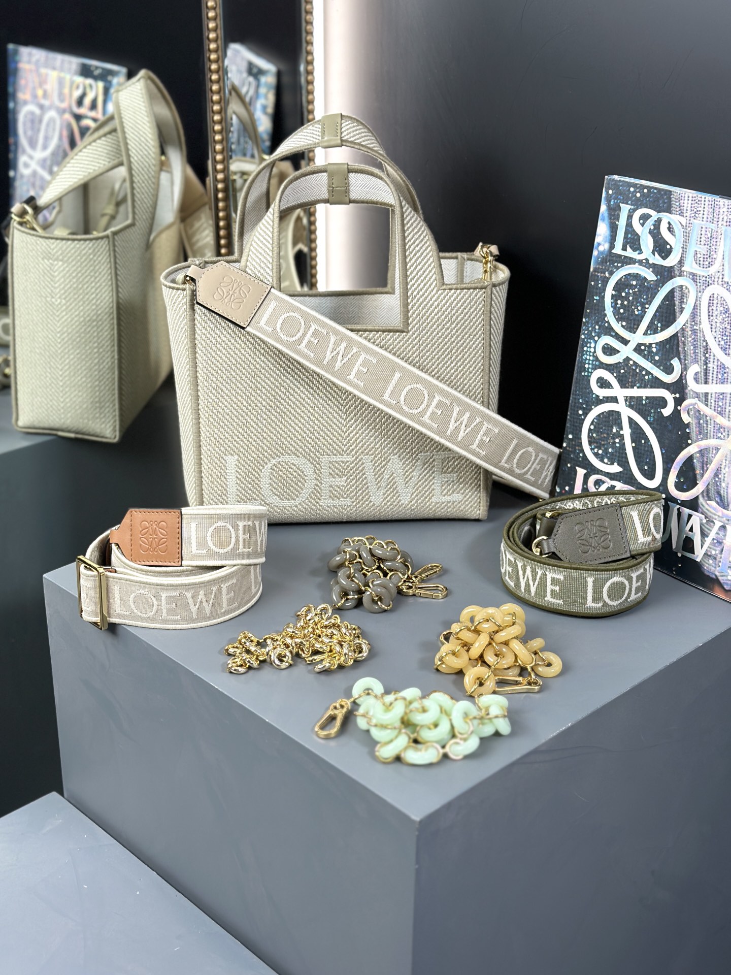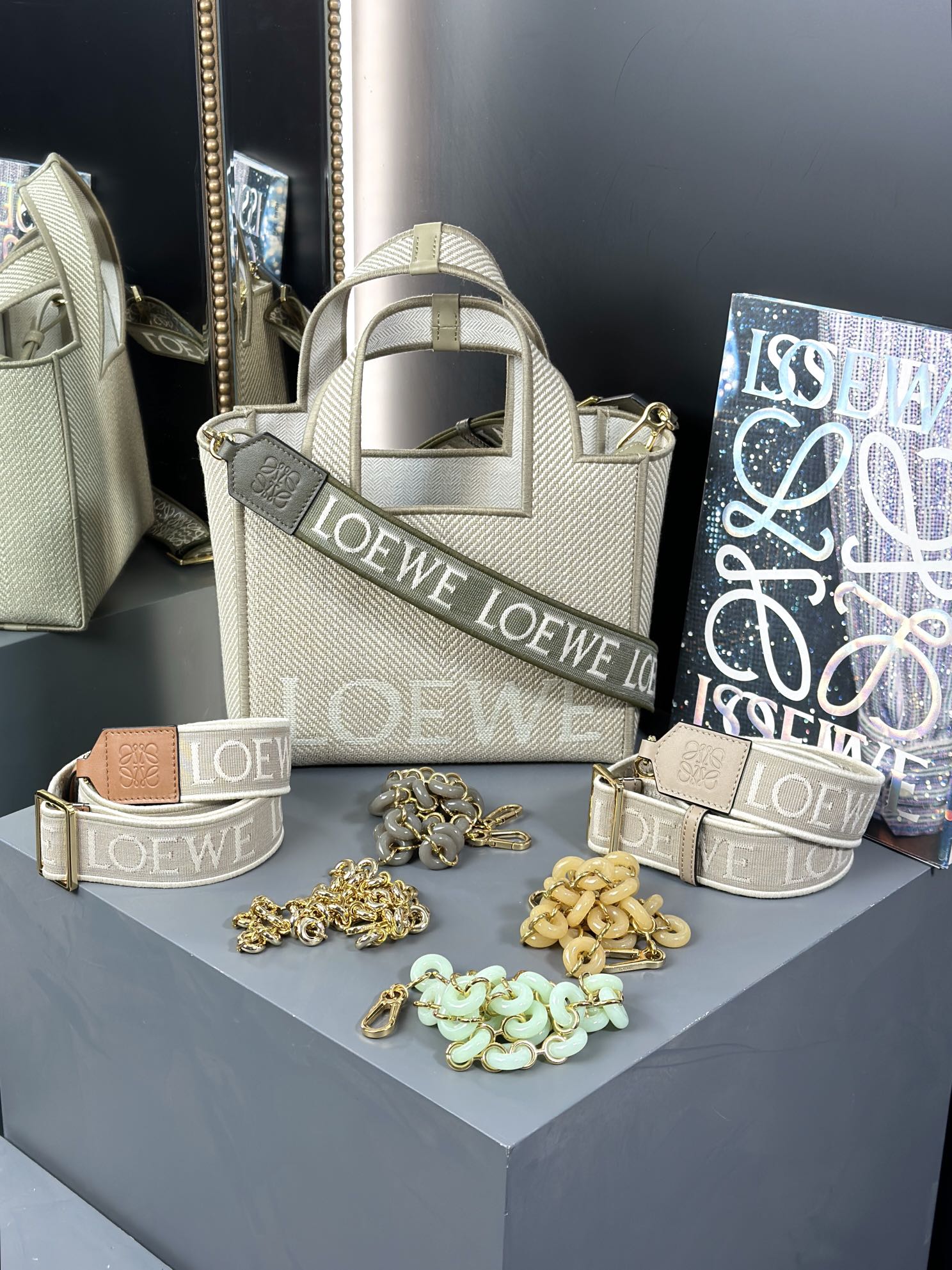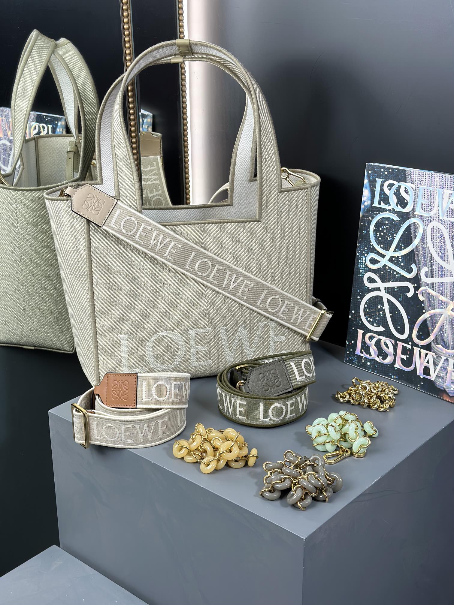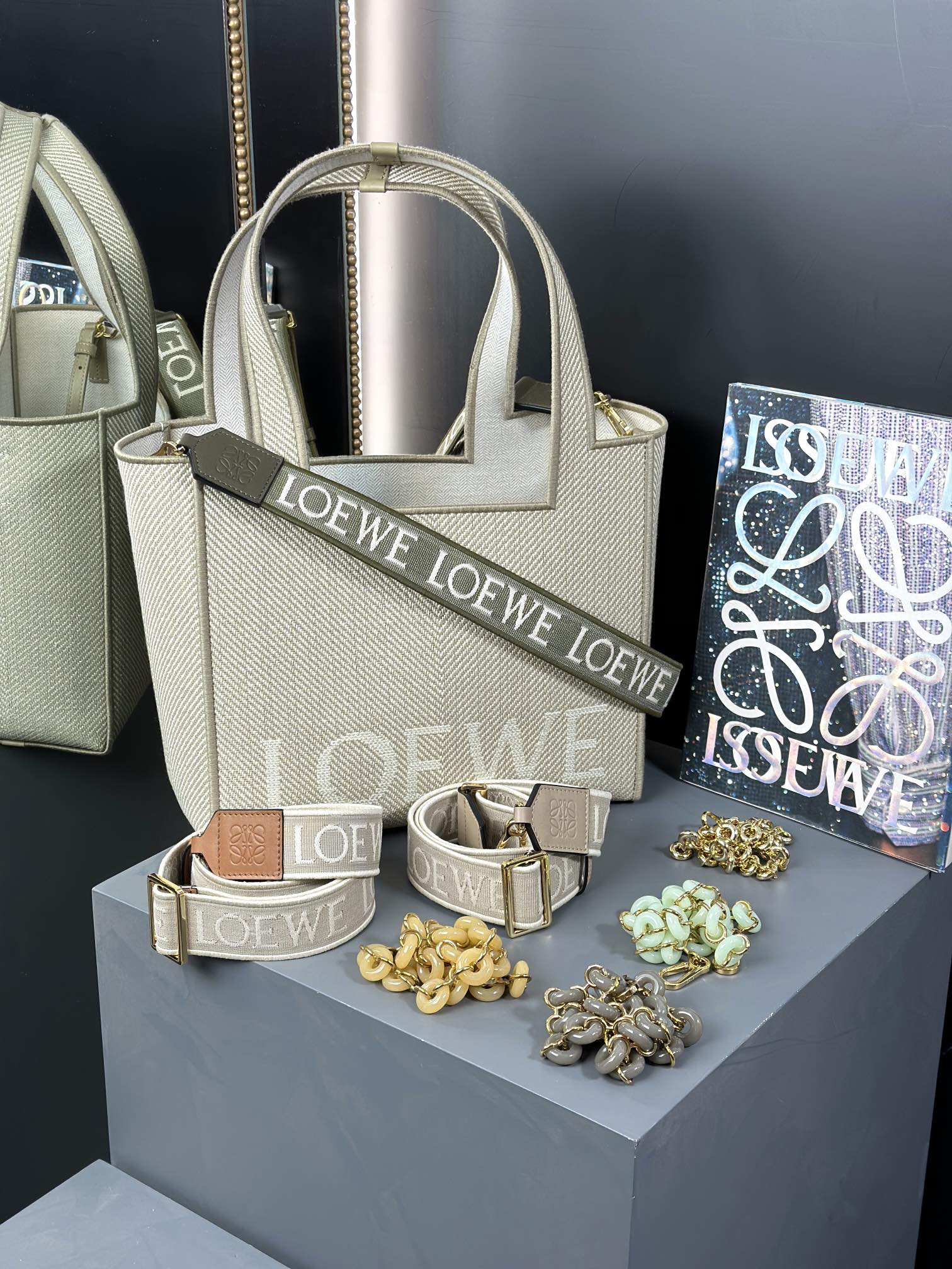 这款包包是AAAAA 1:1 质量 (非常棒). 使用了和原版一模一样的材料. 商标部分也保持了和罗意威/Loewe一样. 图片拍摄是实物包包拍摄, 您所收到的实物保证和我们图片一模一样.