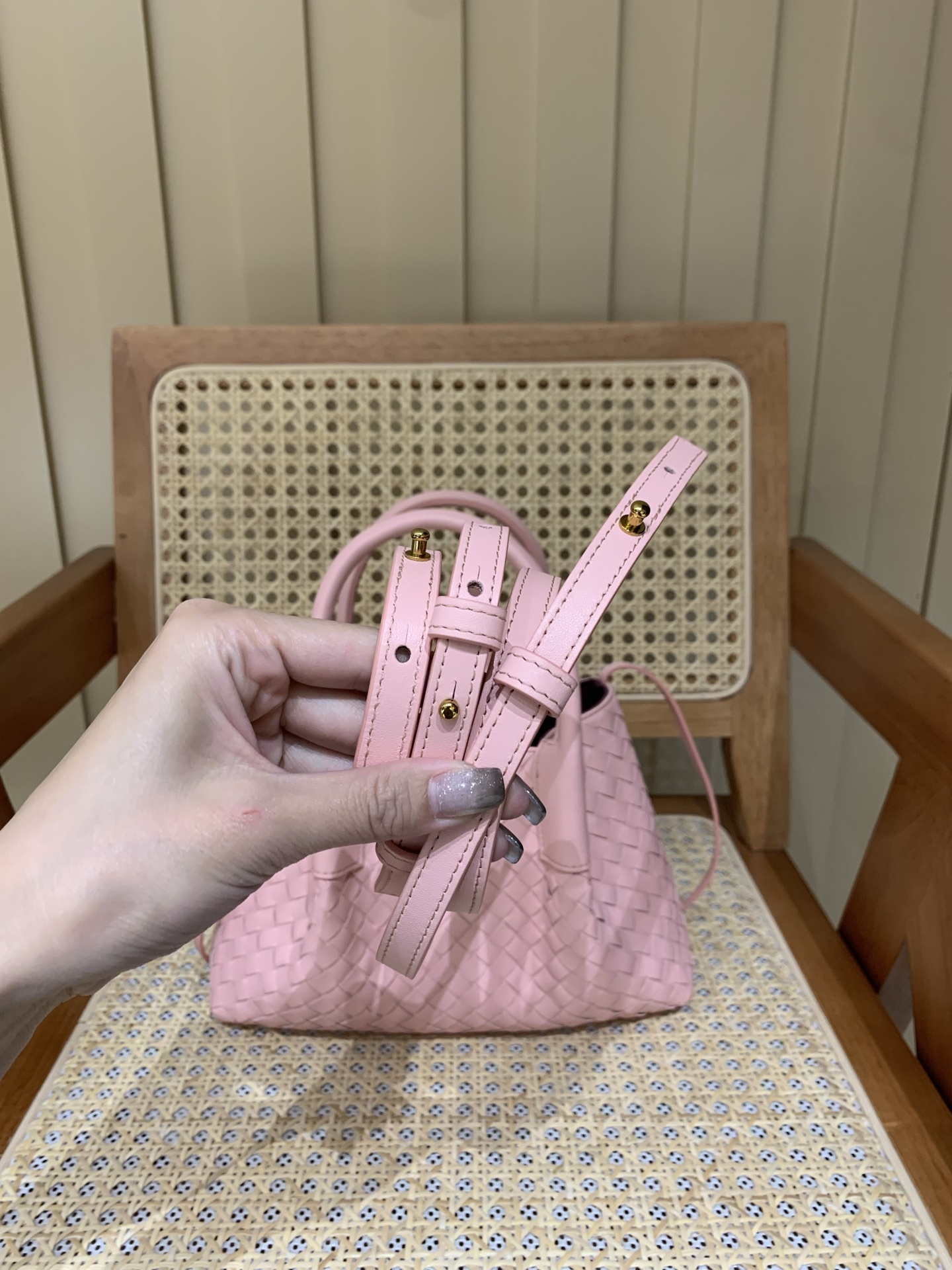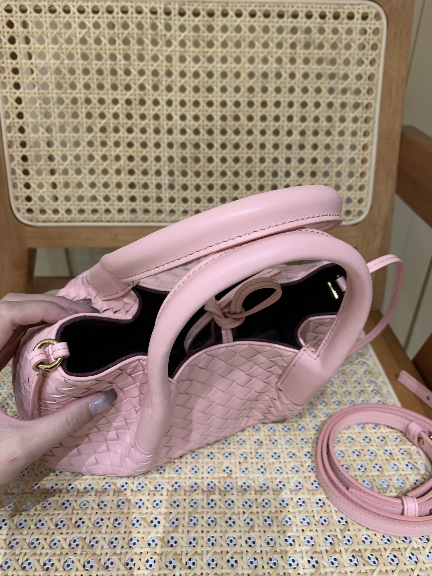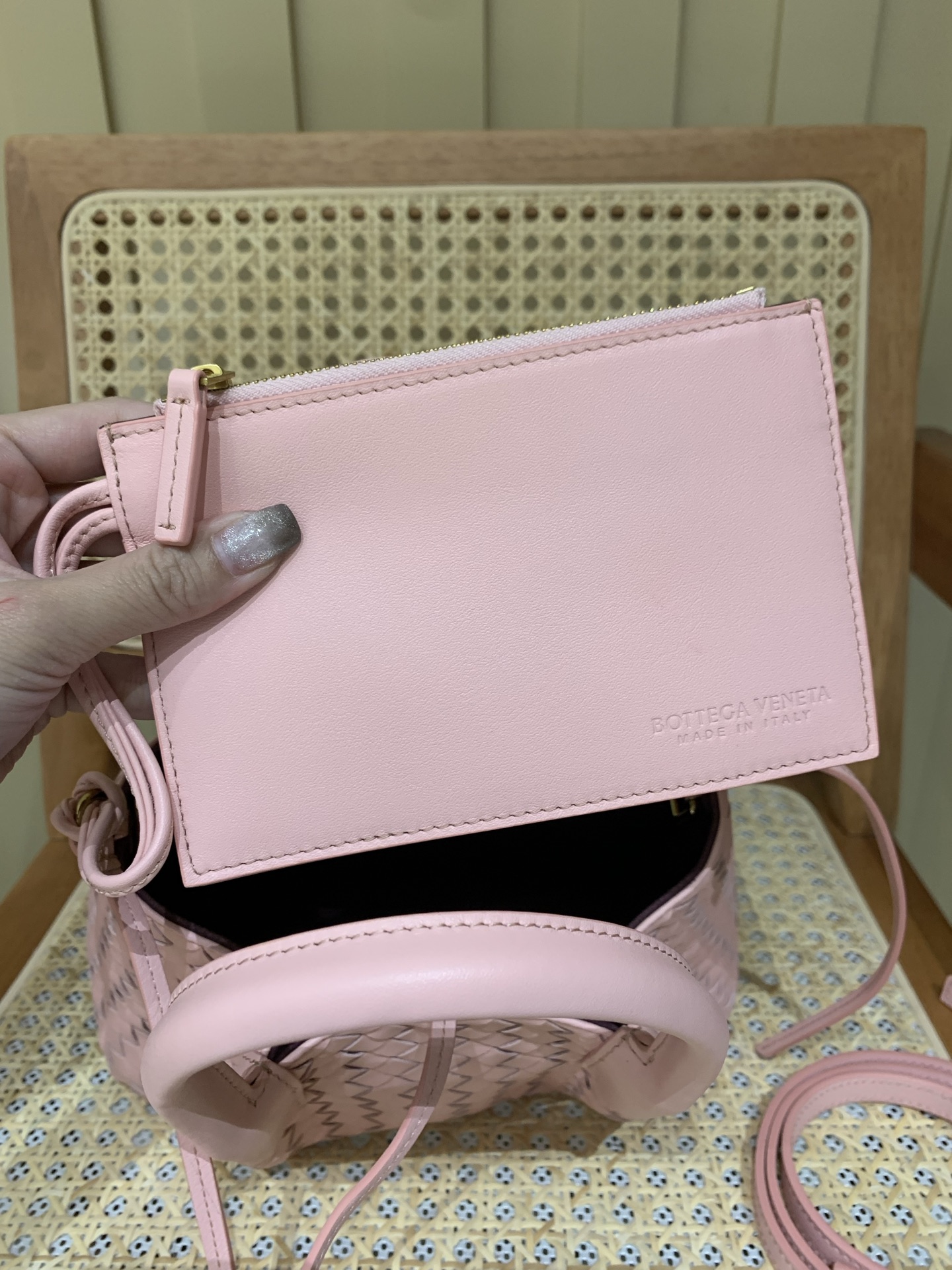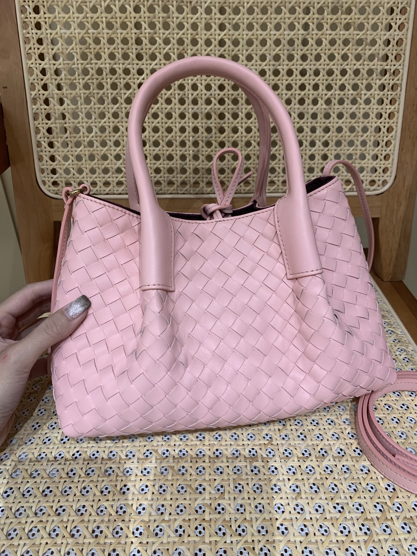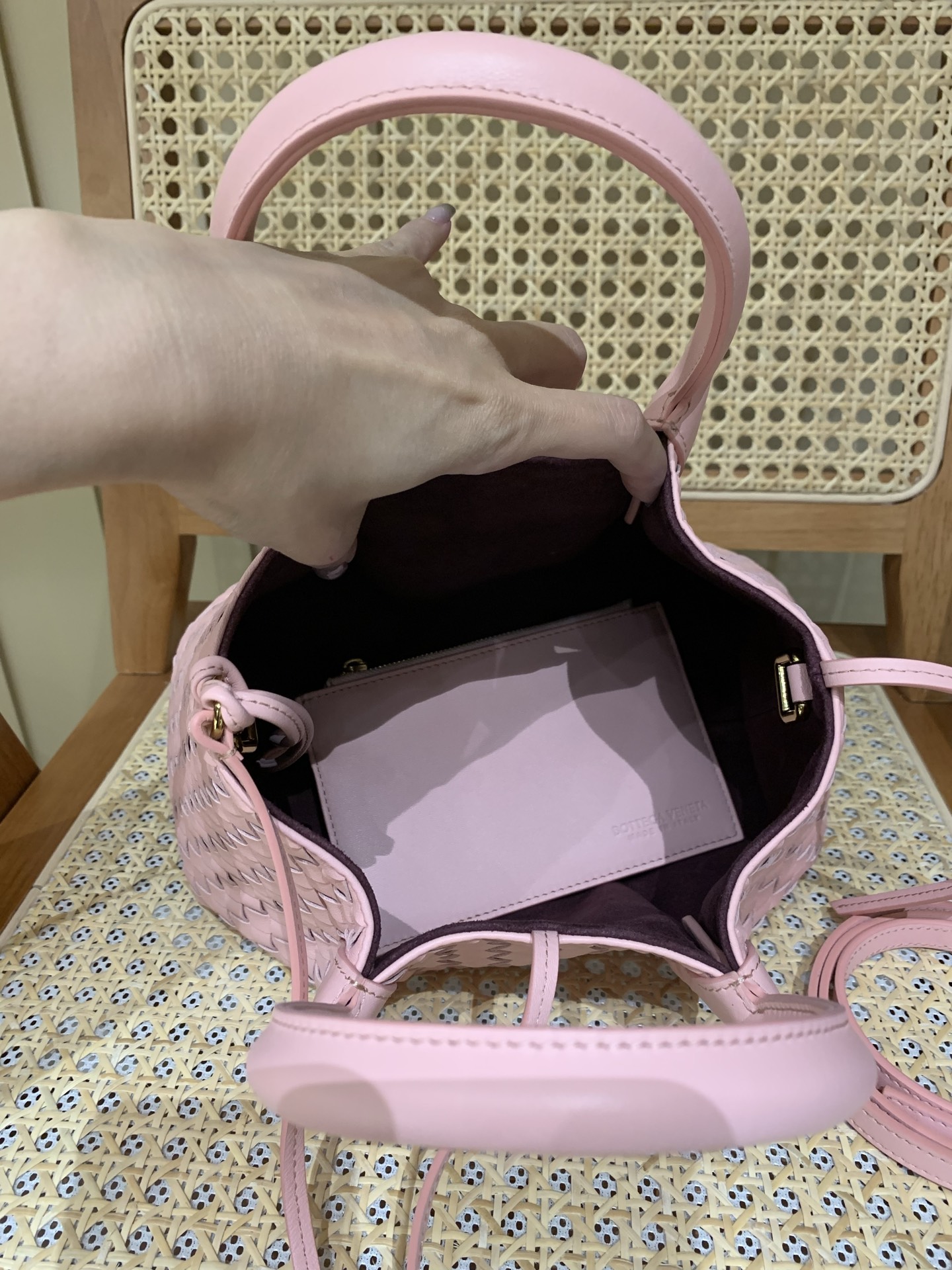 这款包包是AAAAA 1:1 质量 (非常棒). 使用了和原版一模一样的材料. 商标部分也保持了和葆蝶家/Bottega Veneta一样. 图片拍摄是实物包包拍摄, 您所收到的实物保证和我们图片一模一样.