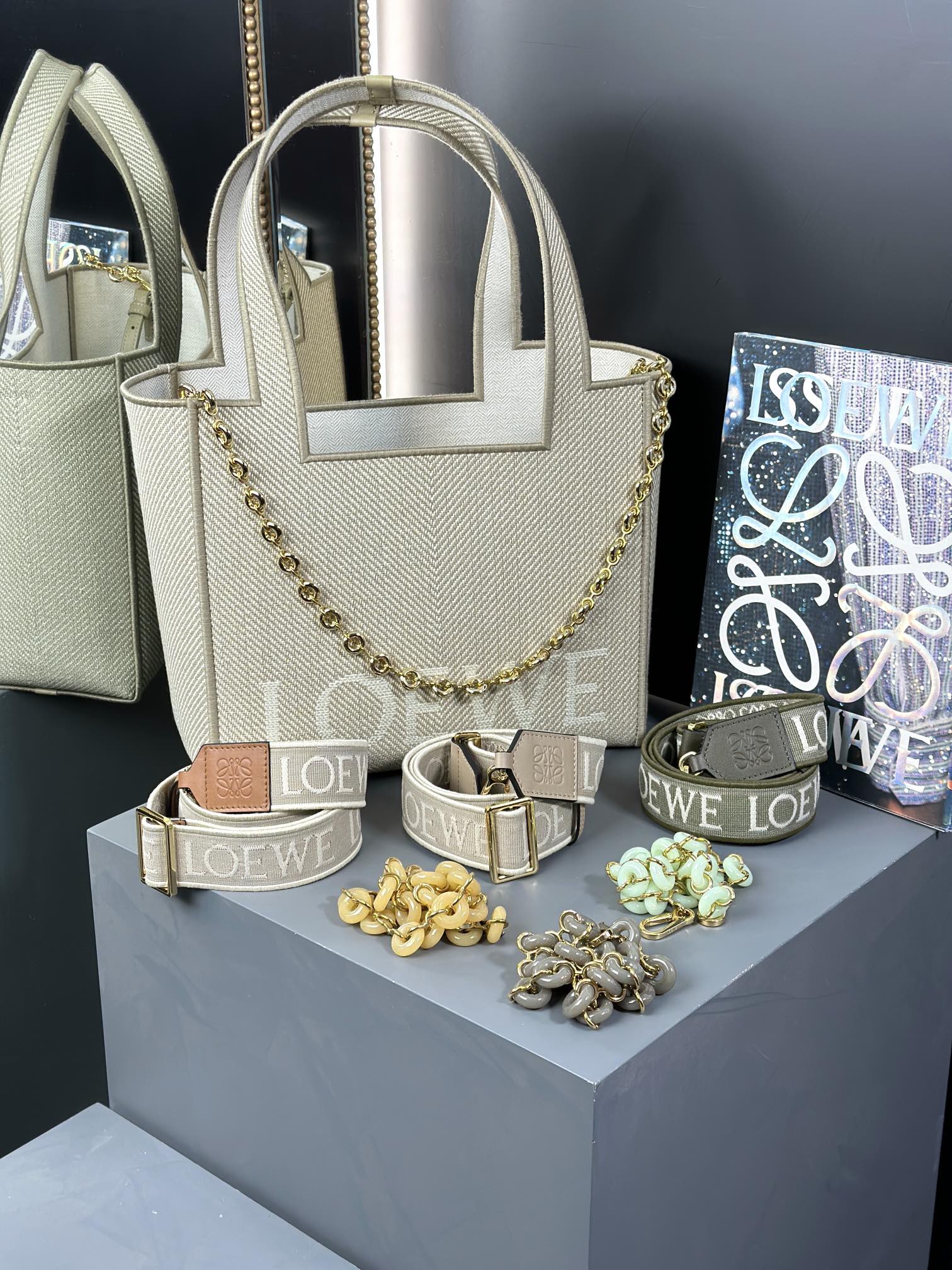 这款包包是AAAAA 1:1 质量 (非常棒). 使用了和原版一模一样的材料. 商标部分也保持了和罗意威/Loewe一样. 图片拍摄是实物包包拍摄, 您所收到的实物保证和我们图片一模一样.