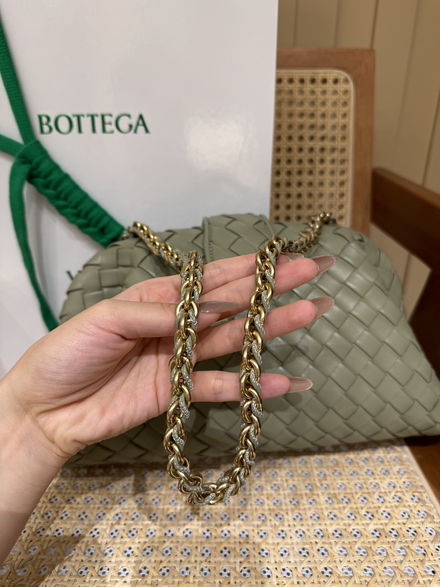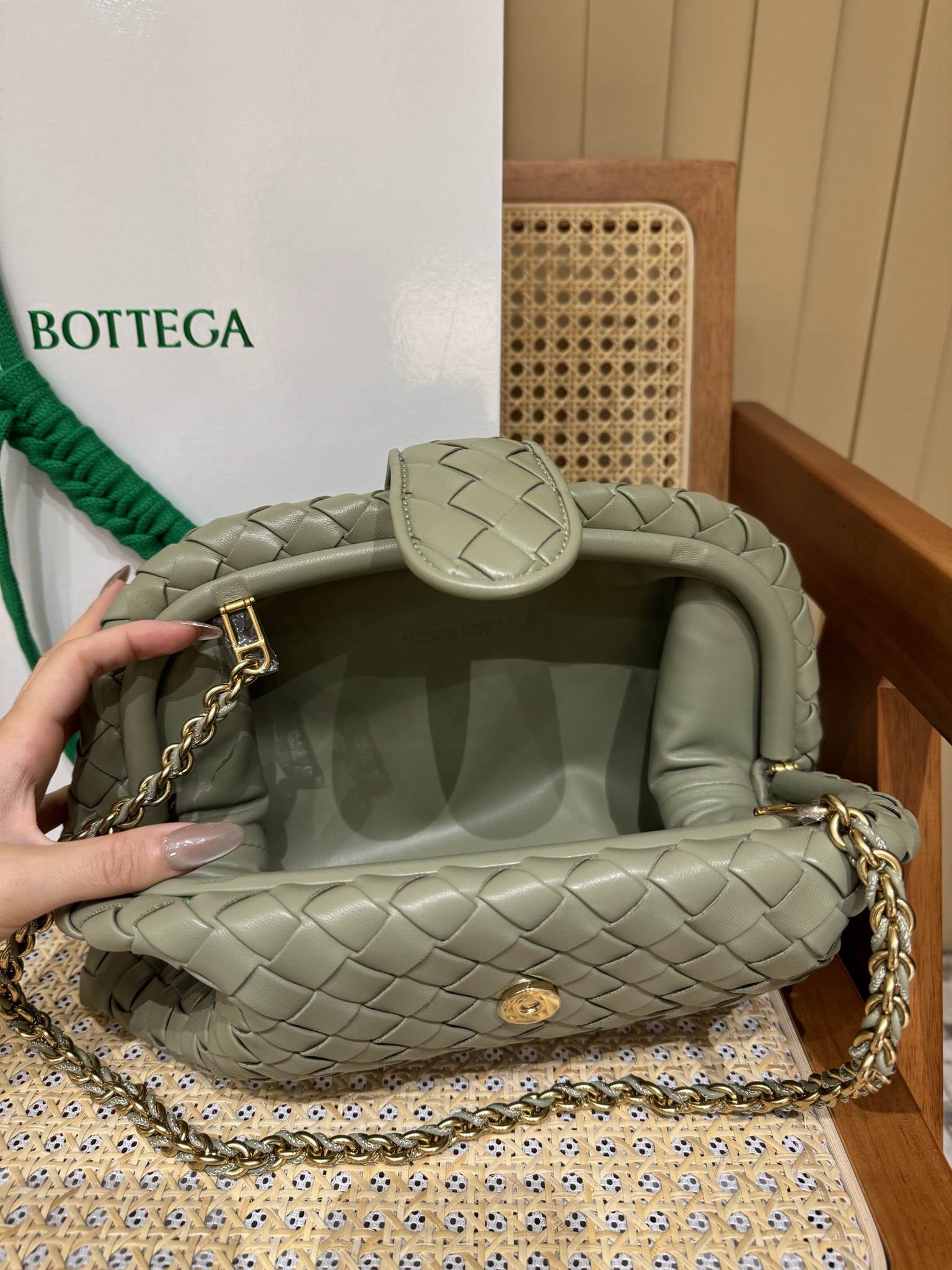 这款包包是AAAAA 1:1 质量 (非常棒). 使用了和原版一模一样的材料. 商标部分也保持了和葆蝶家/Bottega Veneta一样. 图片拍摄是实物包包拍摄, 您所收到的实物保证和我们图片一模一样.