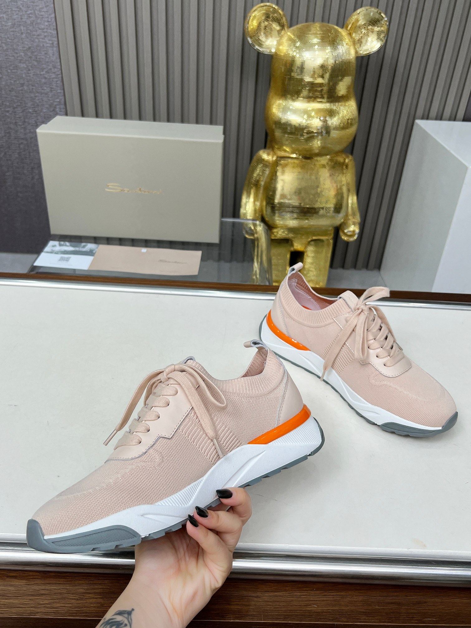 这款鞋子是AAAAA 1:1 质量 (非常棒). 使用了和原版一模一样的材料. 商标部分也保持了和Santoni一样. 图片拍摄是实物鞋子拍摄, 您所收到的实物保证和我们图片一模一样.