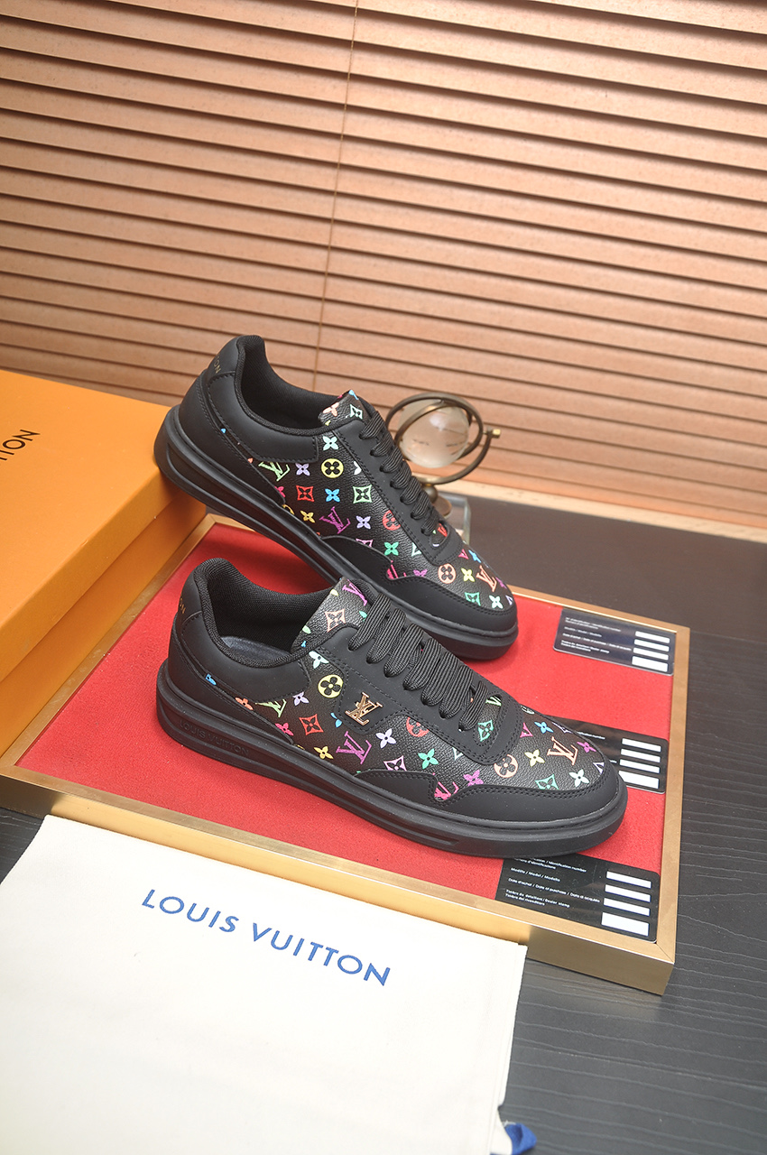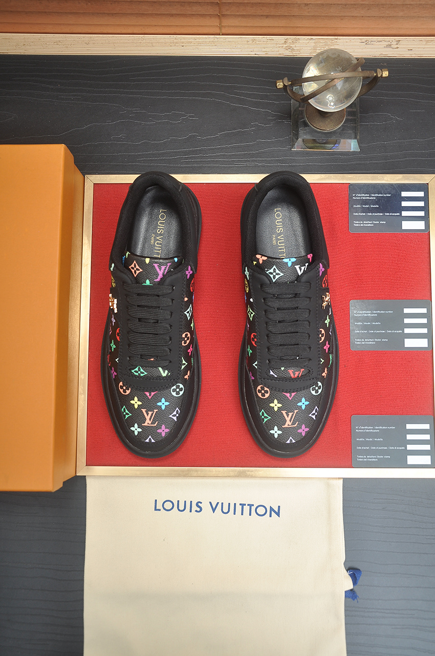 这款鞋子是AAAAA 1:1 质量 (非常棒). 使用了和原版一模一样的材料. 商标部分也保持了和路易威登/Louis Vuitton一样. 图片拍摄是实物鞋子拍摄, 您所收到的实物保证和我们图片一模一样.