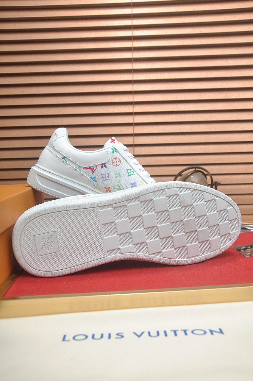 这款鞋子是AAAAA 1:1 质量 (非常棒). 使用了和原版一模一样的材料. 商标部分也保持了和路易威登/Louis Vuitton一样. 图片拍摄是实物鞋子拍摄, 您所收到的实物保证和我们图片一模一样.
