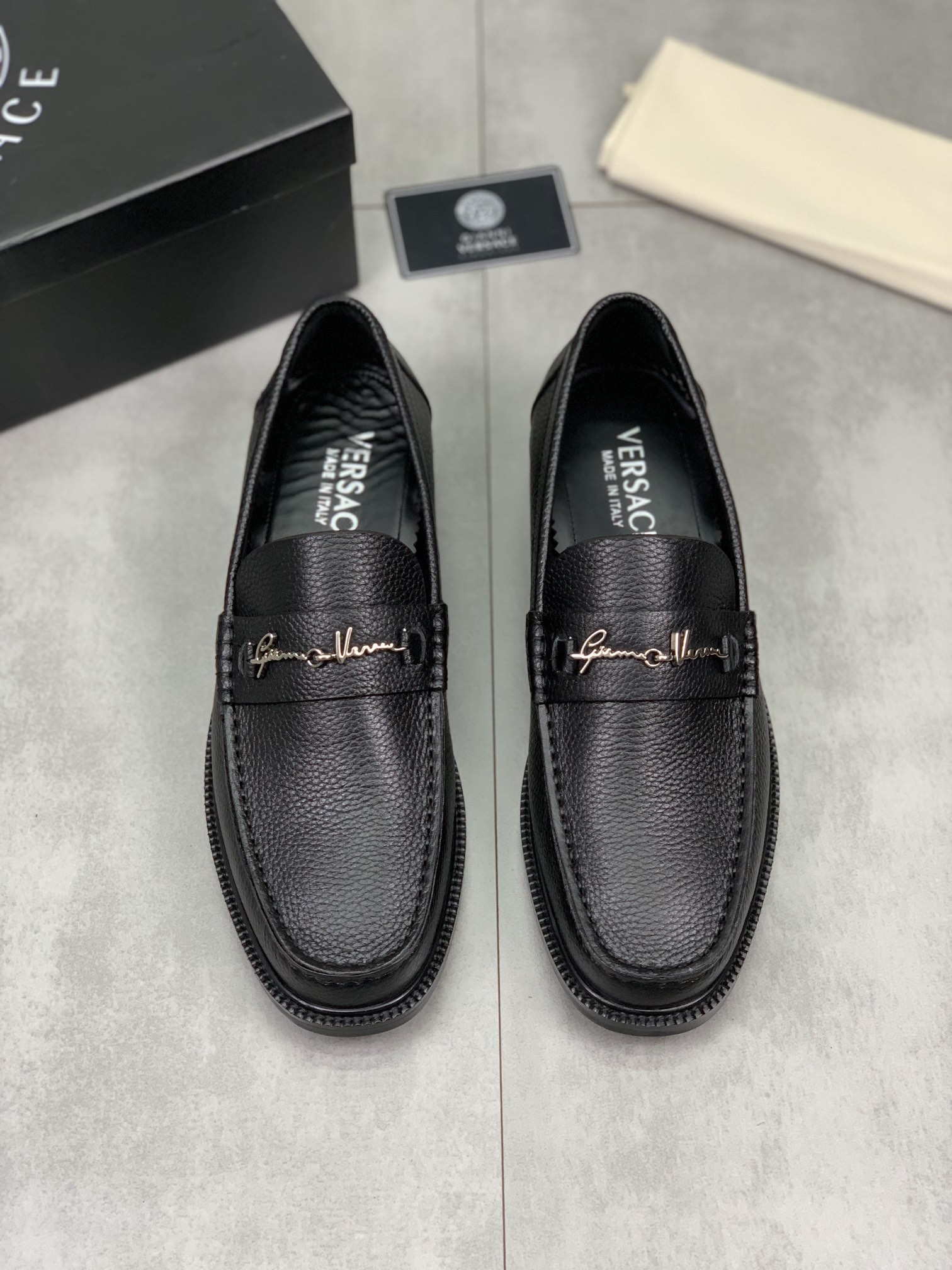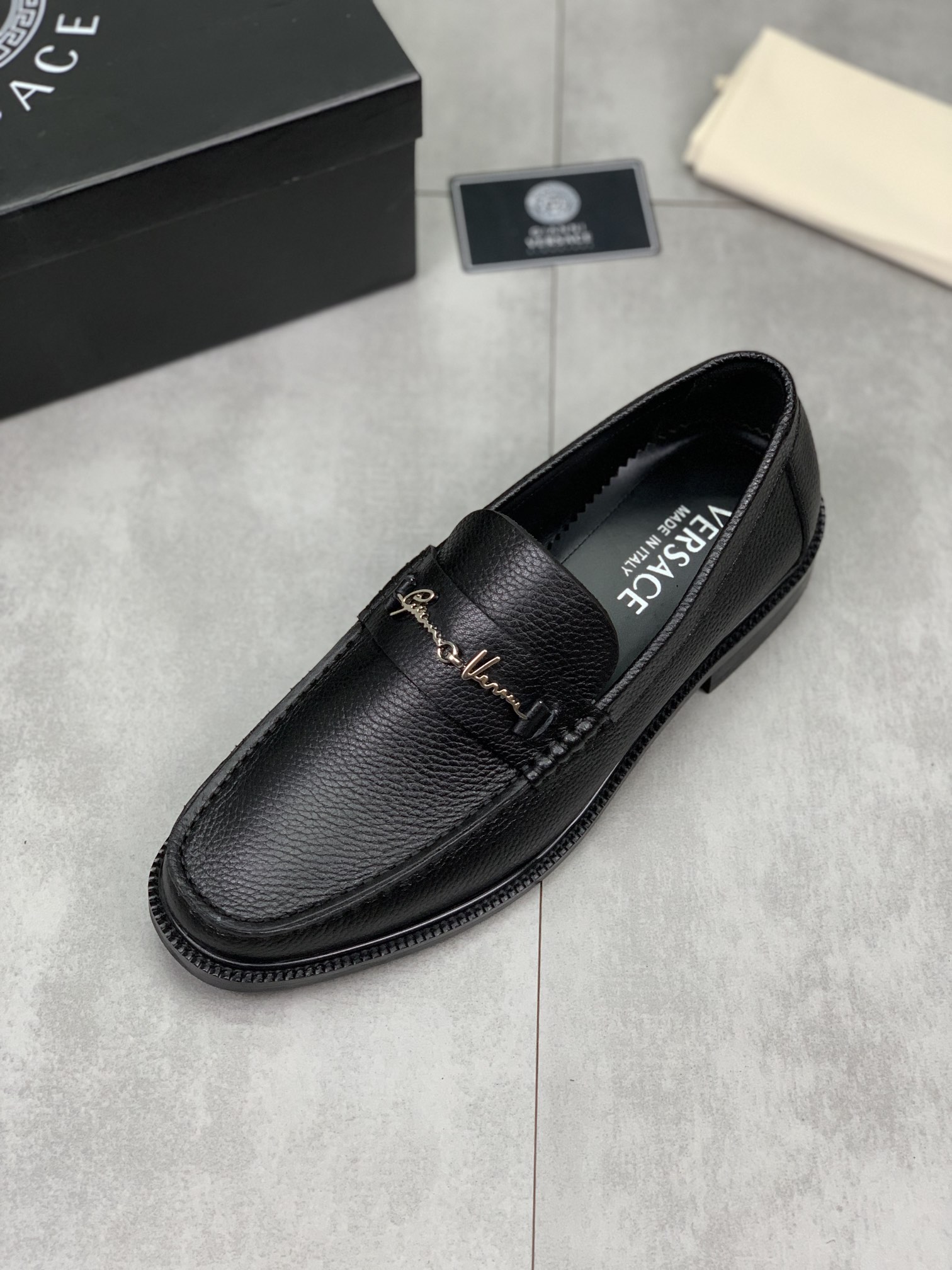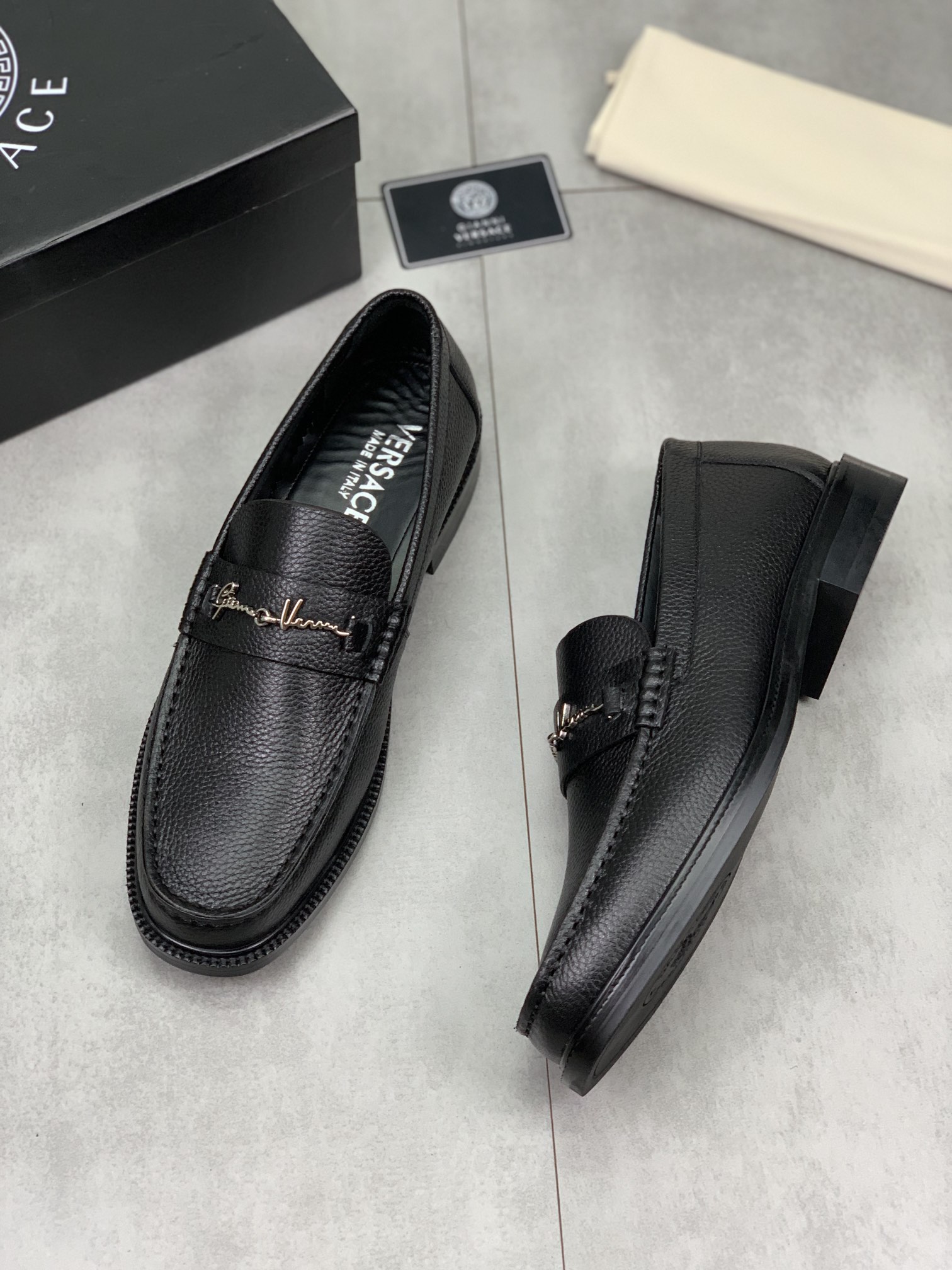 这款鞋子是AAAAA 1:1 质量 (非常棒). 使用了和原版一模一样的材料. 商标部分也保持了和范思哲/Versace一样. 图片拍摄是实物鞋子拍摄, 您所收到的实物保证和我们图片一模一样.