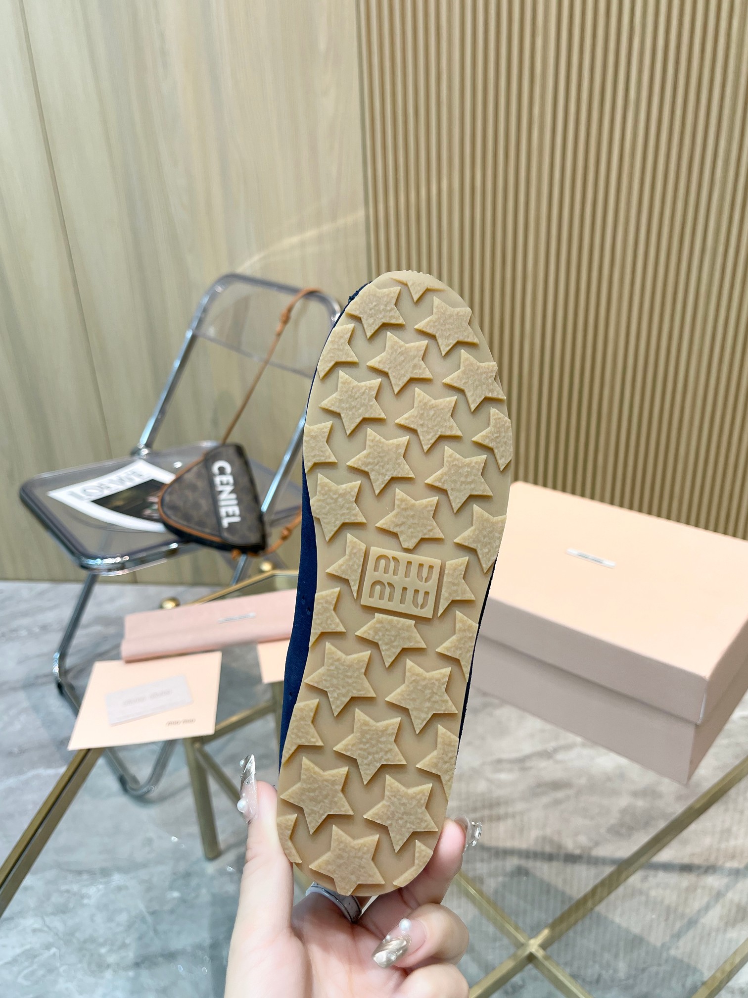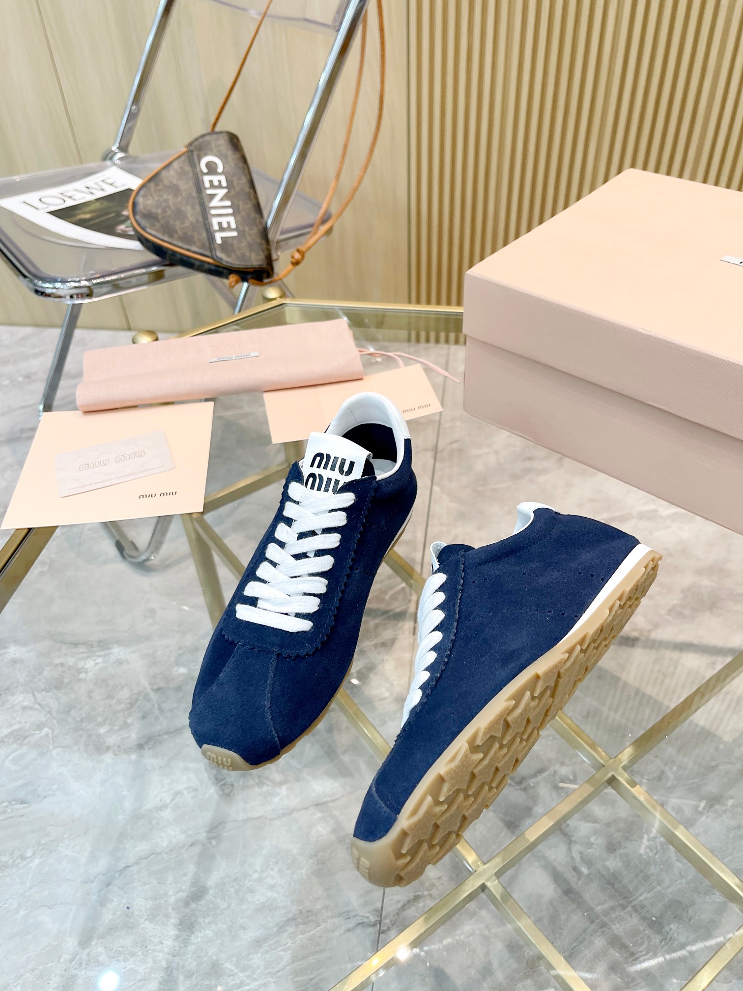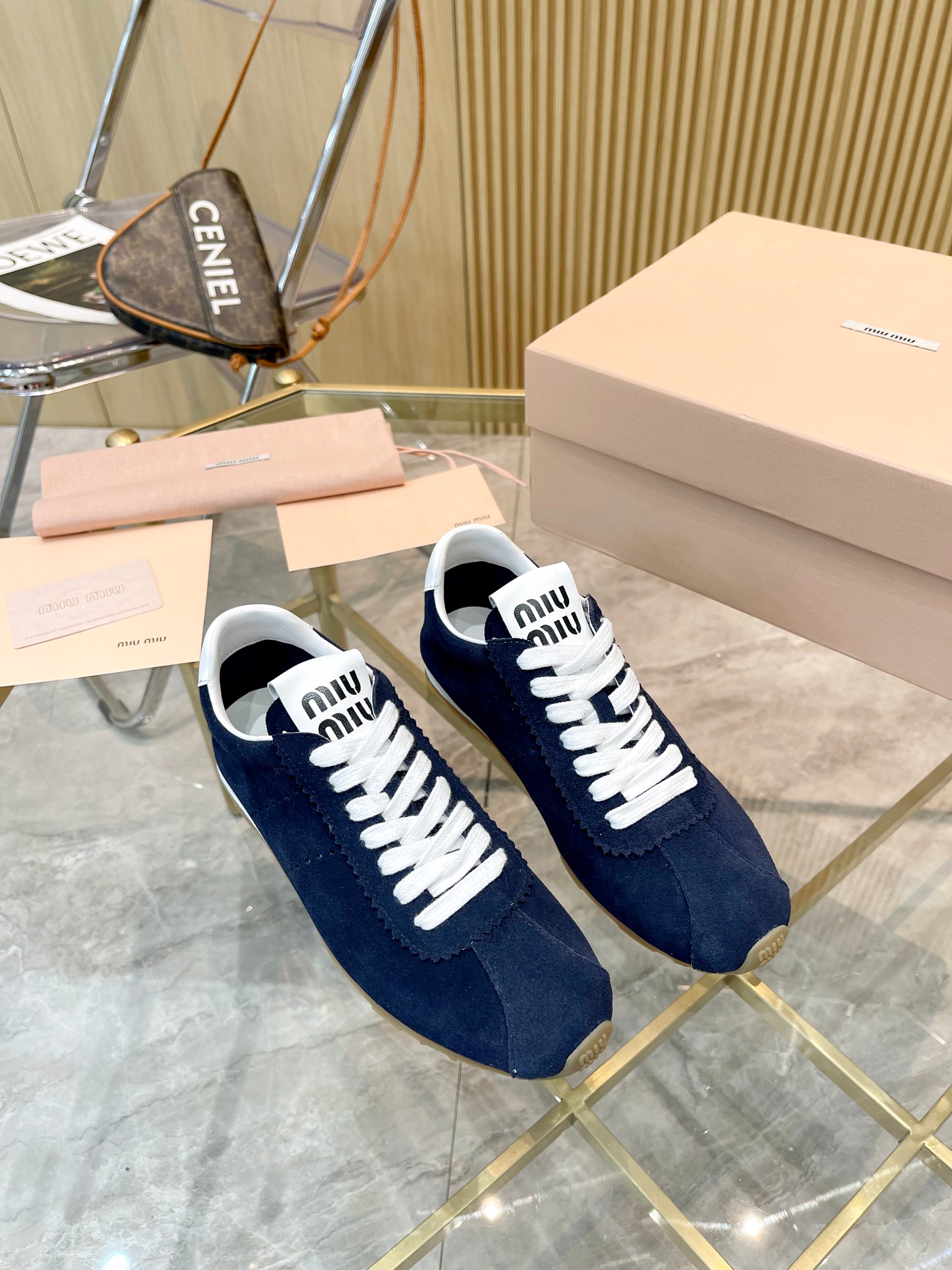 这款鞋子是AAAAA 1:1 质量 (非常棒). 使用了和原版一模一样的材料. 商标部分也保持了和缪缪/Miu Miu一样. 图片拍摄是实物鞋子拍摄, 您所收到的实物保证和我们图片一模一样.