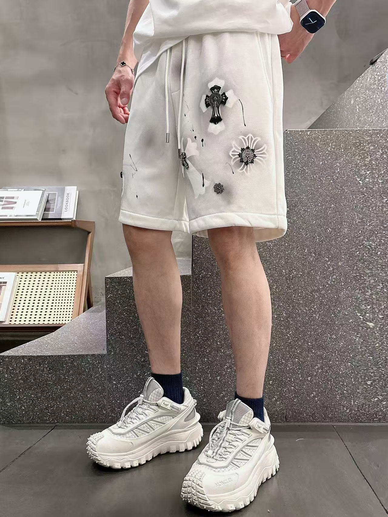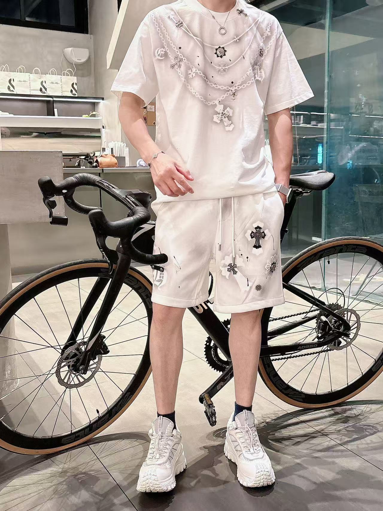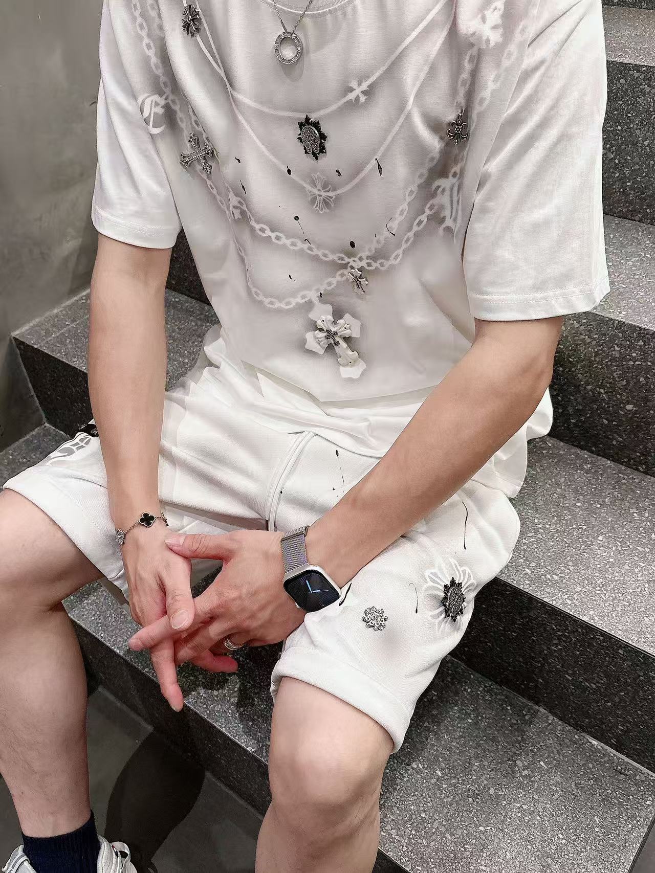 这款衣服是AAAAA 1:1 质量 (非常棒). 使用了和原版一模一样的材料. 商标部分也保持了和克罗心/Chrome Hearts一样. 图片拍摄是实物衣服拍摄, 您所收到的实物保证和我们图片一模一样.