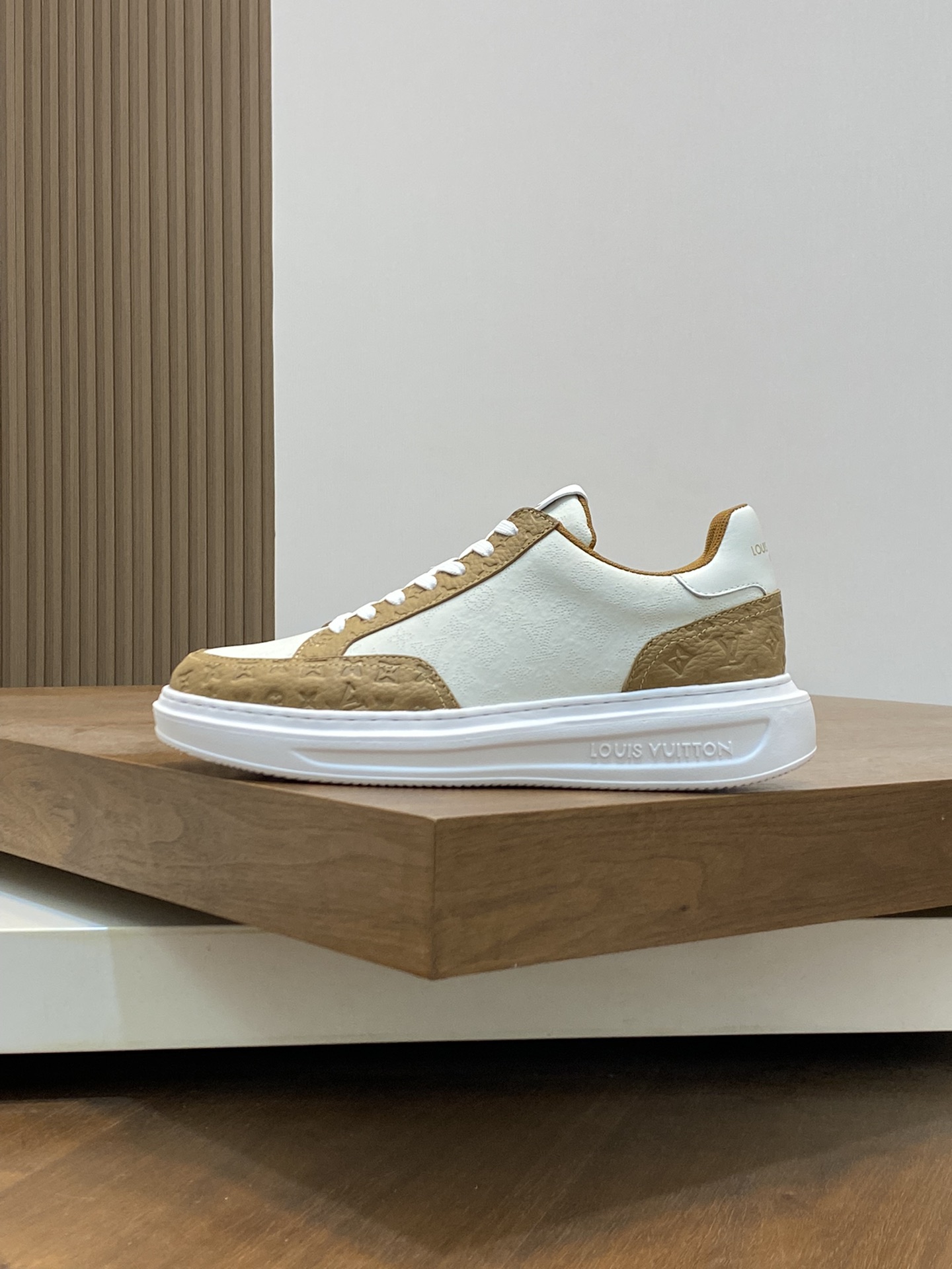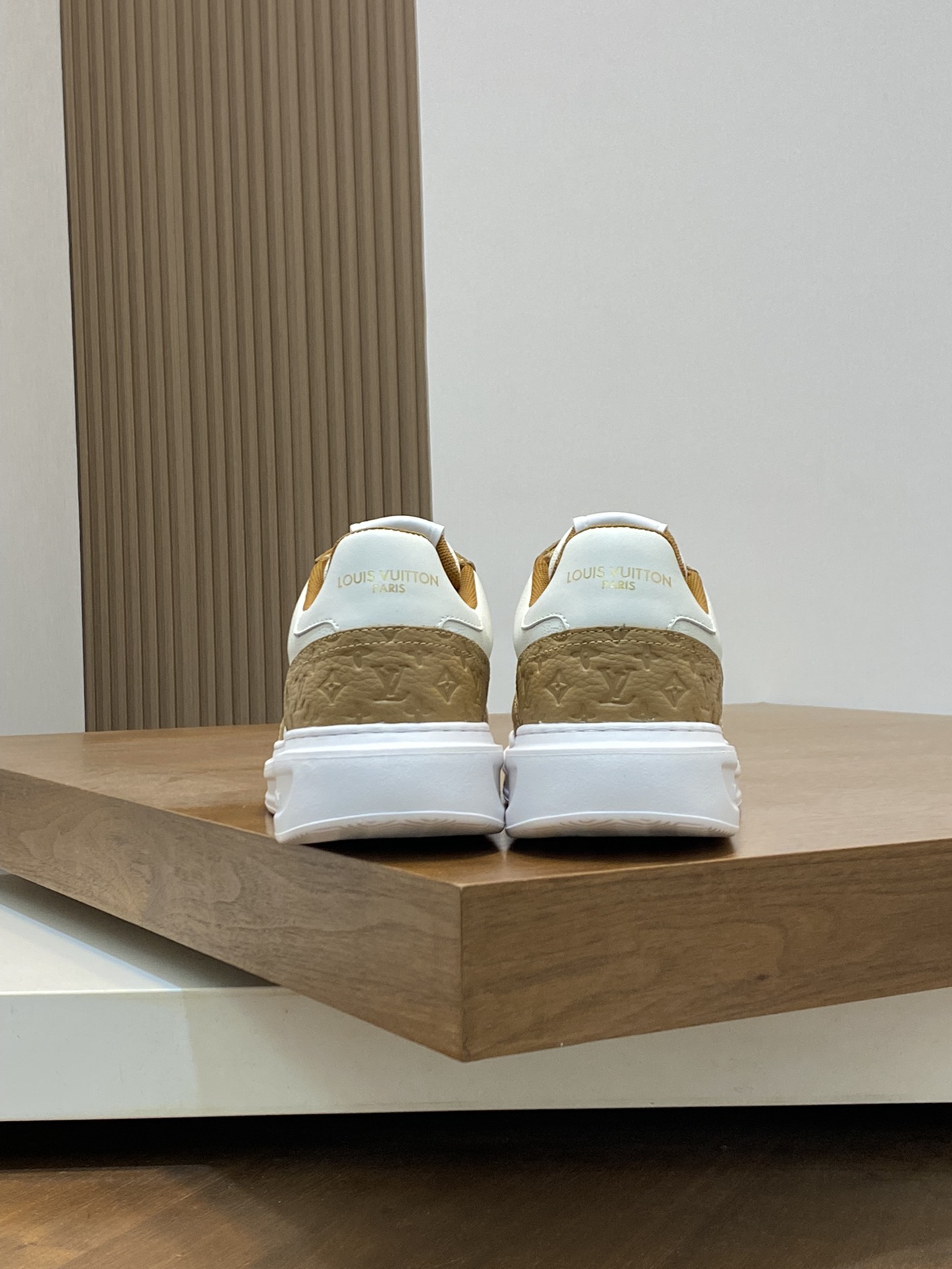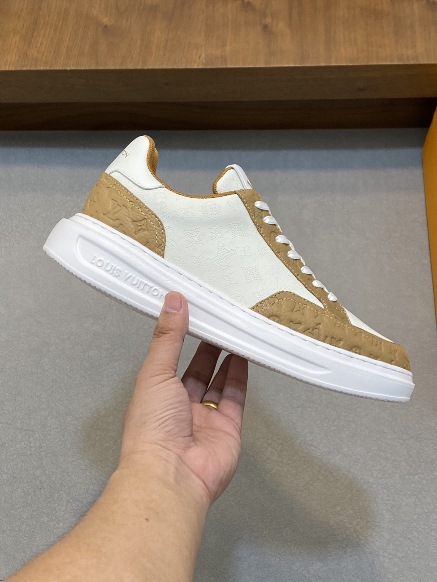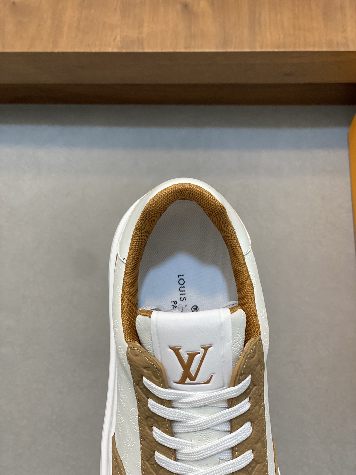 这款鞋子是AAAAA 1:1 质量 (非常棒). 使用了和原版一模一样的材料. 商标部分也保持了和路易威登/Louis Vuitton一样. 图片拍摄是实物鞋子拍摄, 您所收到的实物保证和我们图片一模一样.