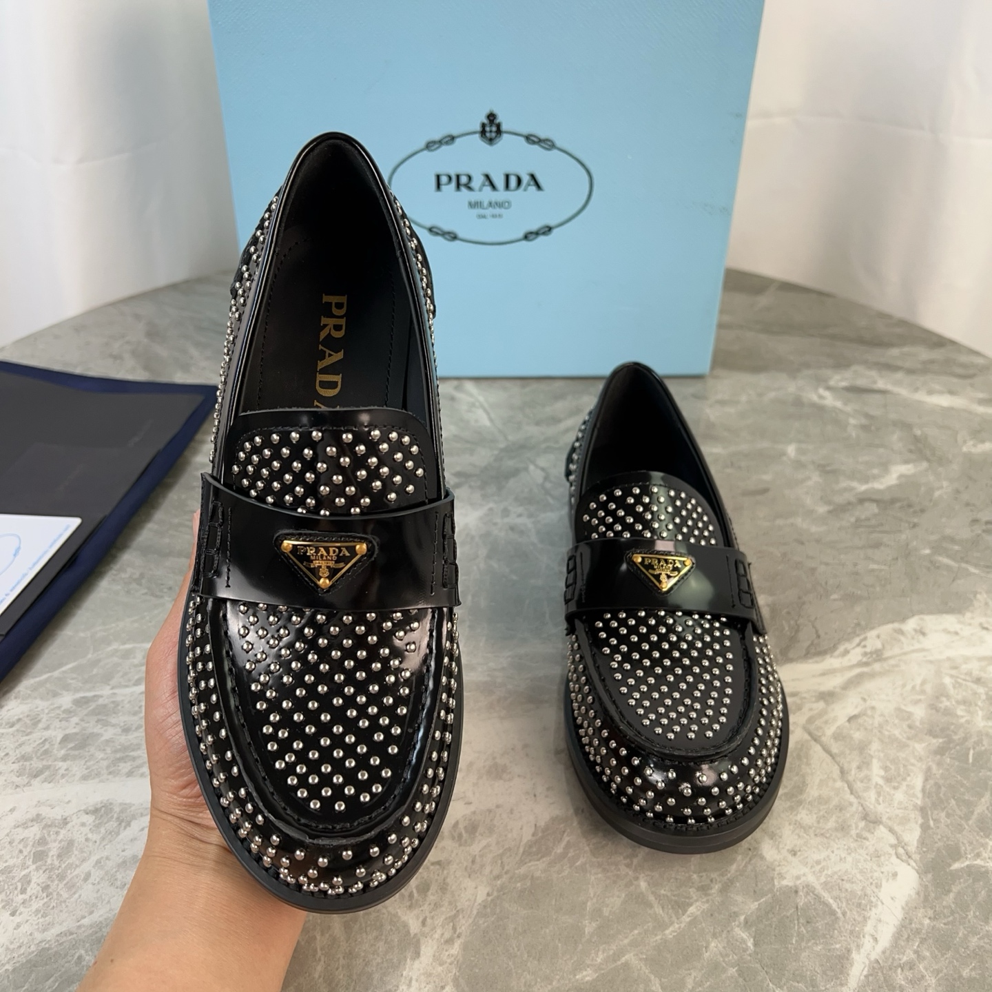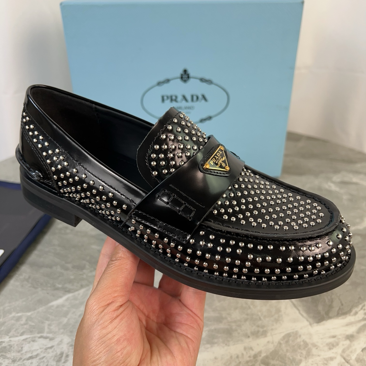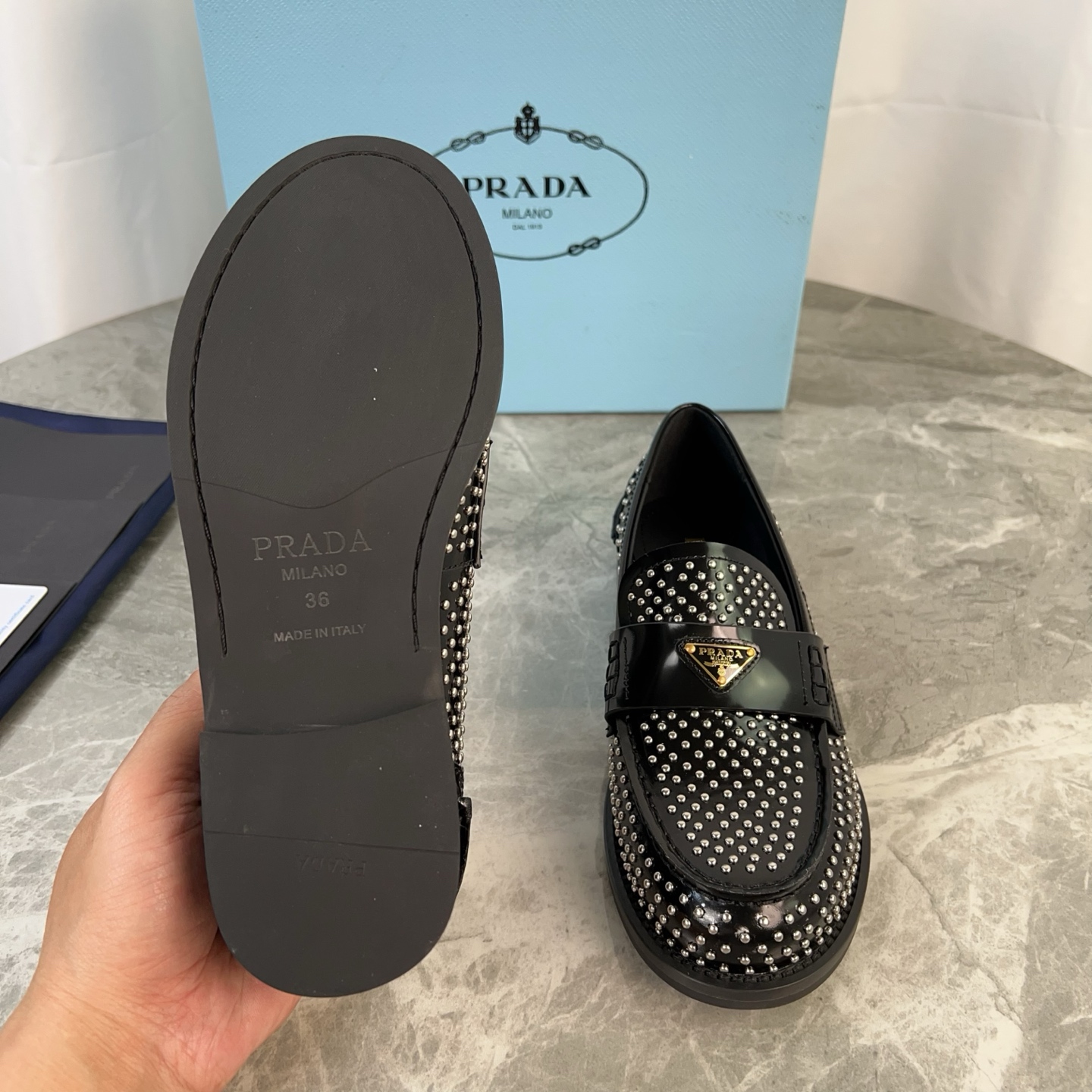 这款鞋子是AAAAA 1:1 质量 (非常棒). 使用了和原版一模一样的材料. 商标部分也保持了和普拉达/Prada一样. 图片拍摄是实物鞋子拍摄, 您所收到的实物保证和我们图片一模一样.