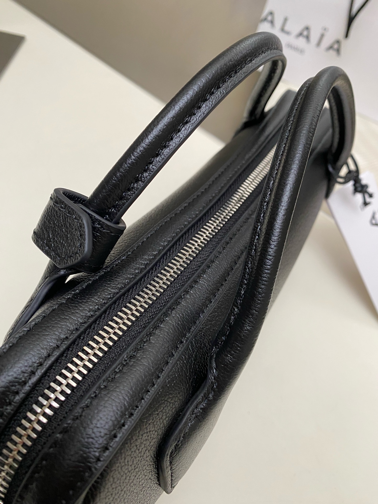 这款包包是AAAAA 1:1 质量 (非常棒). 使用了和原版一模一样的材料. 商标部分也保持了和Alaia一样. 图片拍摄是实物包包拍摄, 您所收到的实物保证和我们图片一模一样.