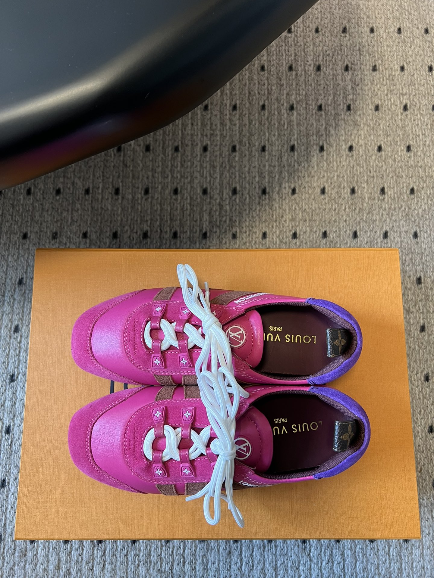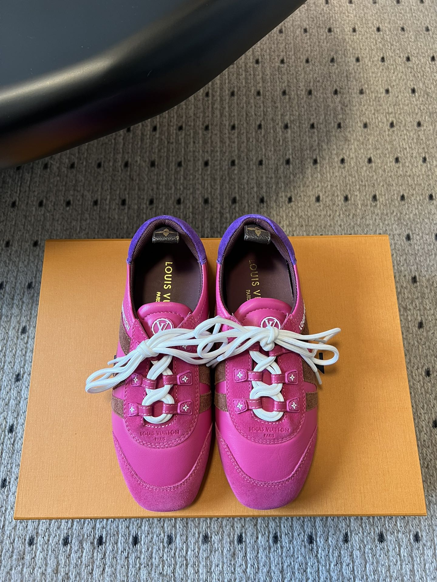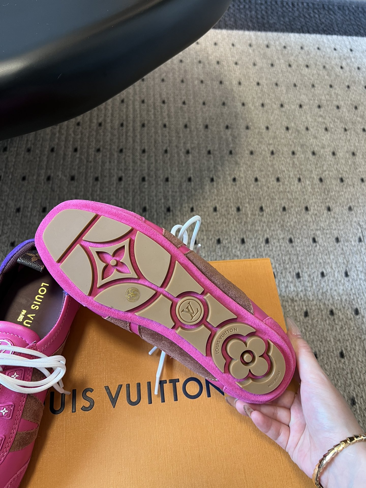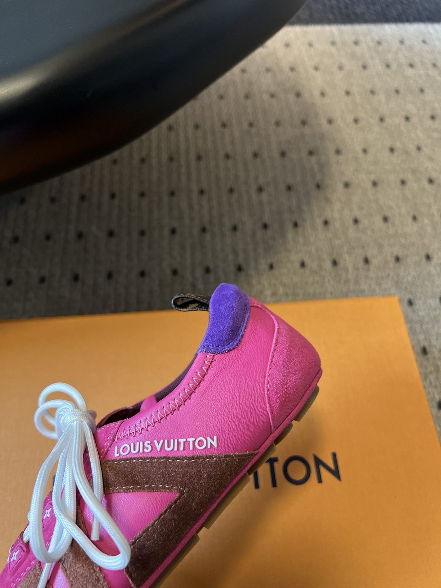 这款鞋子是AAAAA 1:1 质量 (非常棒). 使用了和原版一模一样的材料. 商标部分也保持了和路易威登/Louis Vuitton一样. 图片拍摄是实物鞋子拍摄, 您所收到的实物保证和我们图片一模一样.
