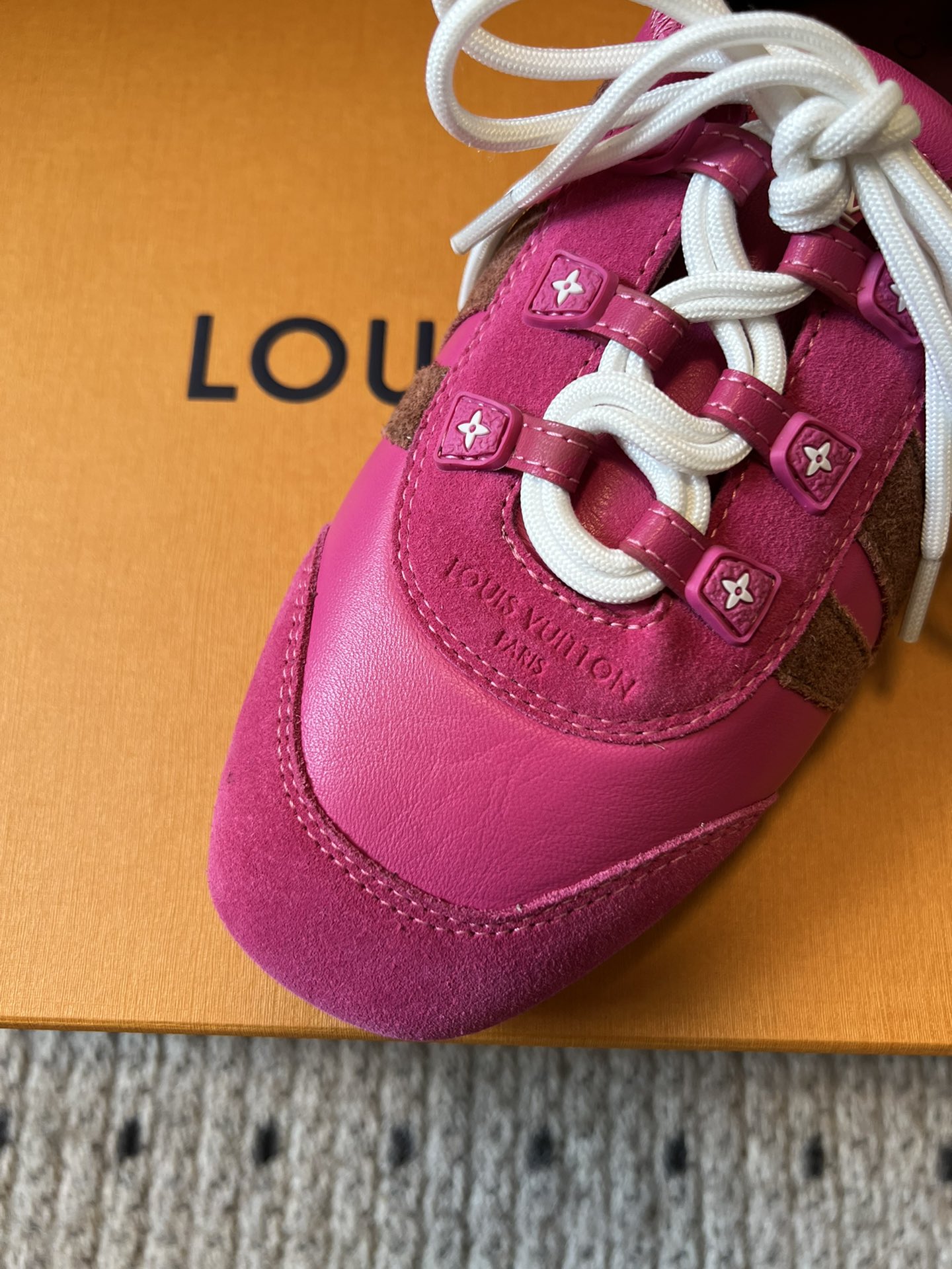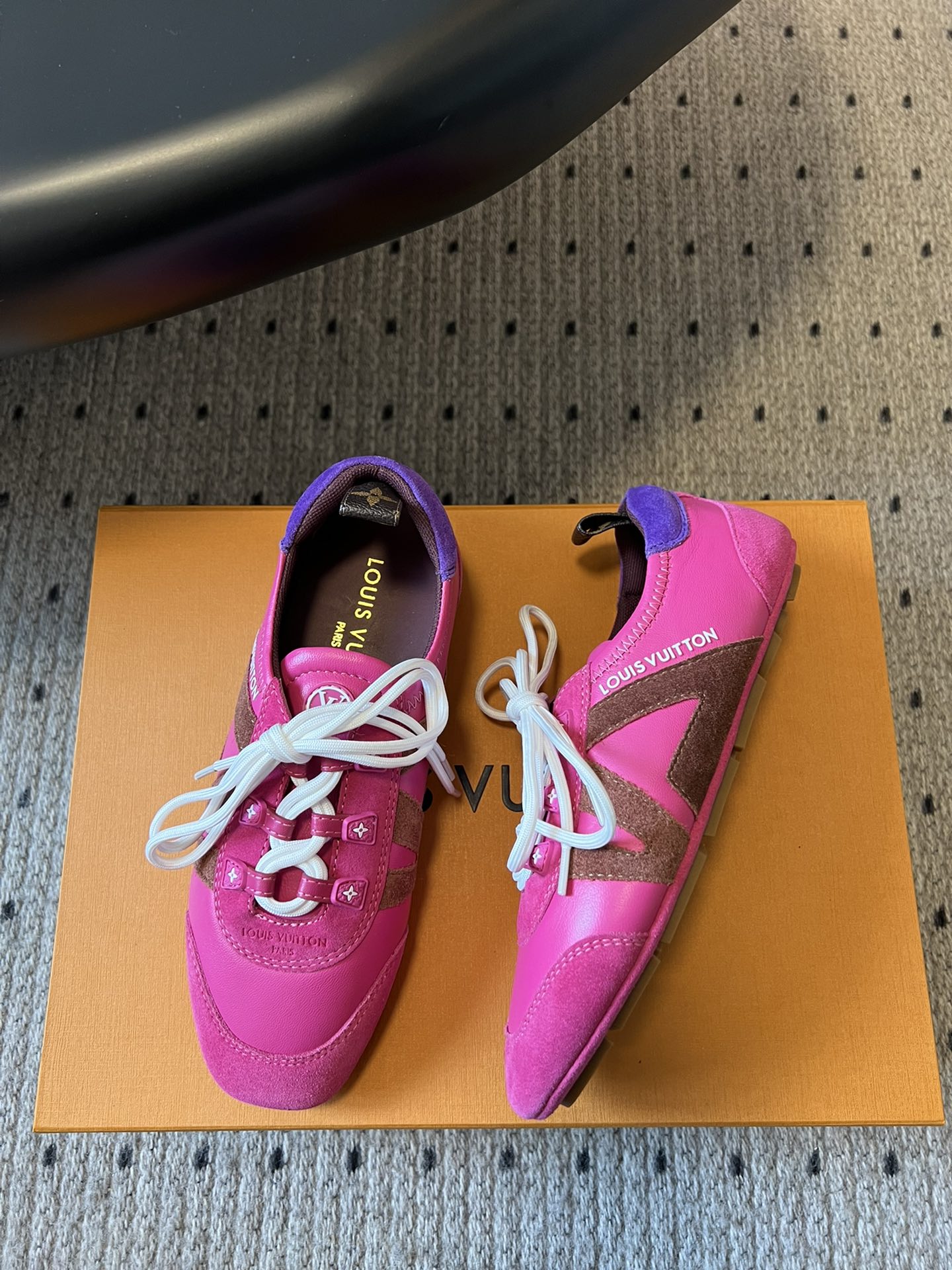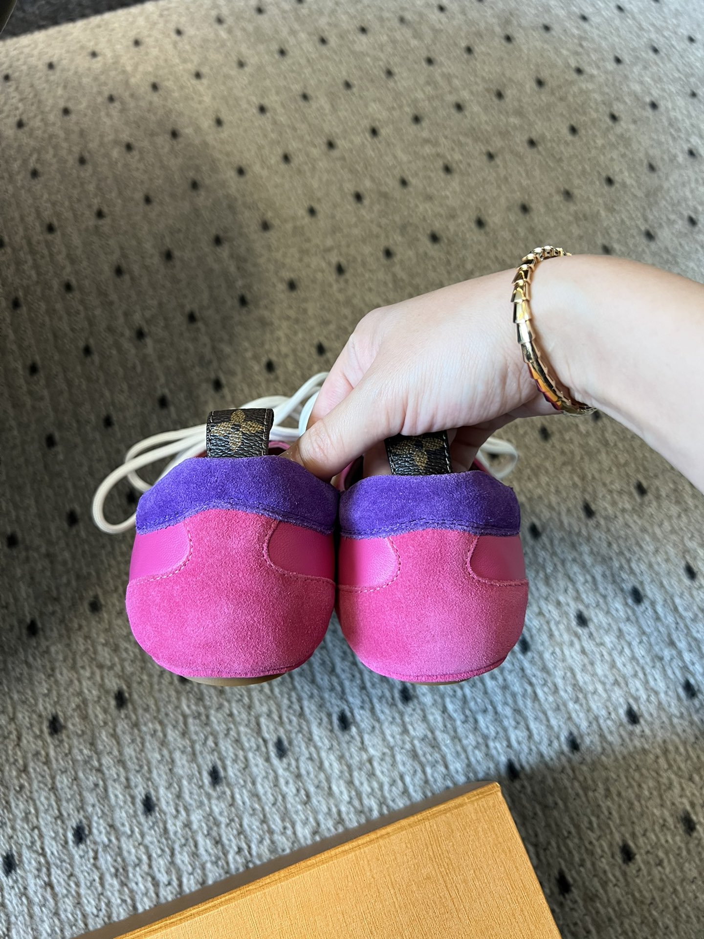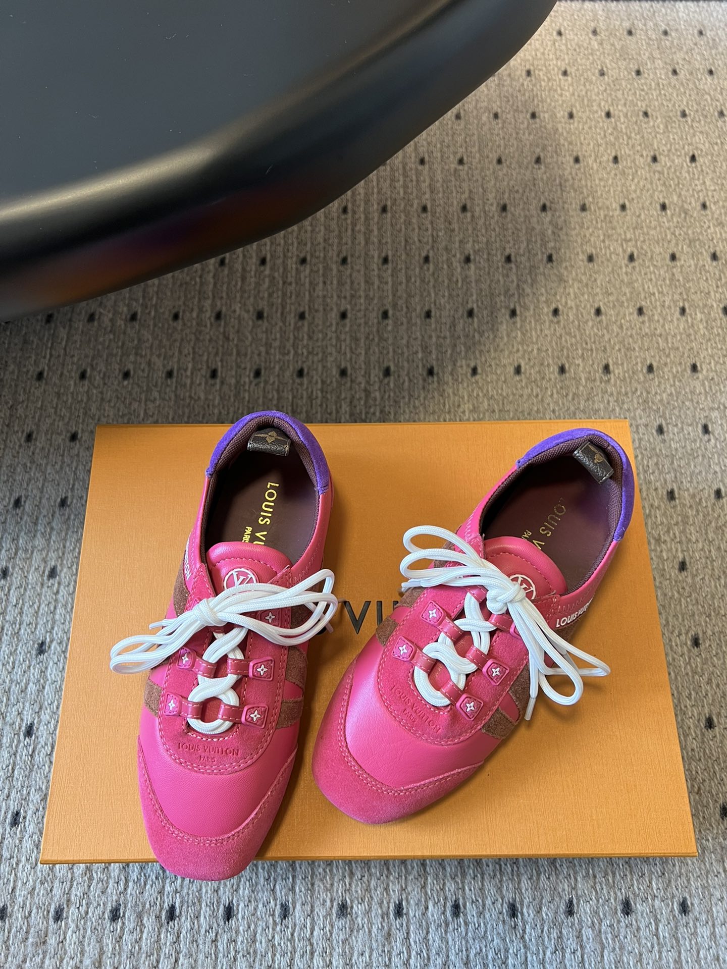 这款鞋子是AAAAA 1:1 质量 (非常棒). 使用了和原版一模一样的材料. 商标部分也保持了和路易威登/Louis Vuitton一样. 图片拍摄是实物鞋子拍摄, 您所收到的实物保证和我们图片一模一样.