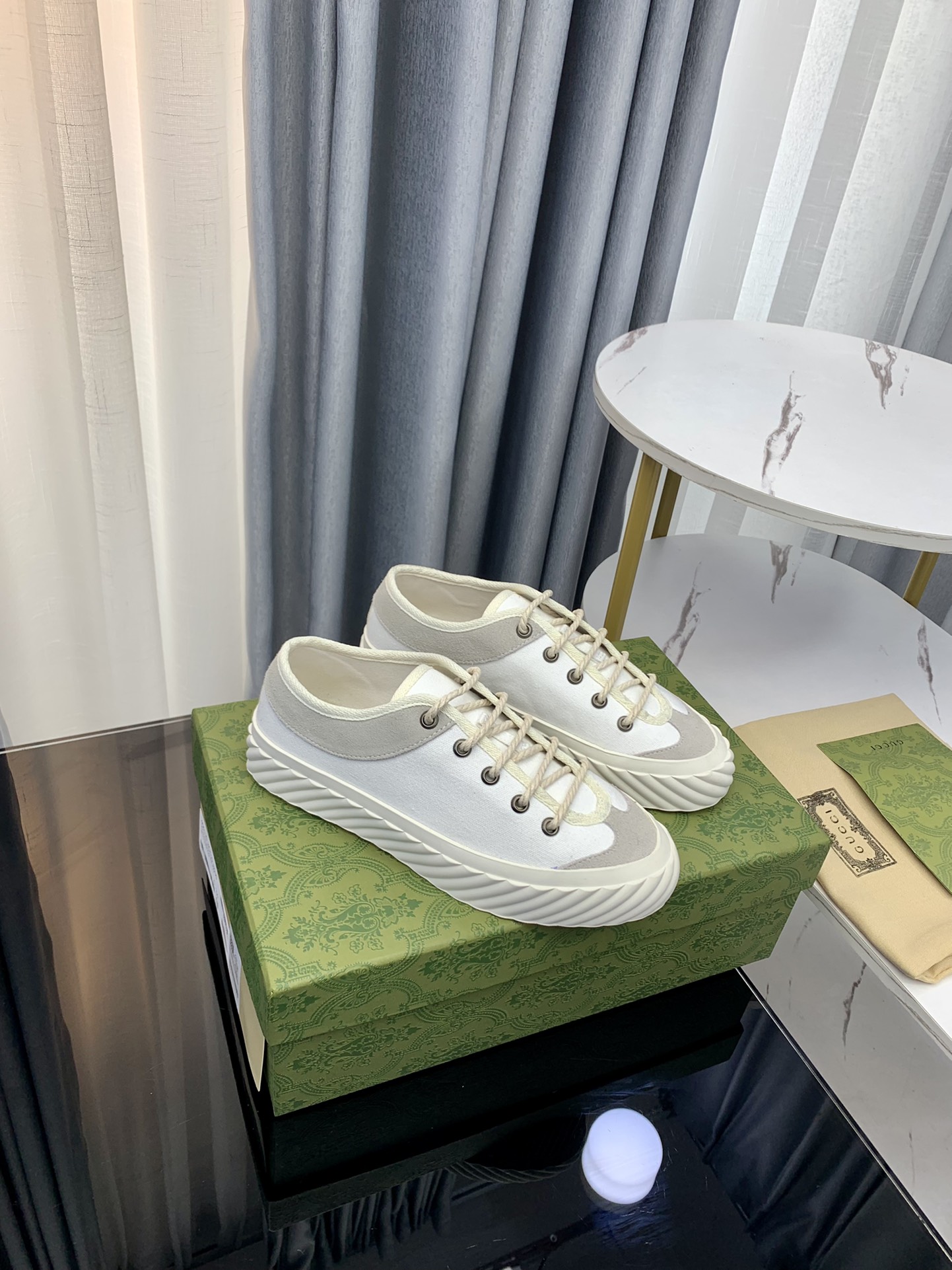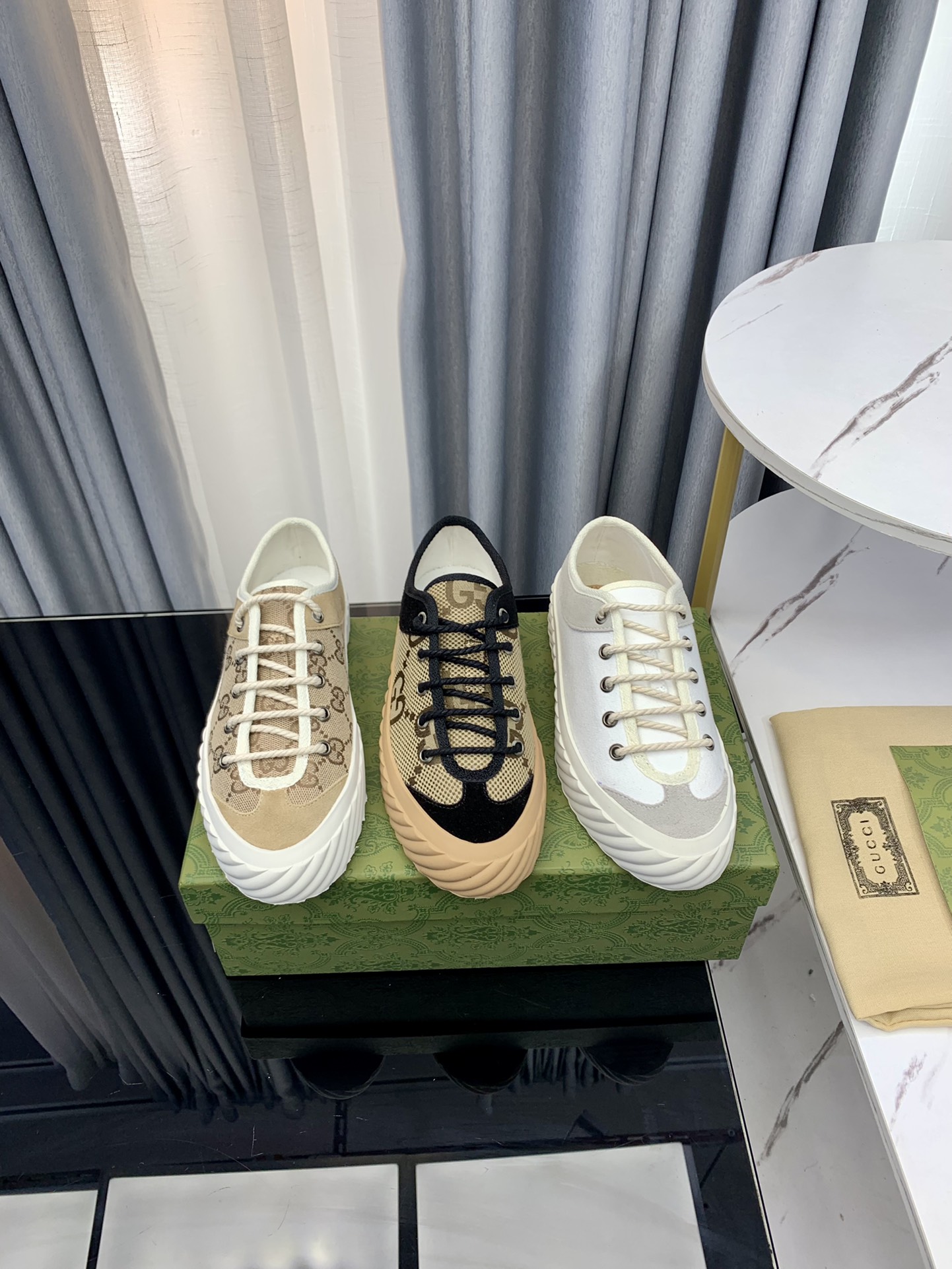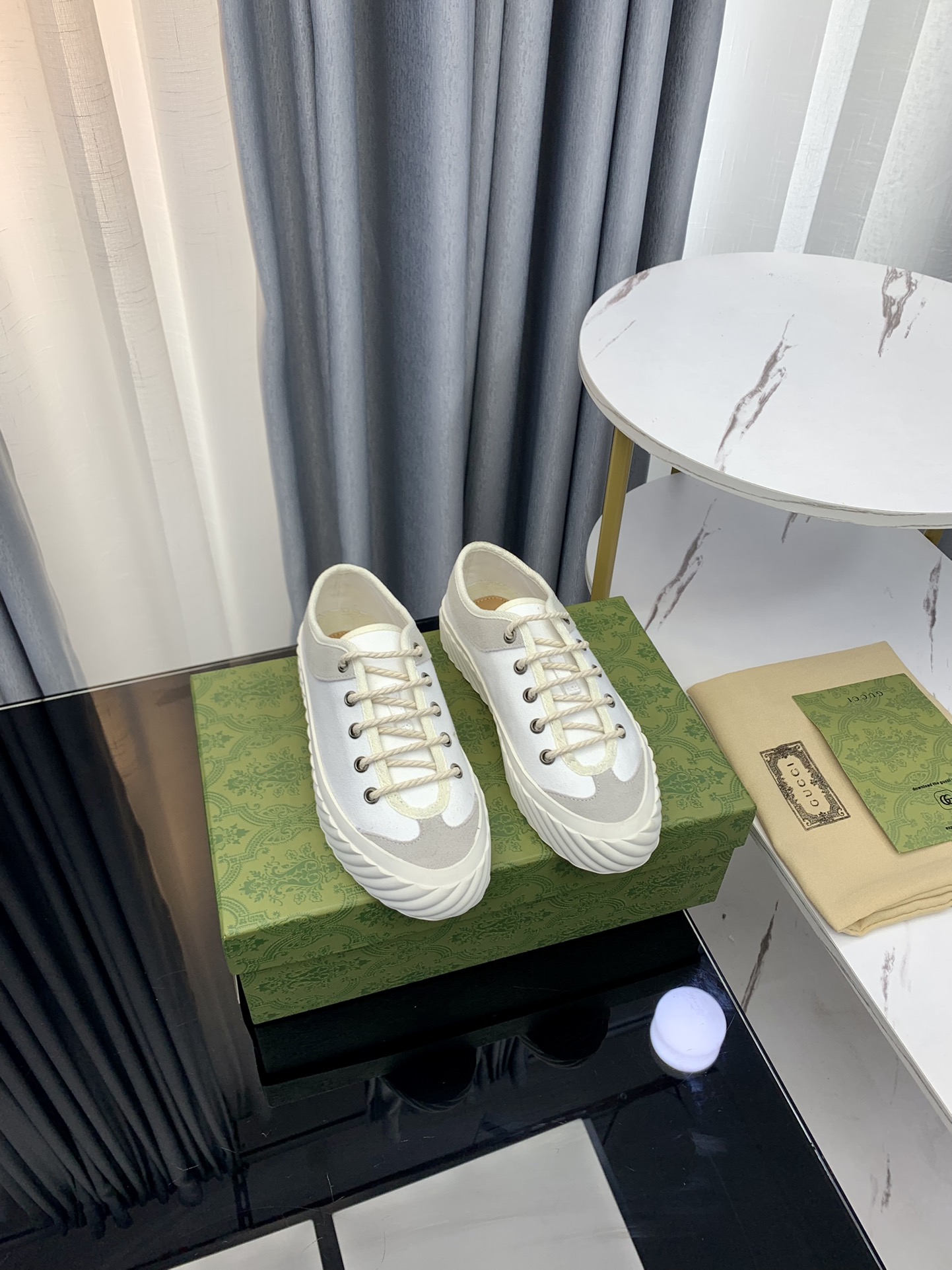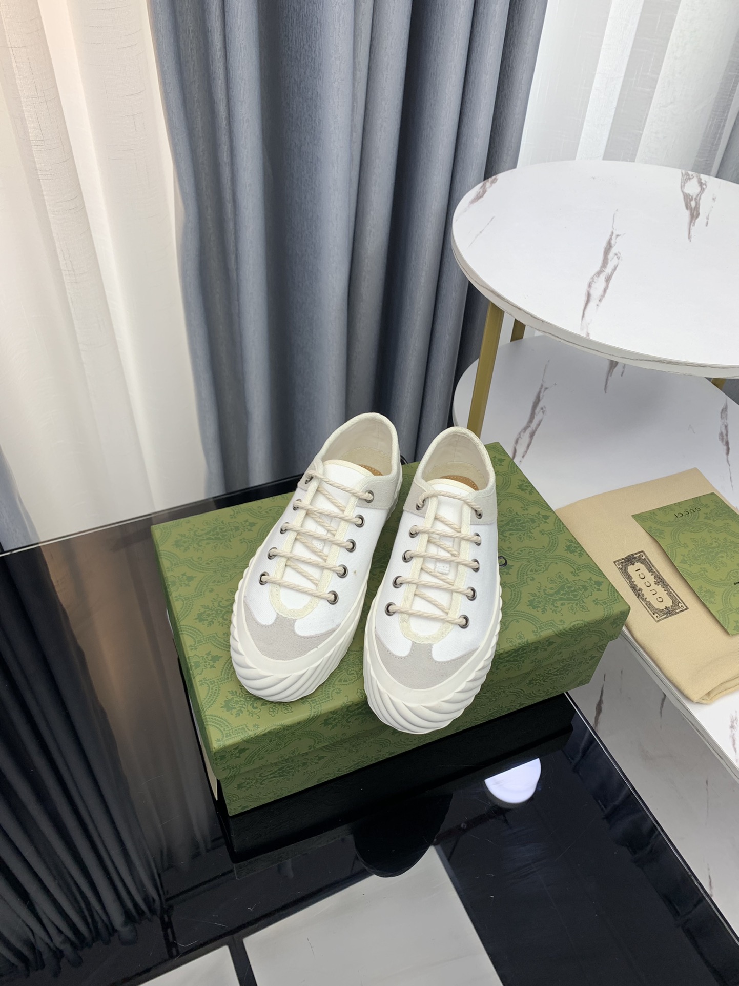这款鞋子是AAAAA 1:1 质量 (非常棒). 使用了和原版一模一样的材料. 商标部分也保持了和古奇/Gucci一样. 图片拍摄是实物鞋子拍摄, 您所收到的实物保证和我们图片一模一样.