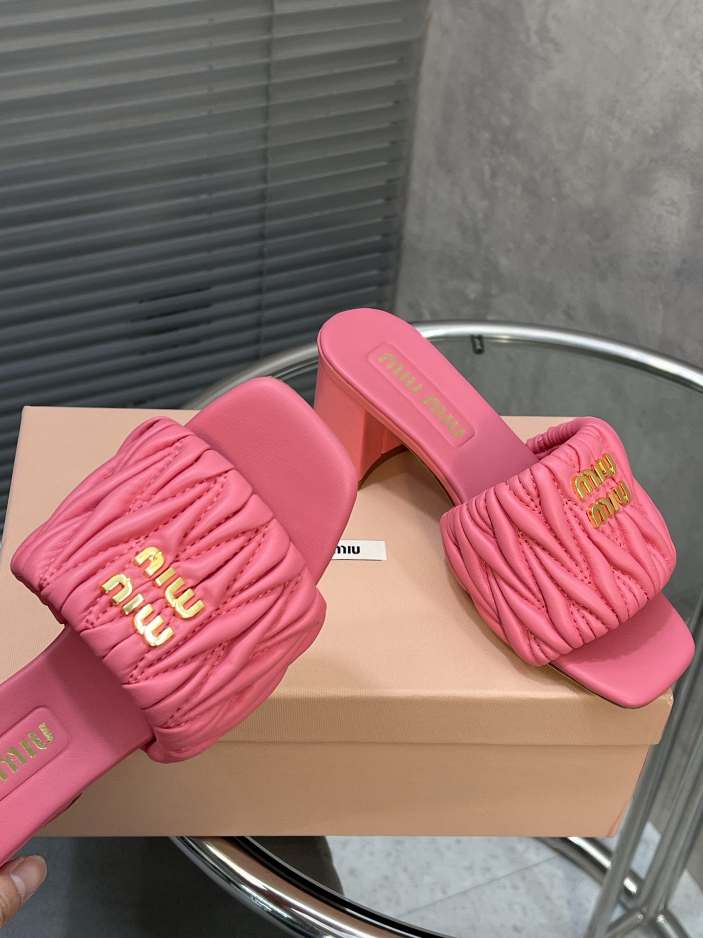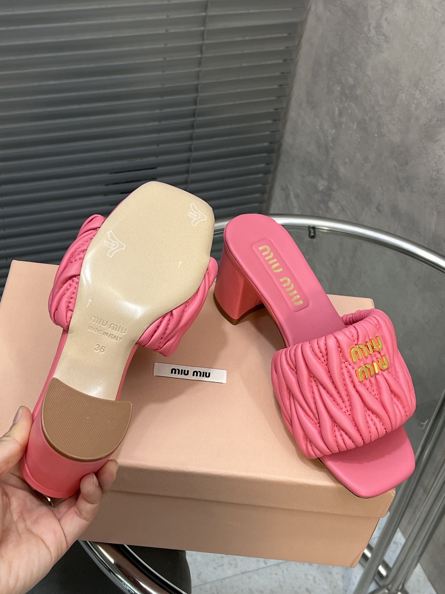 这款鞋子是AAAAA 1:1 质量 (非常棒). 使用了和原版一模一样的材料. 商标部分也保持了和缪缪/Miu Miu一样. 图片拍摄是实物鞋子拍摄, 您所收到的实物保证和我们图片一模一样.
