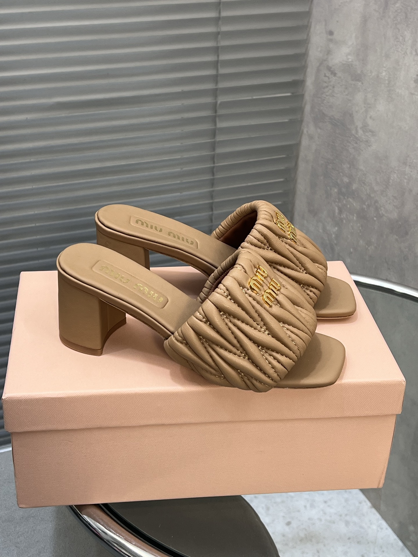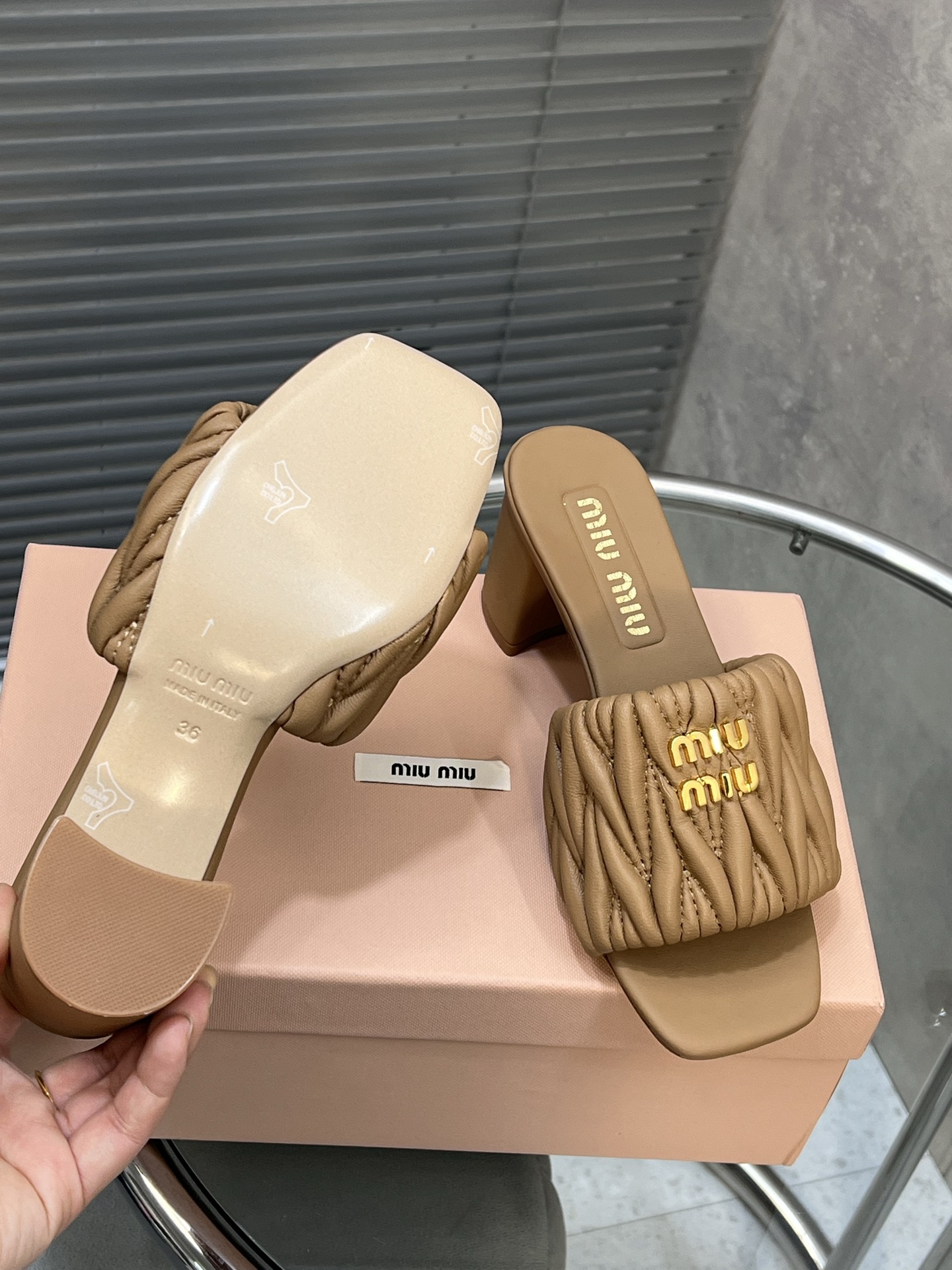 这款鞋子是AAAAA 1:1 质量 (非常棒). 使用了和原版一模一样的材料. 商标部分也保持了和缪缪/Miu Miu一样. 图片拍摄是实物鞋子拍摄, 您所收到的实物保证和我们图片一模一样.