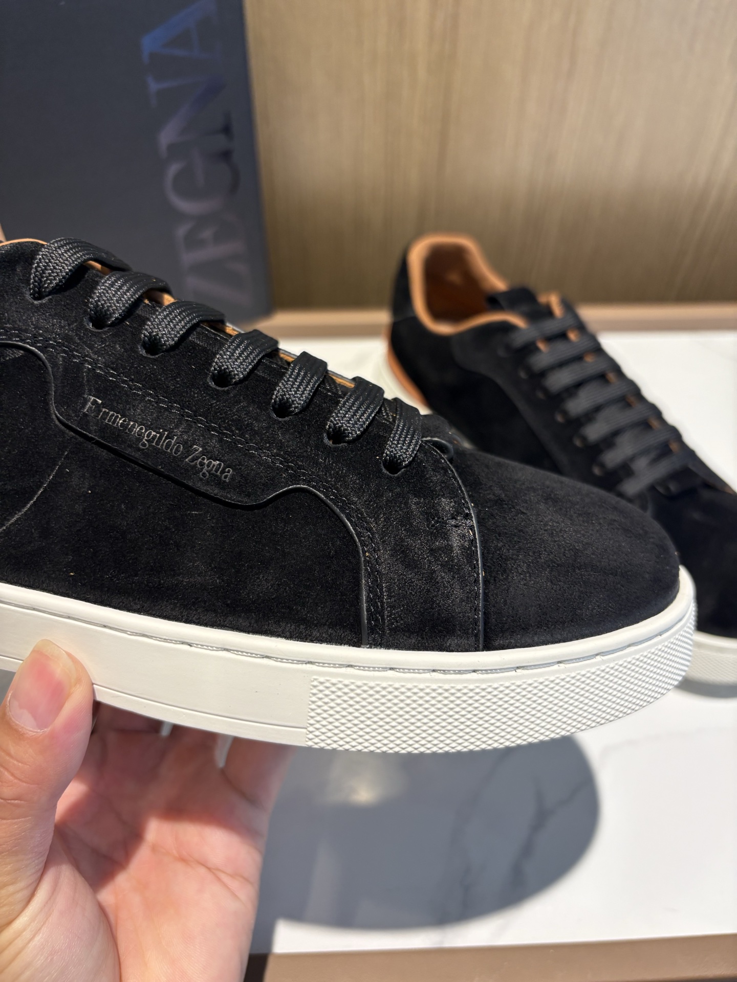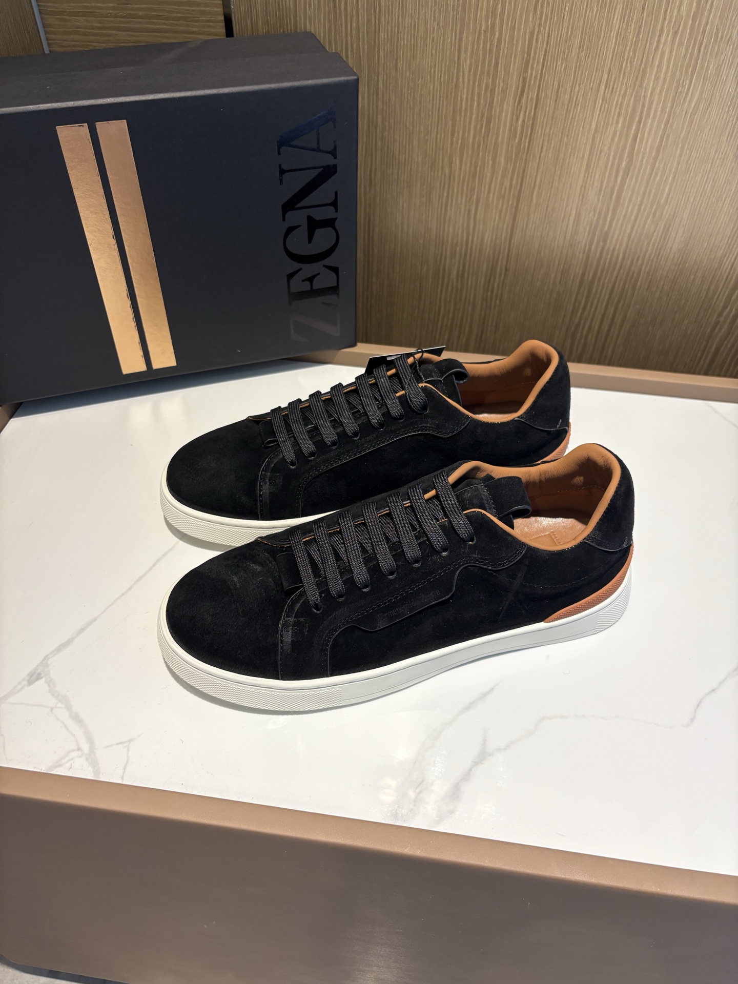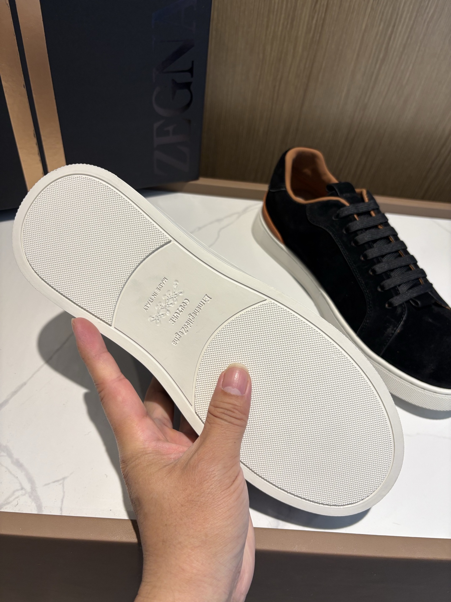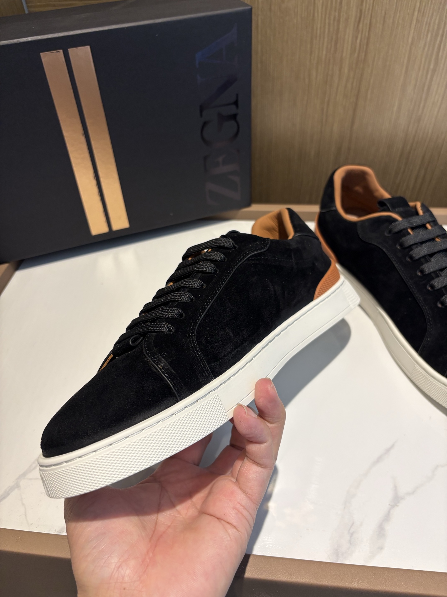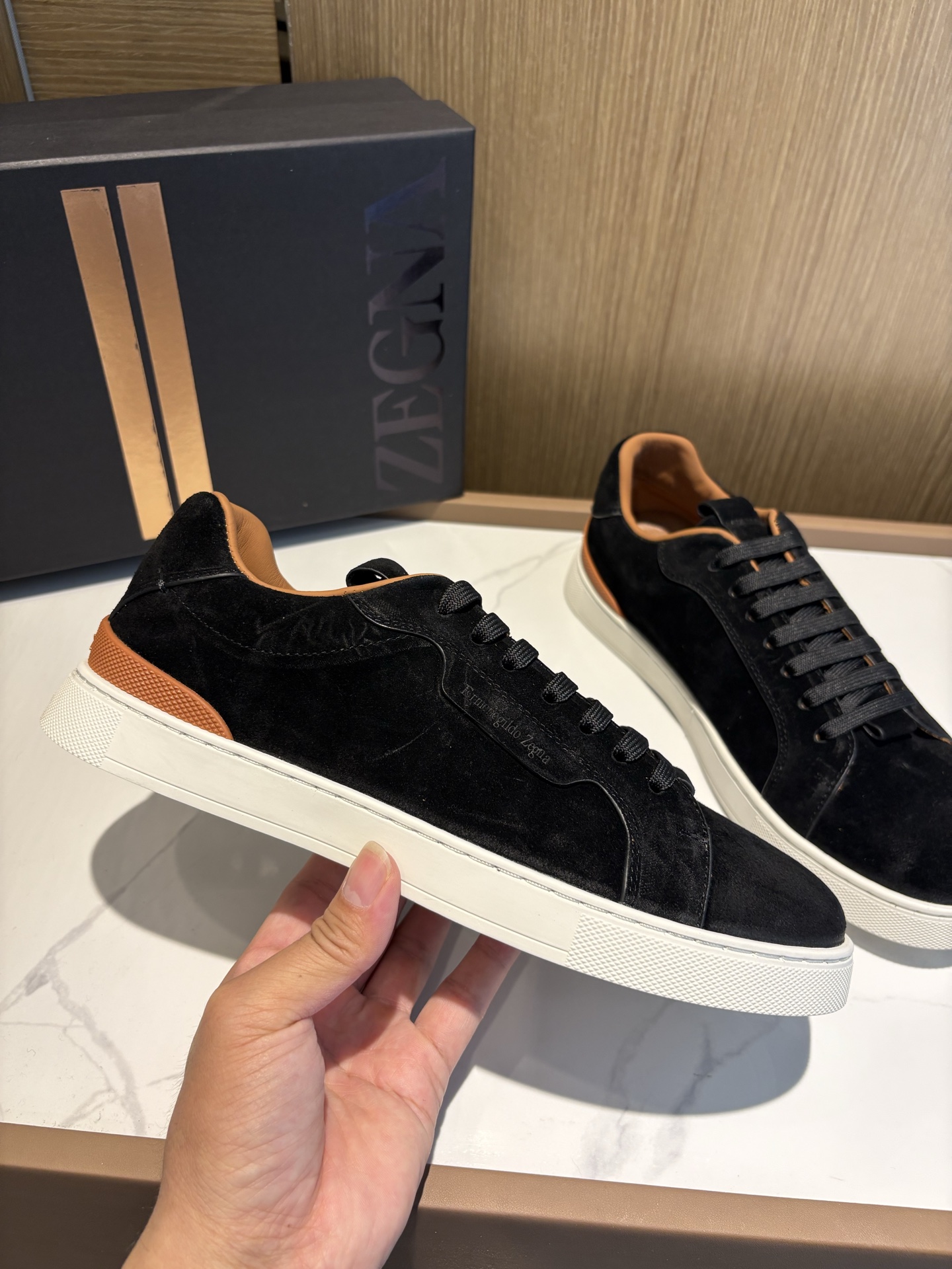 这款鞋子是AAAAA 1:1 质量 (非常棒). 使用了和原版一模一样的材料. 商标部分也保持了和杰尼亚/Zegna一样. 图片拍摄是实物鞋子拍摄, 您所收到的实物保证和我们图片一模一样.