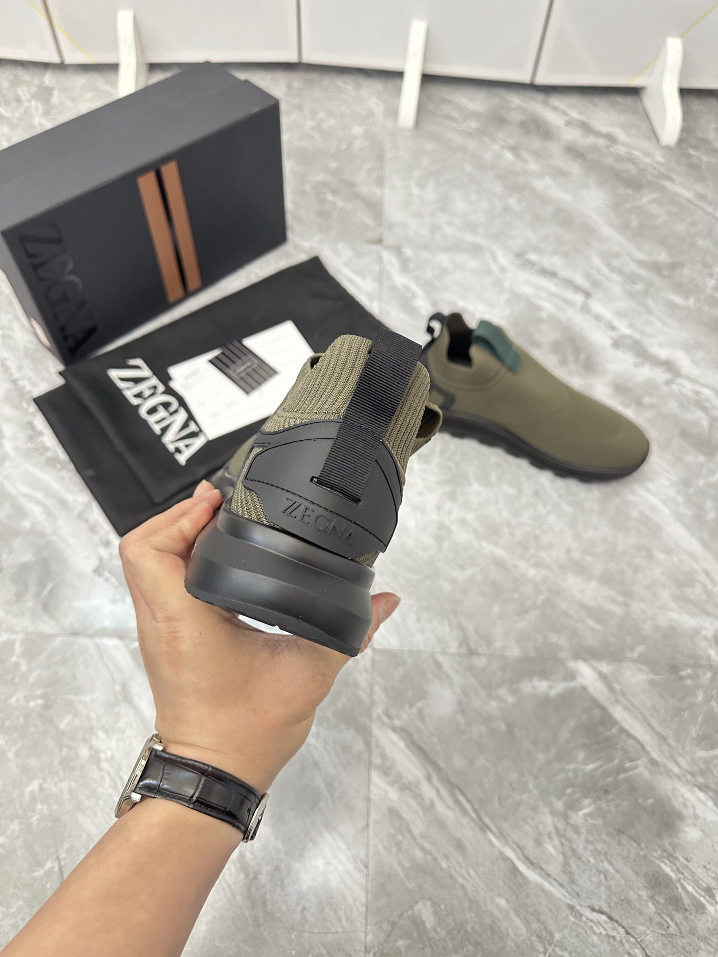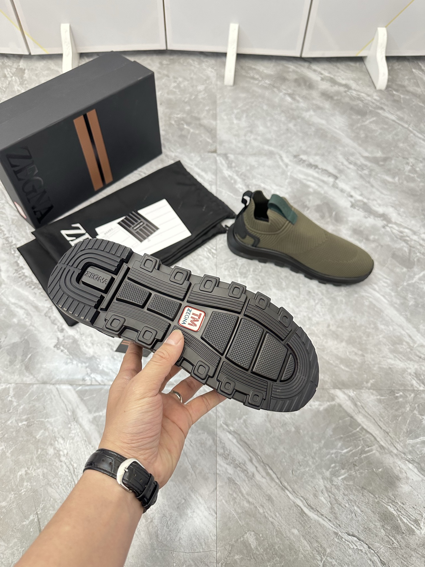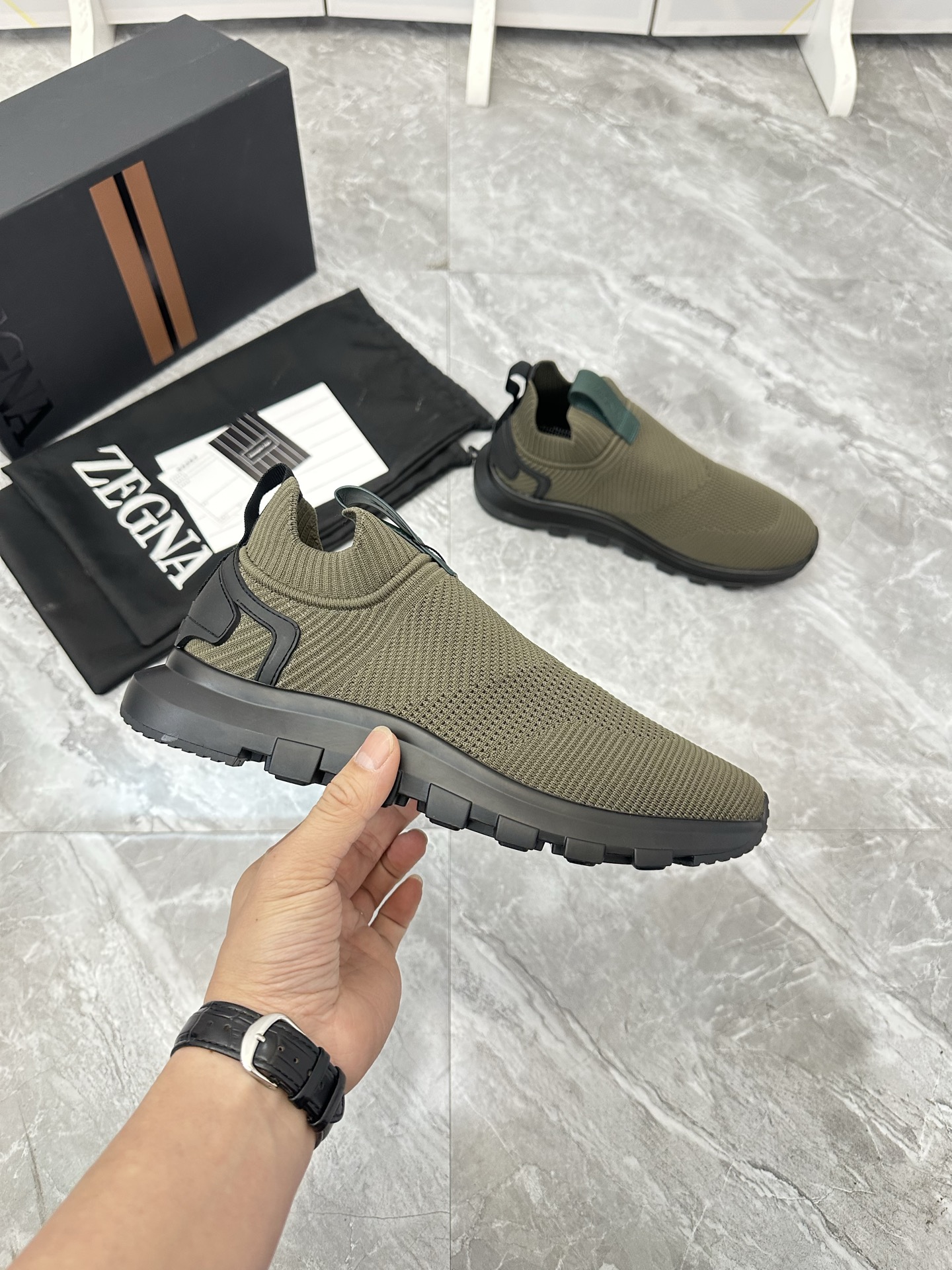 这款鞋子是AAAAA 1:1 质量 (非常棒). 使用了和原版一模一样的材料. 商标部分也保持了和杰尼亚/Zegna一样. 图片拍摄是实物鞋子拍摄, 您所收到的实物保证和我们图片一模一样.