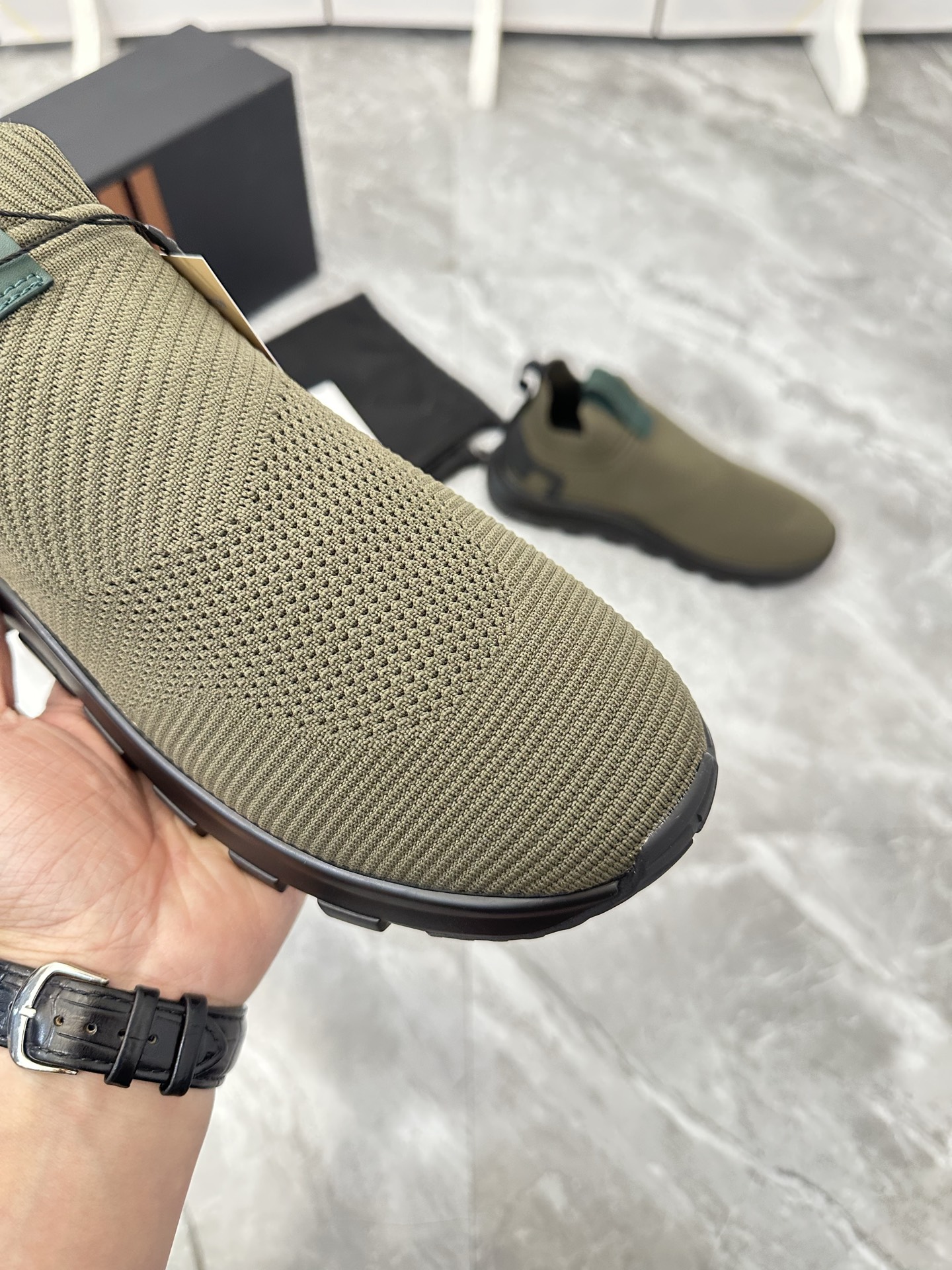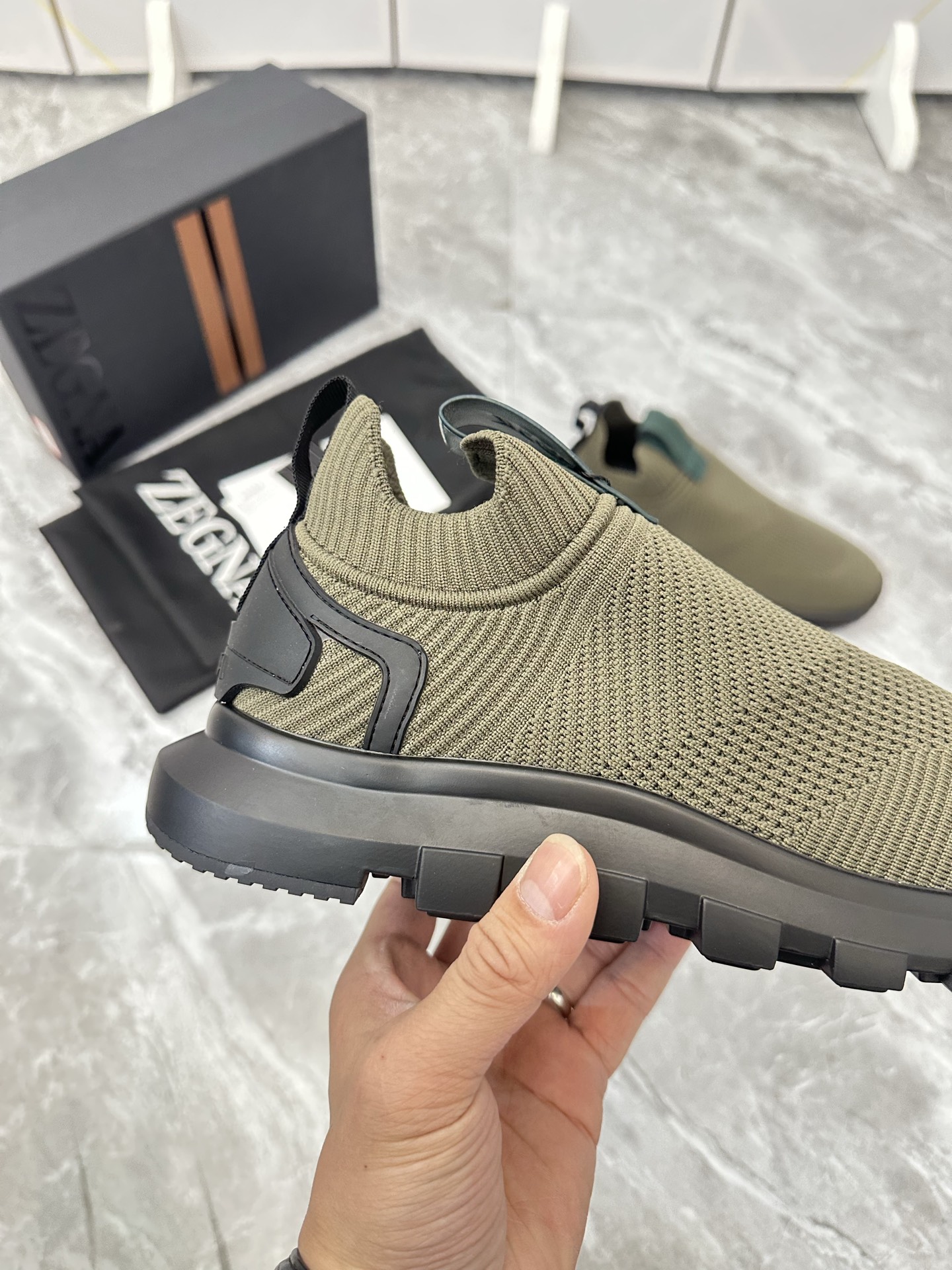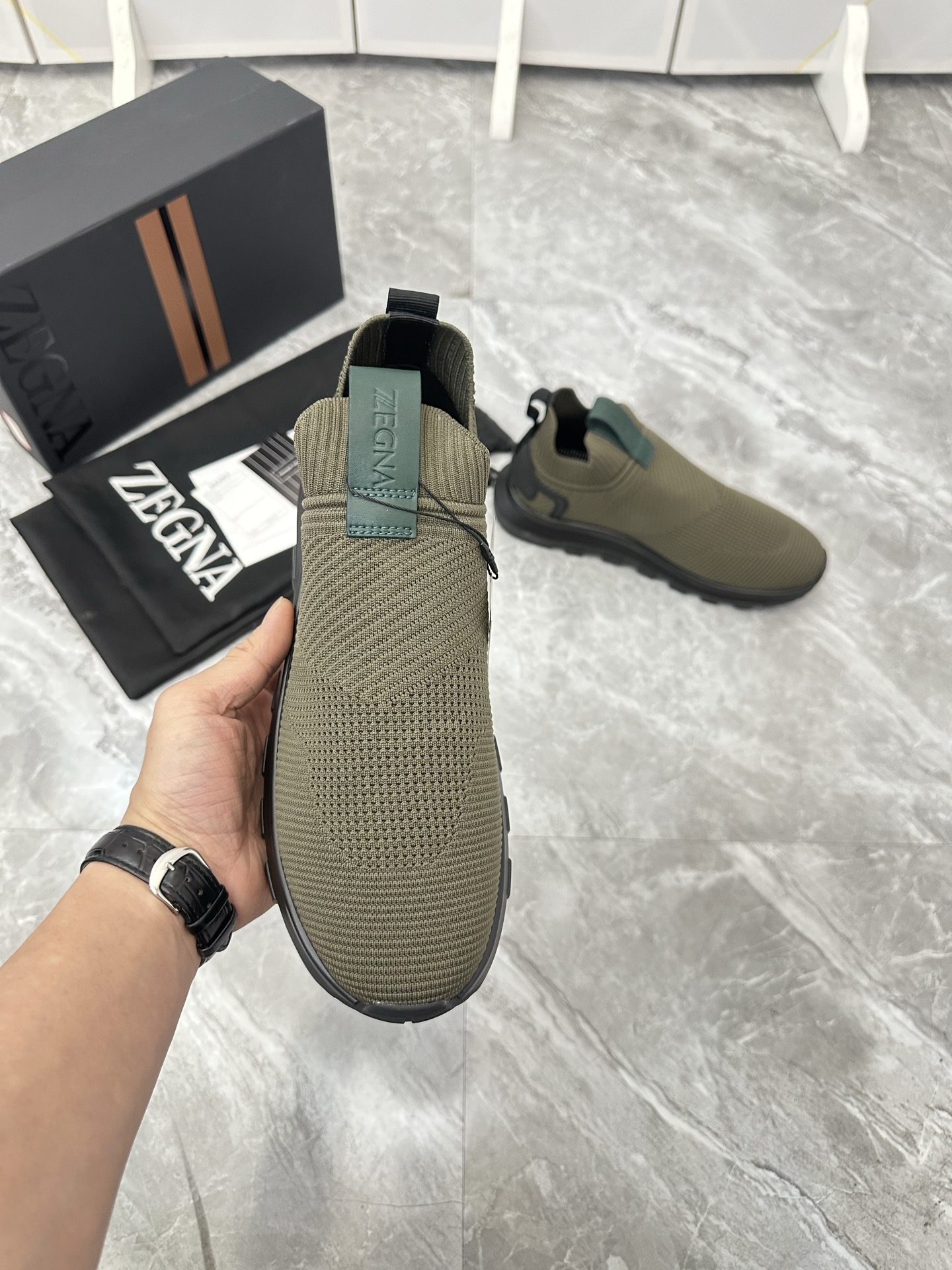这款鞋子是AAAAA 1:1 质量 (非常棒). 使用了和原版一模一样的材料. 商标部分也保持了和杰尼亚/Zegna一样. 图片拍摄是实物鞋子拍摄, 您所收到的实物保证和我们图片一模一样.